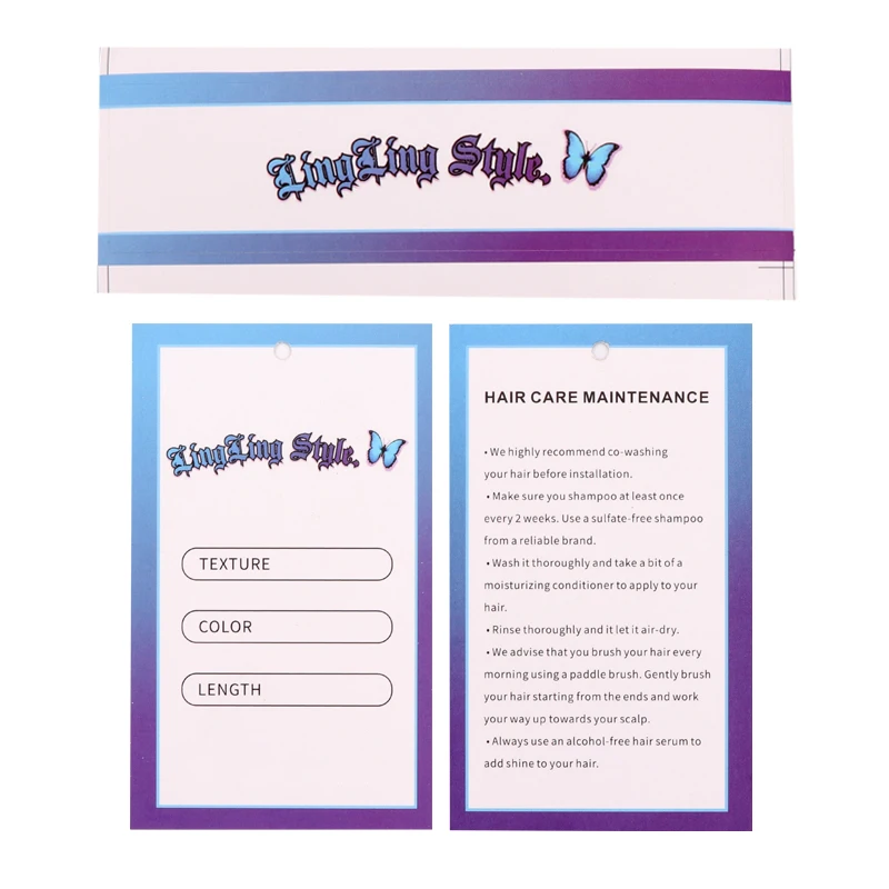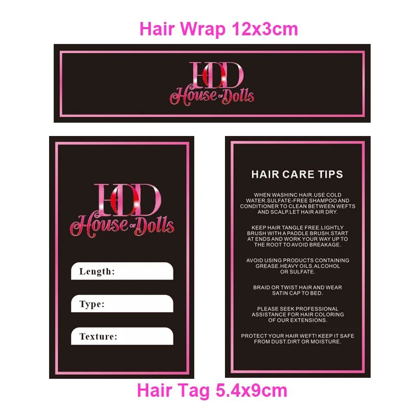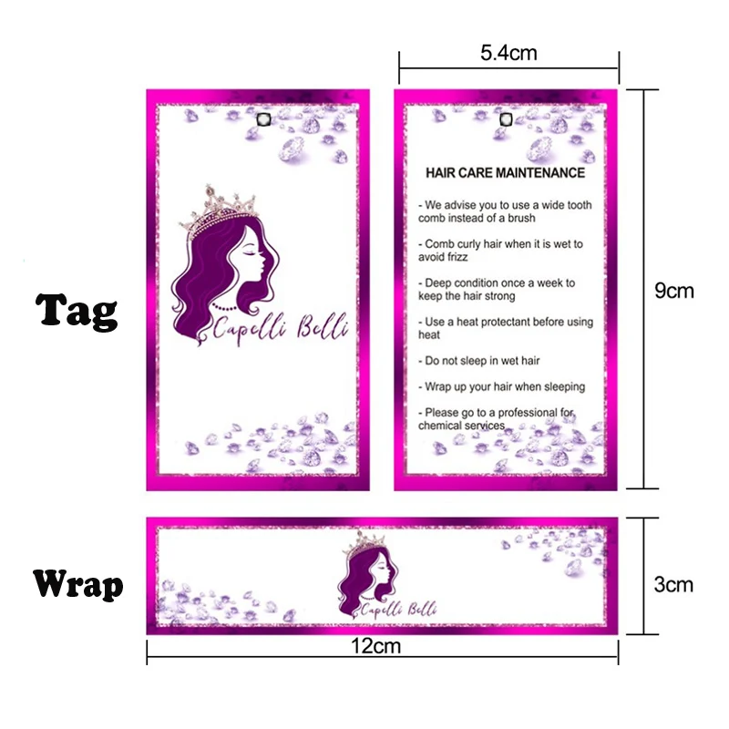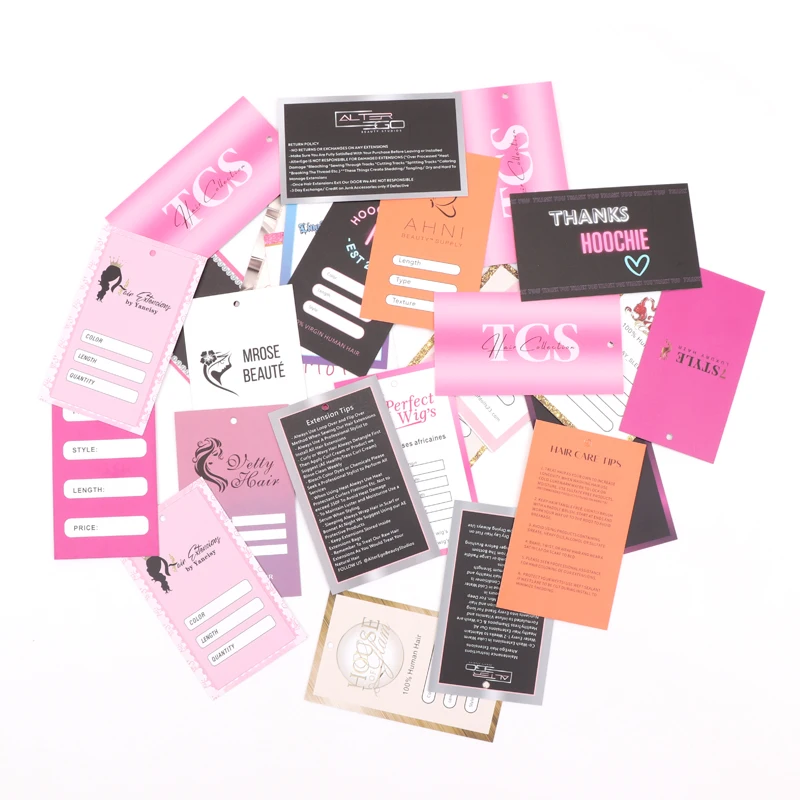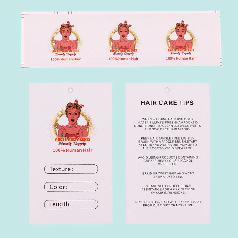 Hair Tags Wrap For Bundles Custom Self-adhesive Sticker 12x3Cm Personalize Wig Tags Lables 200Pcs Hair Hang Tags 5.4X9Cm Paper