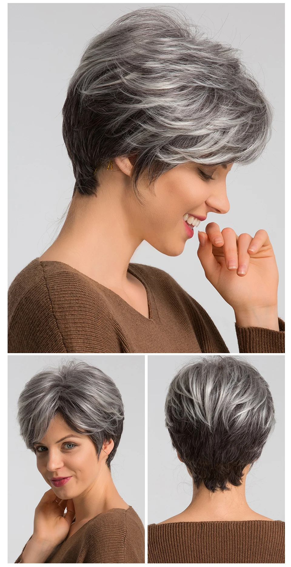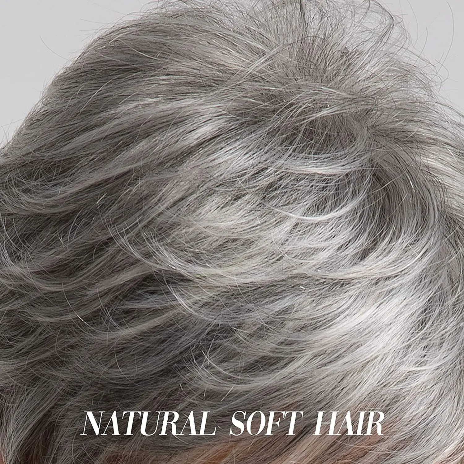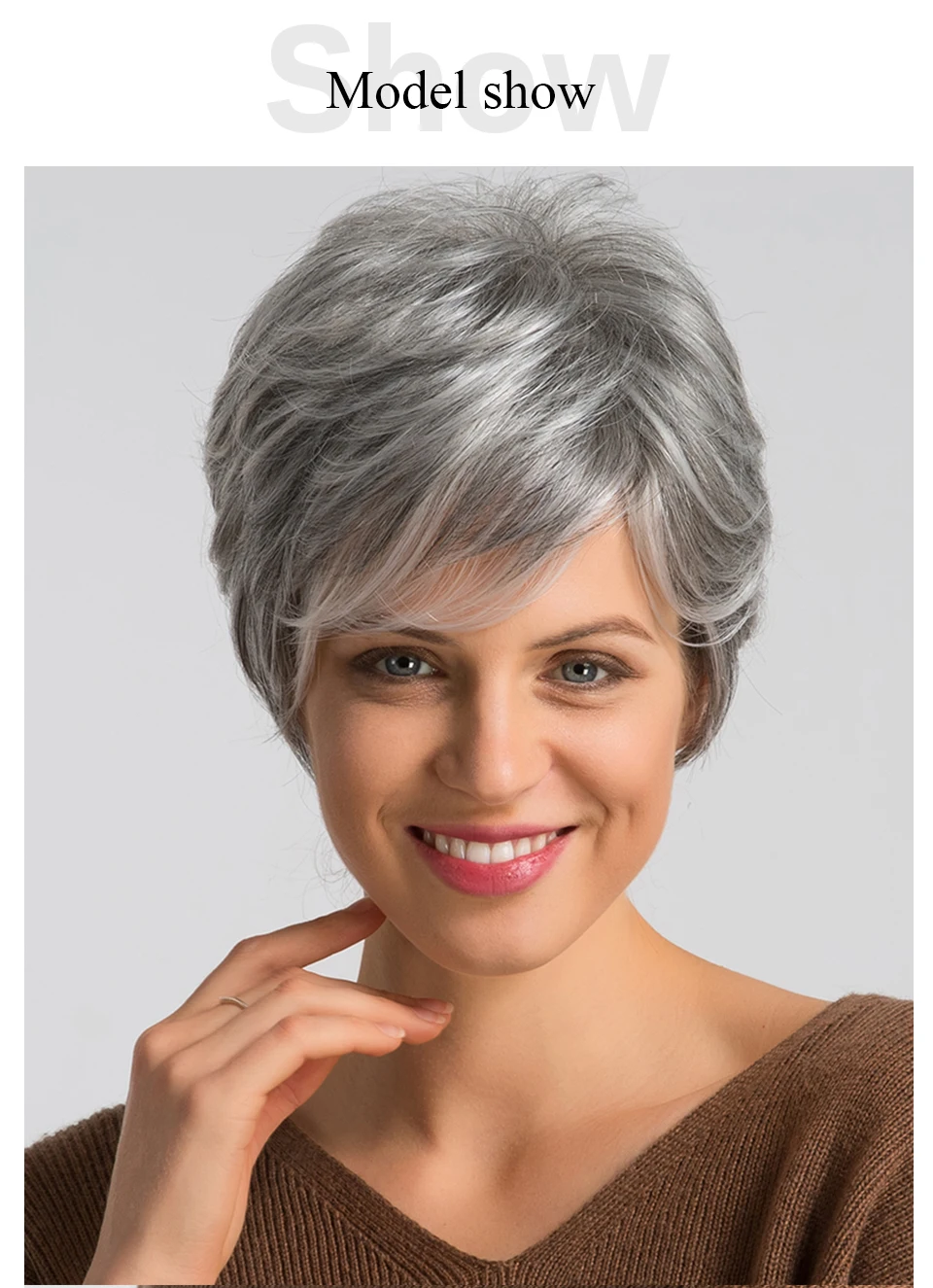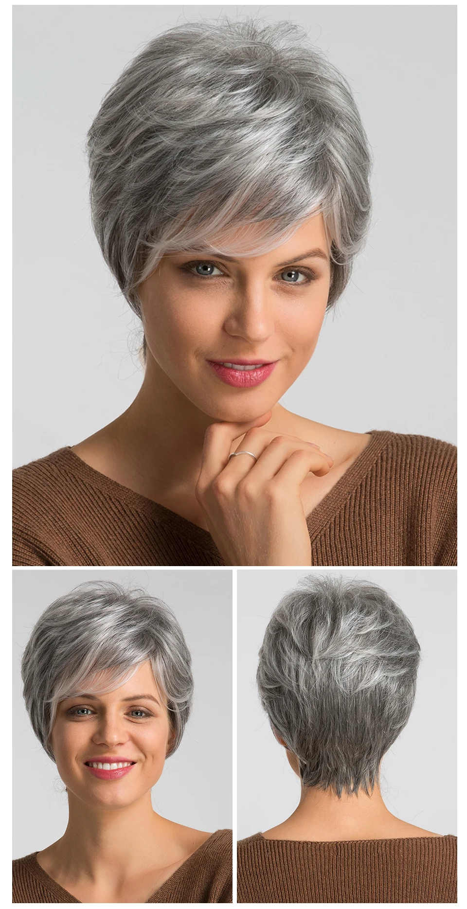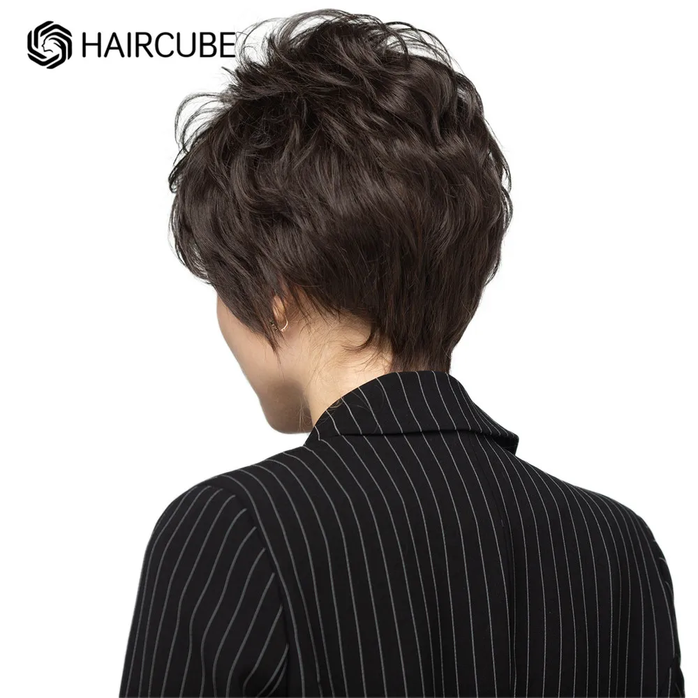 HAIRCUBE Short Gray Hair Wig with Bangs Silver Ash Pixie Wigs for Women Synthetic Wigs Mixed With Human Hair High Temperature