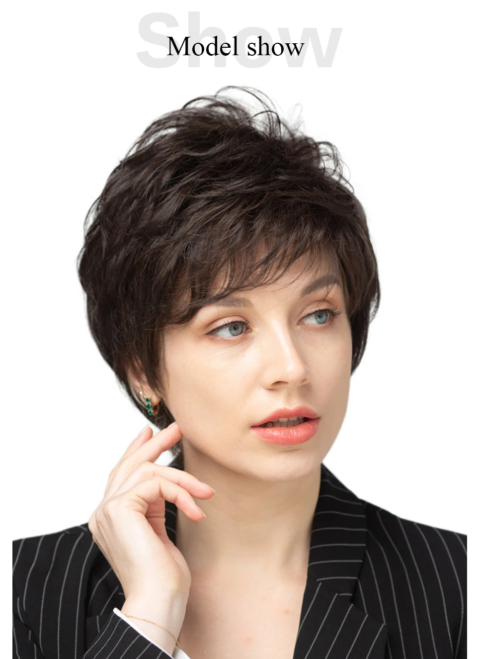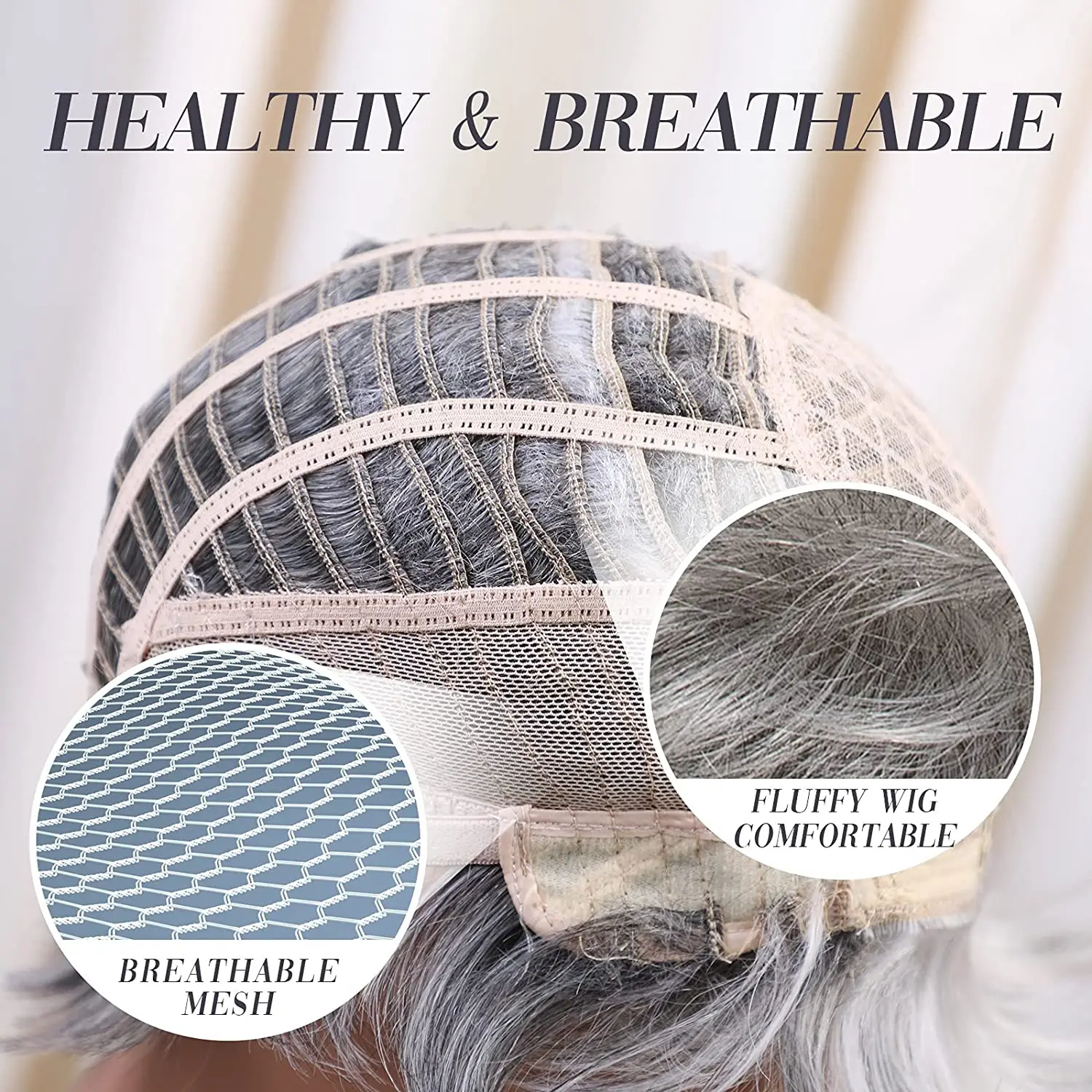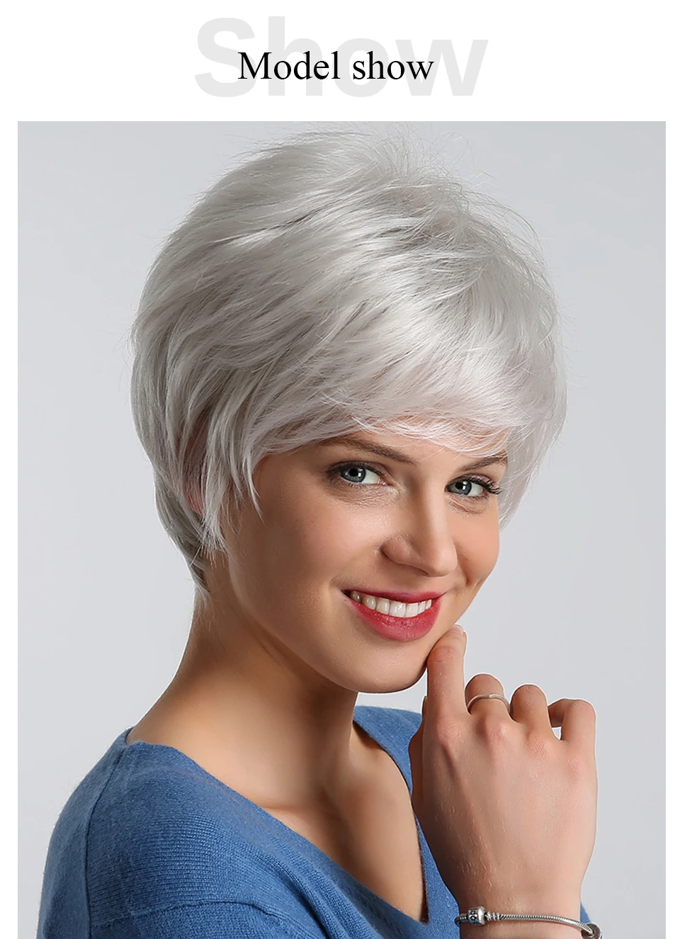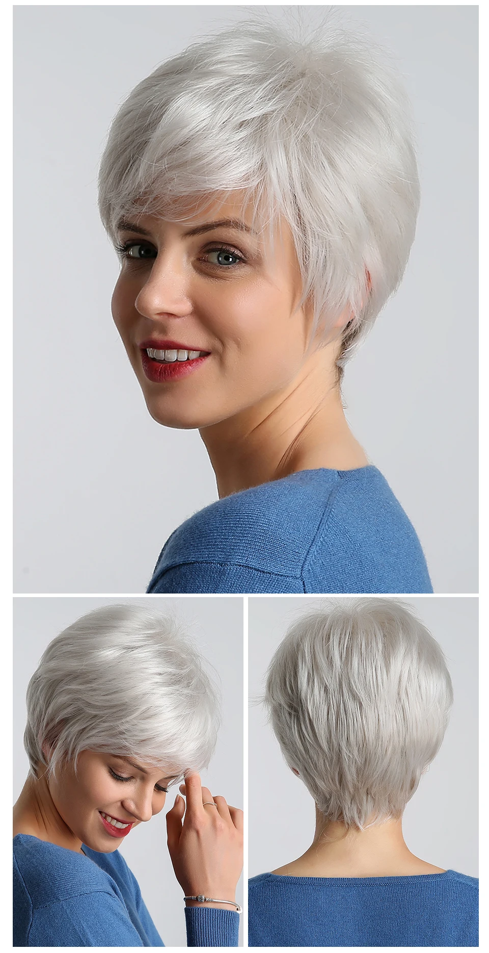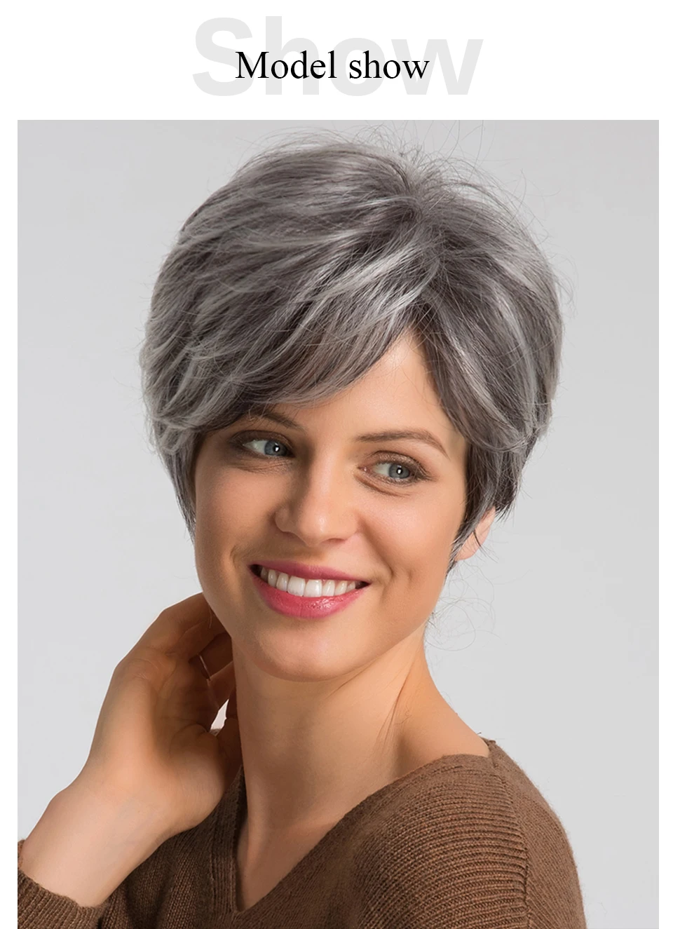 HAIRCUBE Short Gray Hair Wig with Bangs Silver Ash Pixie Wigs for Women Synthetic Wigs Mixed With Human Hair High Temperature