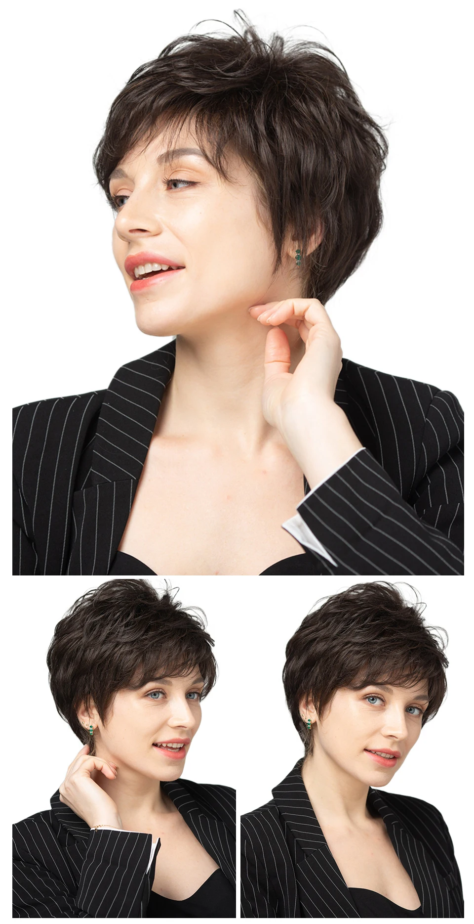 The top of wig look a bit frizzy when you just get it. Please don’t worry.lt is a unique design which use short hair to hold the long hair and makethe wig look fluffy & natural.You can get a better looking with followingtips.