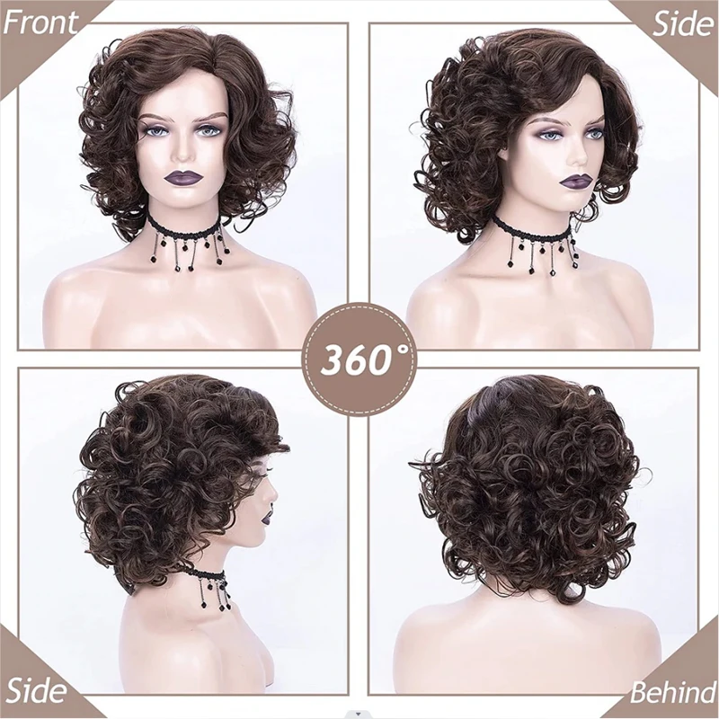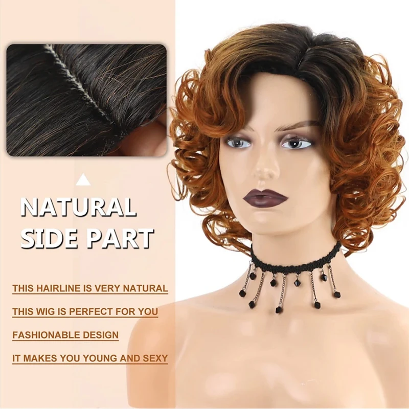 HAIRJOY Short Burgundy Curly Wigs for Black Women Ombre Wine Red Short Synthetic Hair Wig