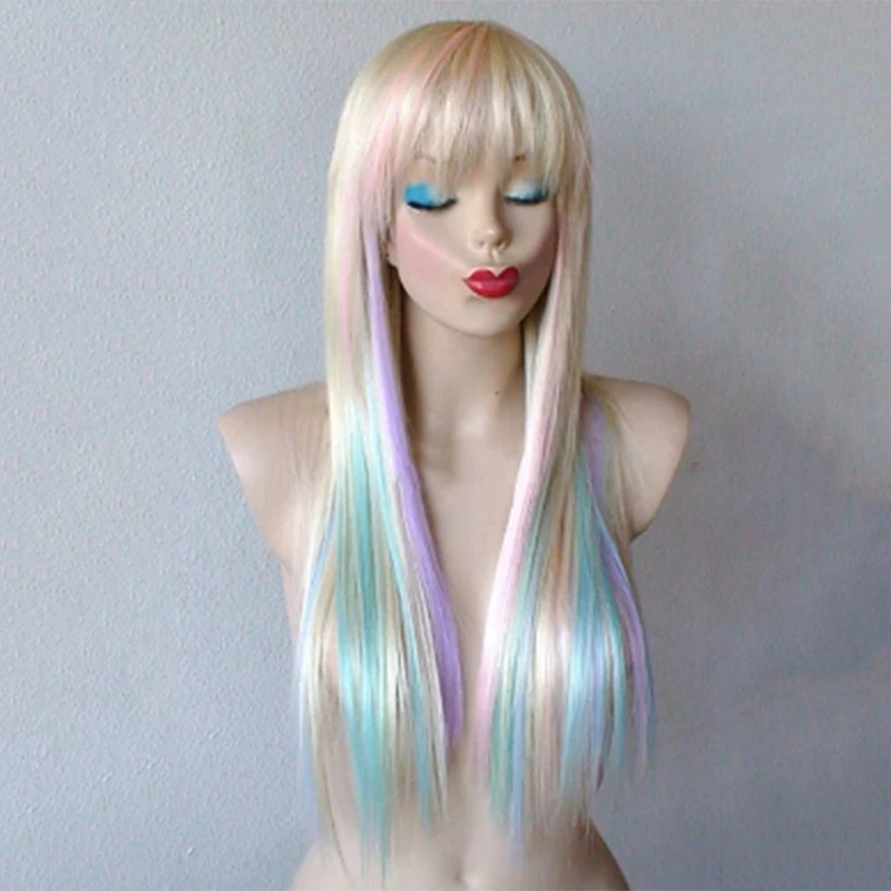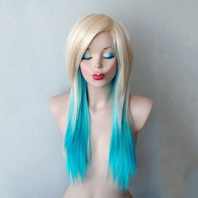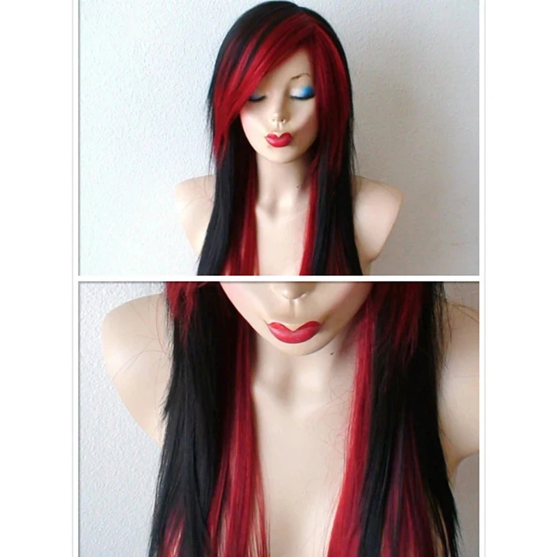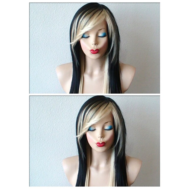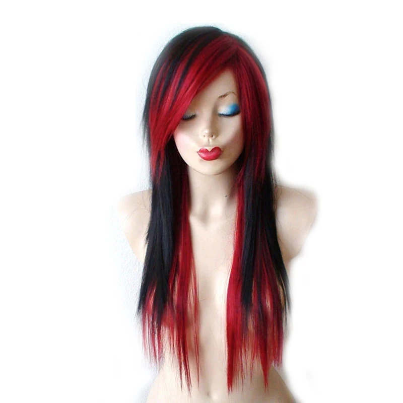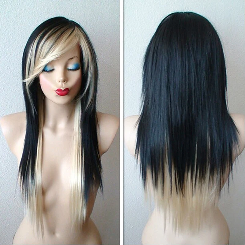 Hairjoy Long Straight Layered Haircut Synthetic Hair Women Ombre Wig Side Part Bangs