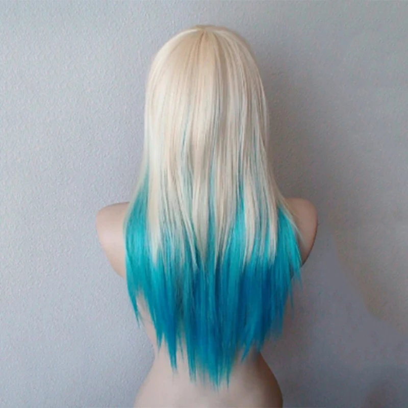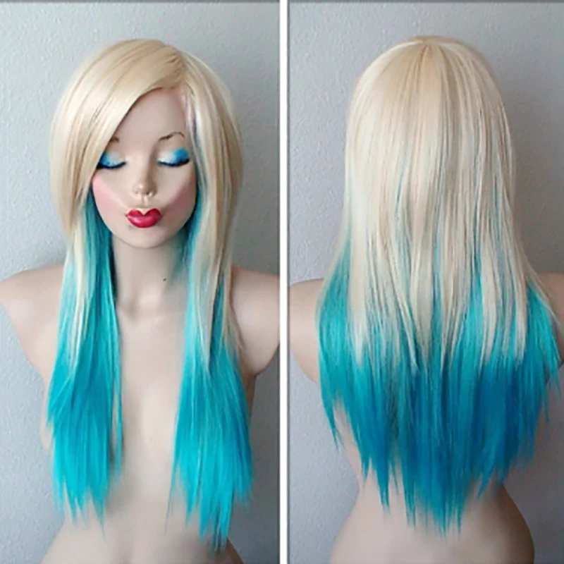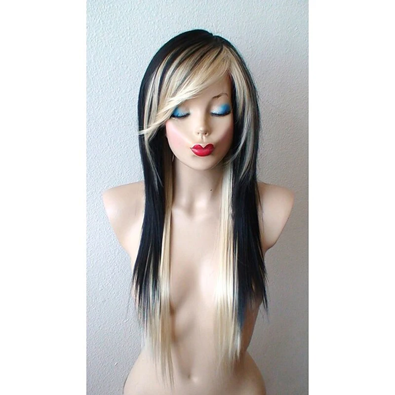 HAIRJOY Synthetic Hair Long Straight Layered Haircut Women Ombre Wig Side Part Bangs