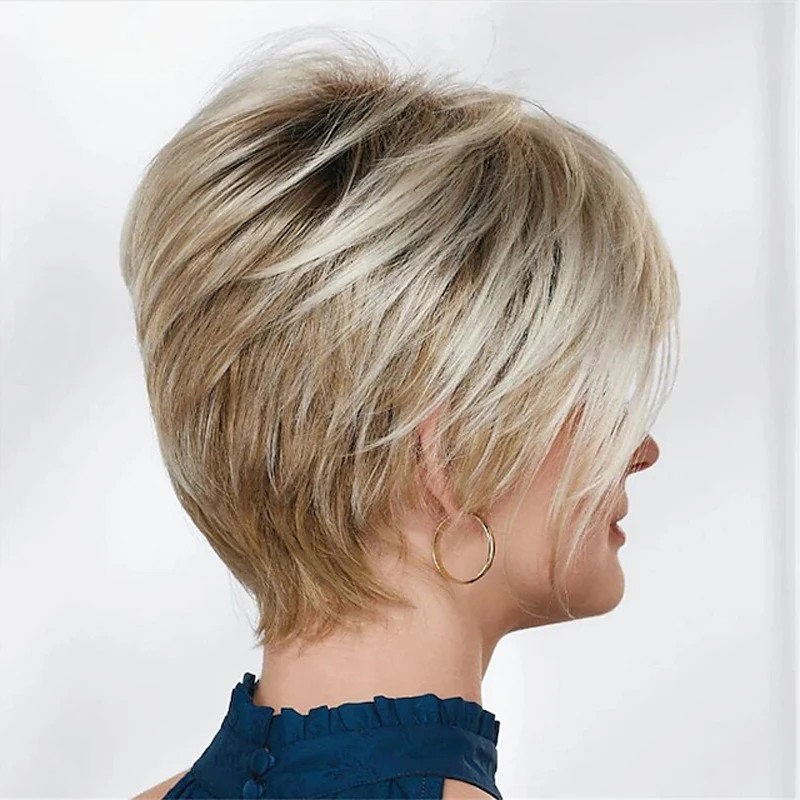 HAIRJOY Synthetic Hair Wig Blonde Short Straight Wig With Bangs for White Women