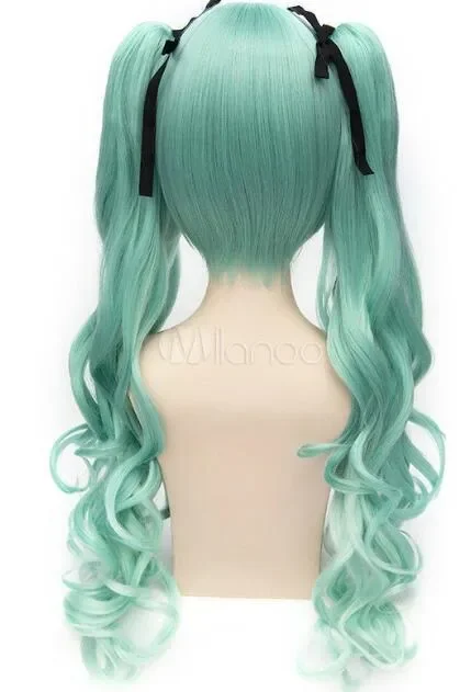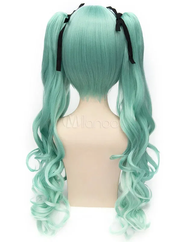 Harajuku Long light green Curly women's Lolita Cosplay Synthetic Hair Wigs