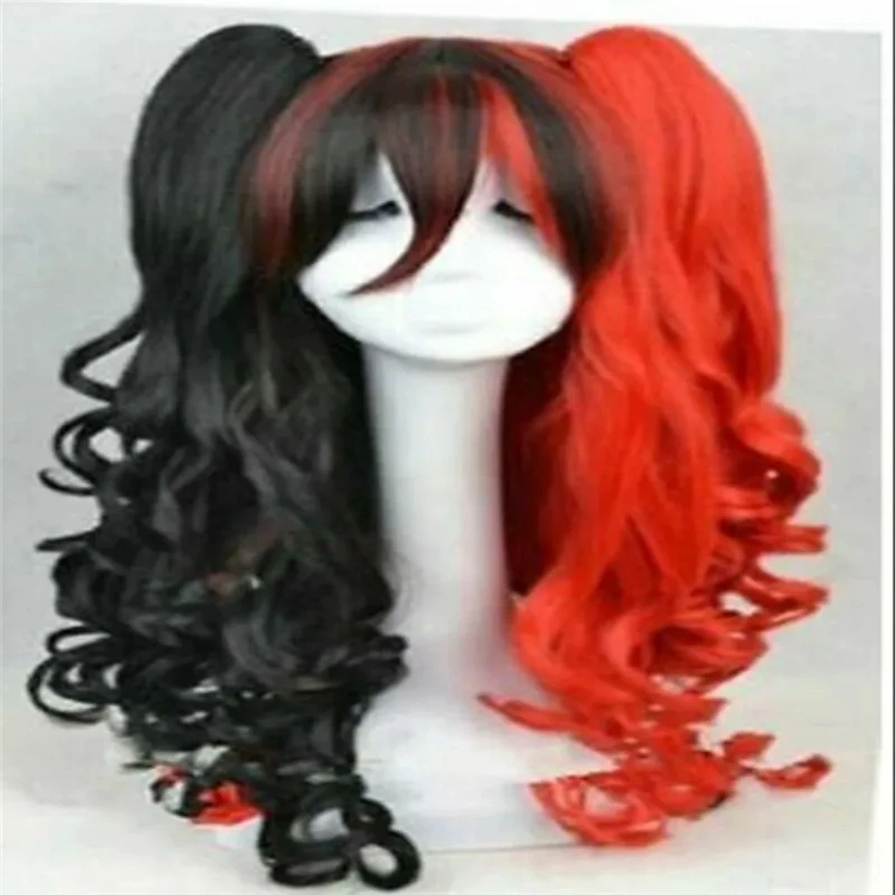 Harajuku New Harley Quinn Lolita Black & red curly hair cosplay party synthetic wig For Women’s Christmas Halloween Costume Wigs