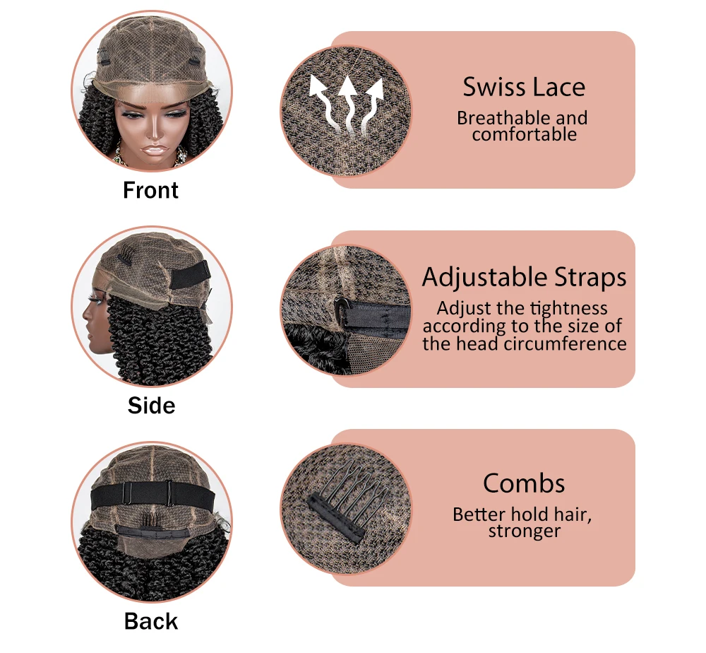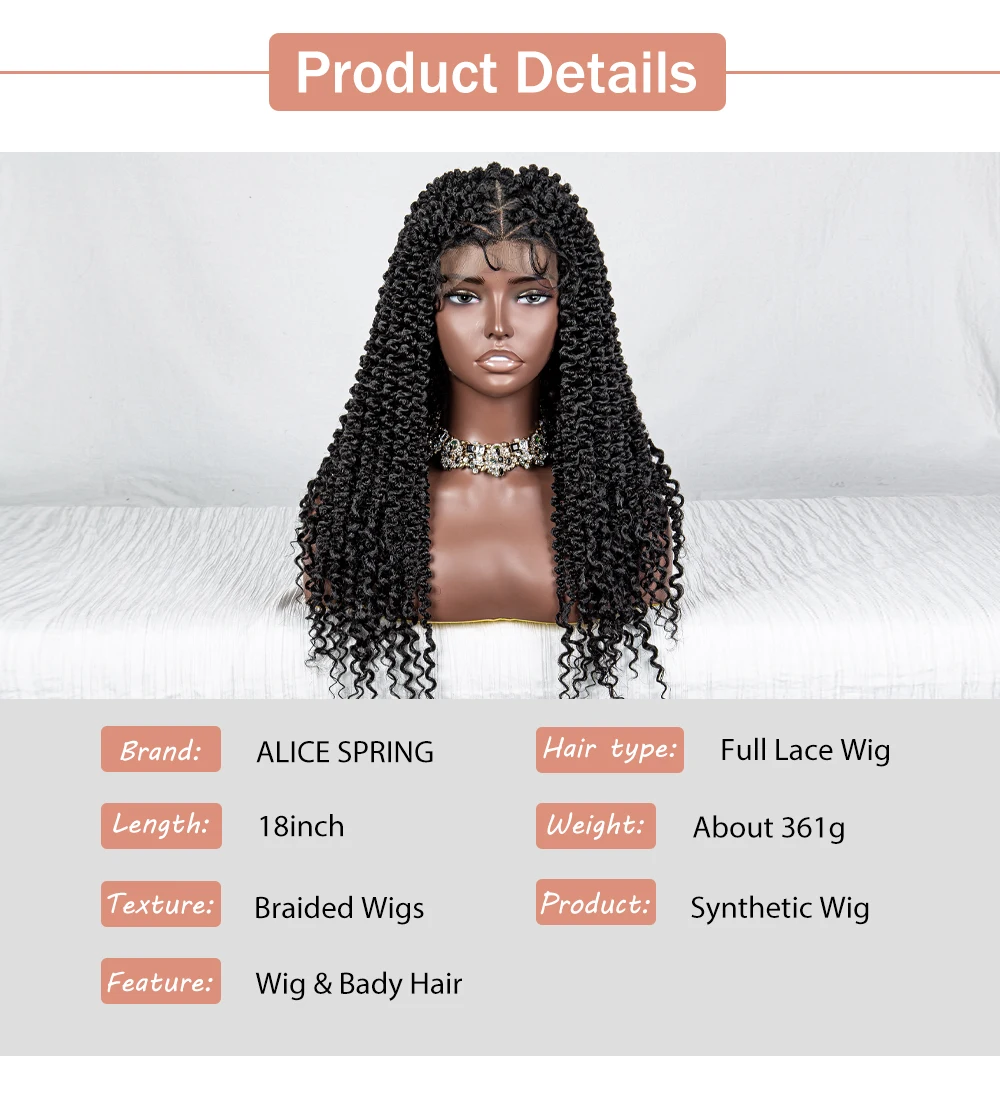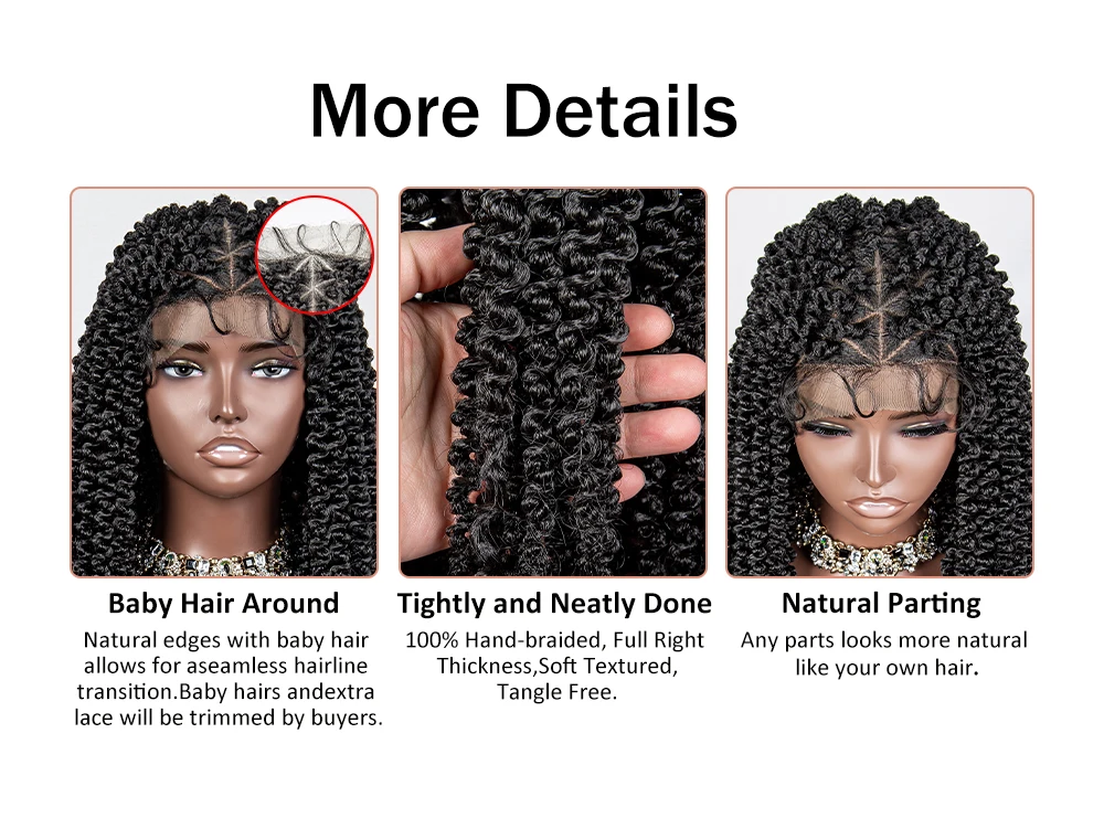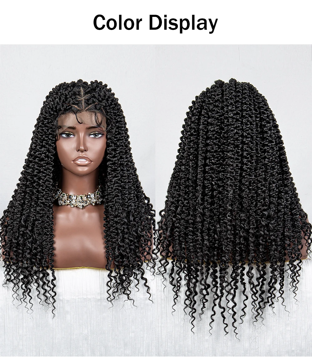 HD Full Lace Braided Wigs Synthetic Knotless Box Curly Braids Wig with Baby Hair for Women 18Inch Short Braided Lace Front Wigs