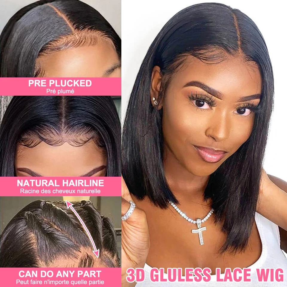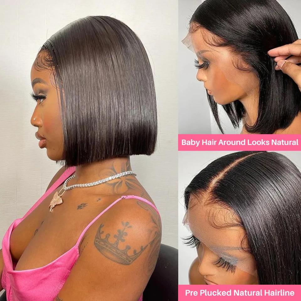 HD Glueless Short Straight Bob Wig 4x4 Closure Wig Lace Front Human Hair Wigs For Women Pre Plucked Remy Lace Frontal Bob Wigs