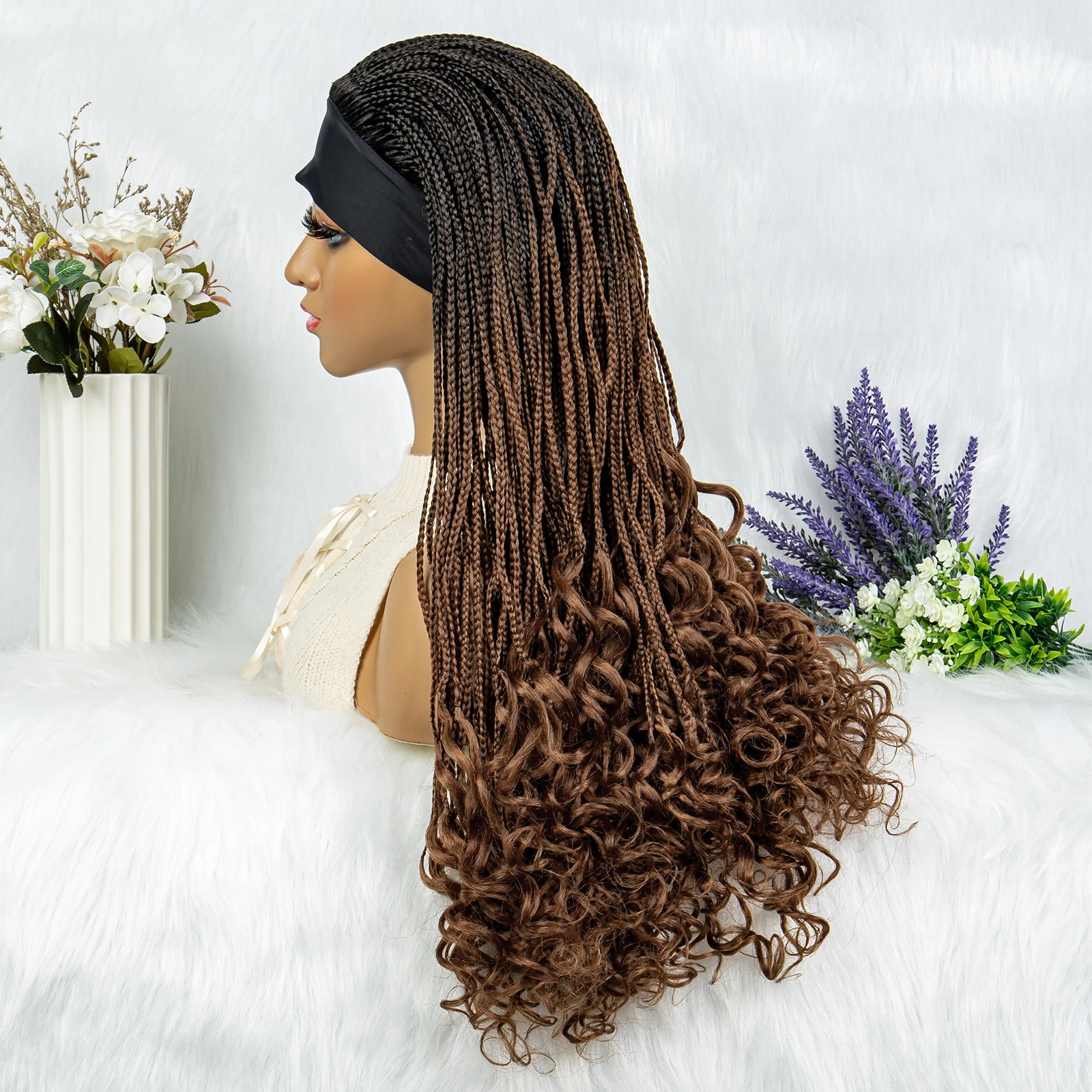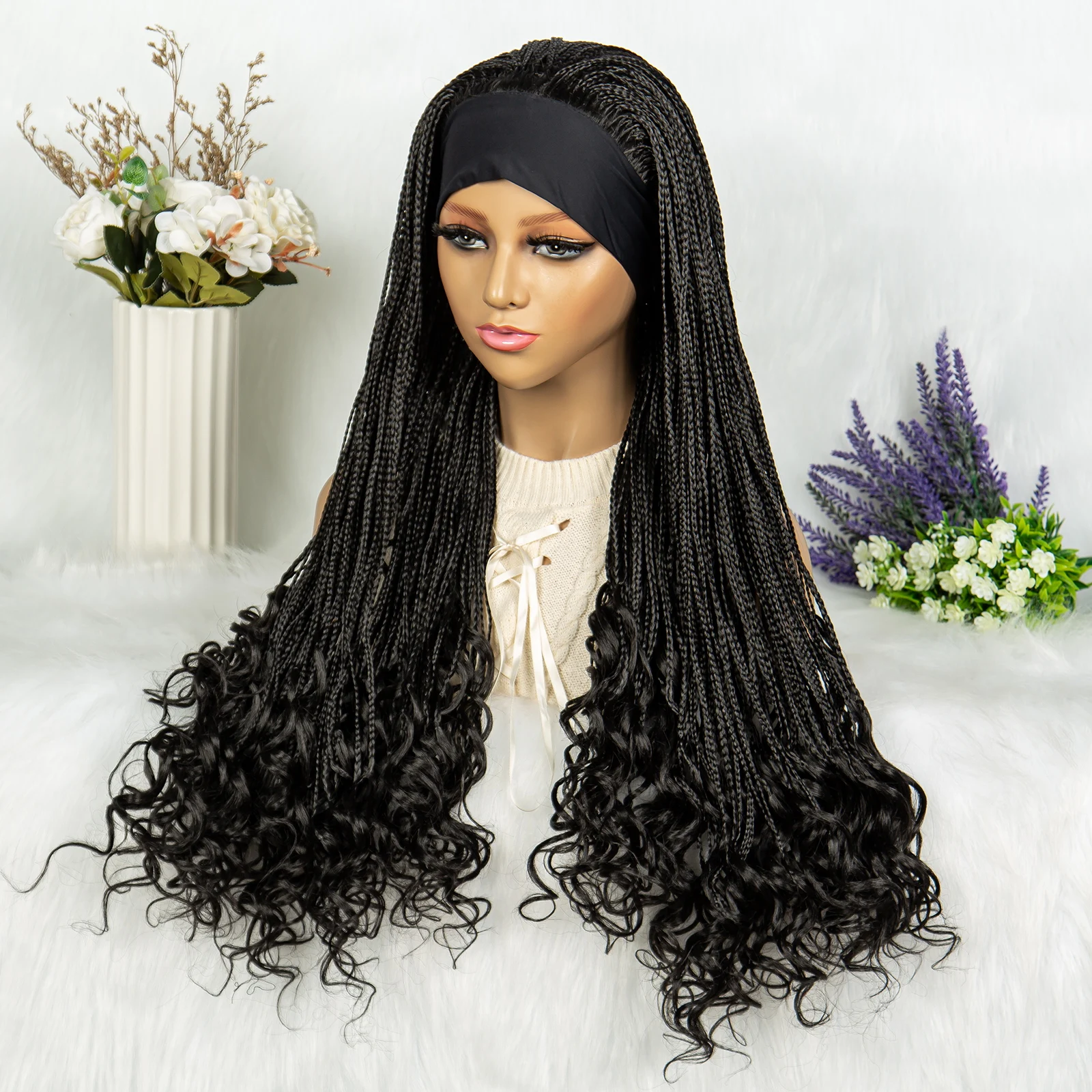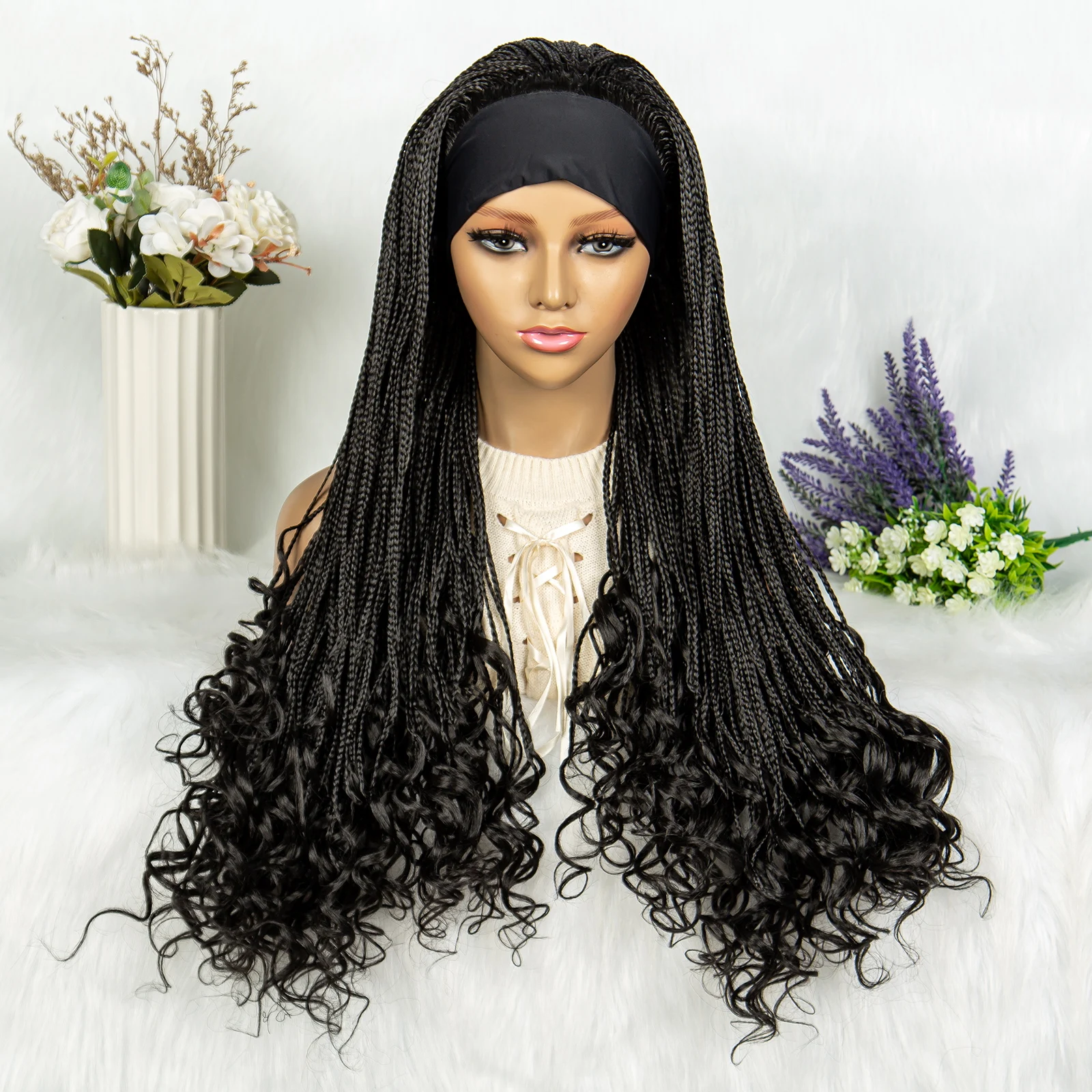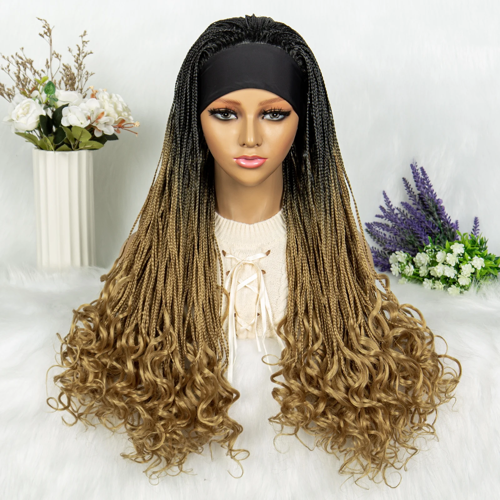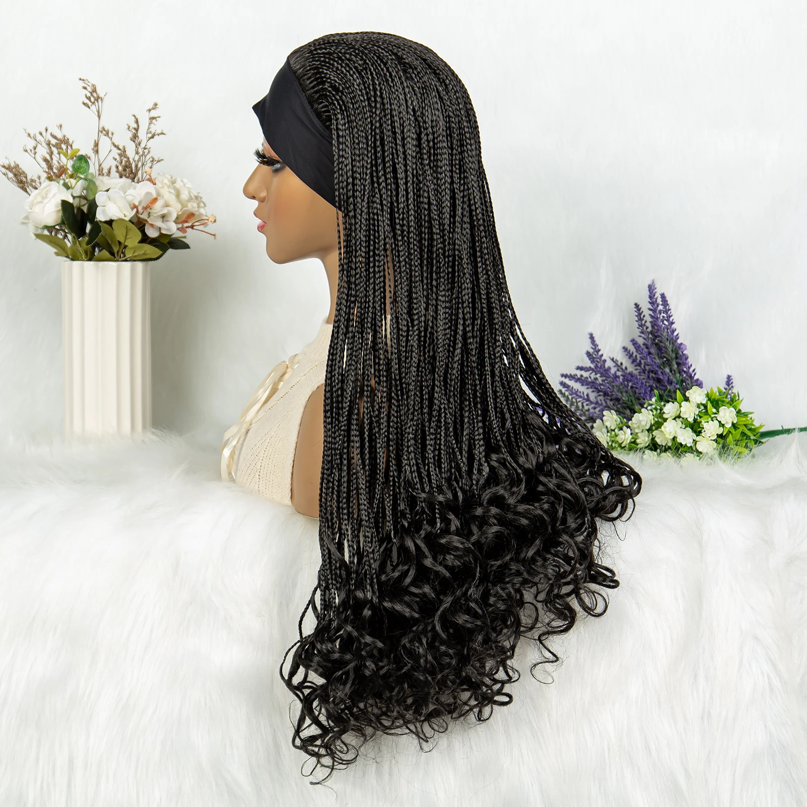 Headband wigs Synthetic Cornrow Braids Wig Braided Wig African American Braiding Water Wave Wavy Hair For Women