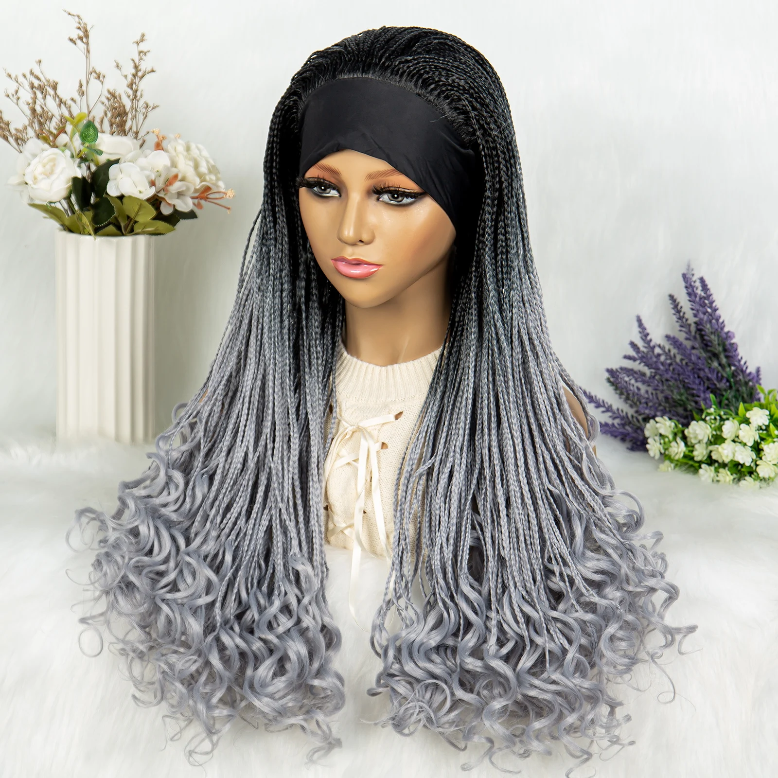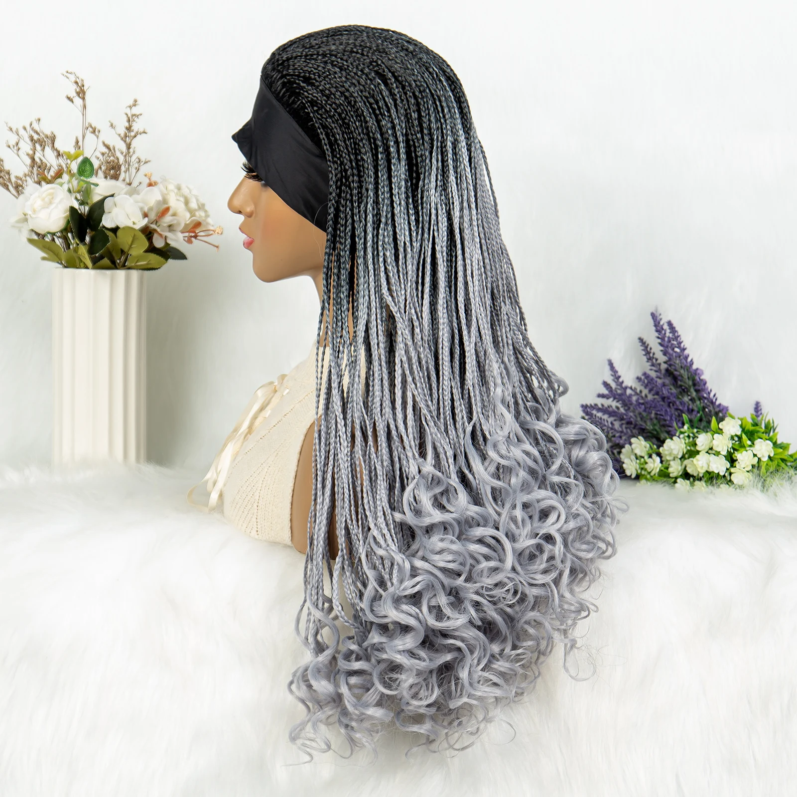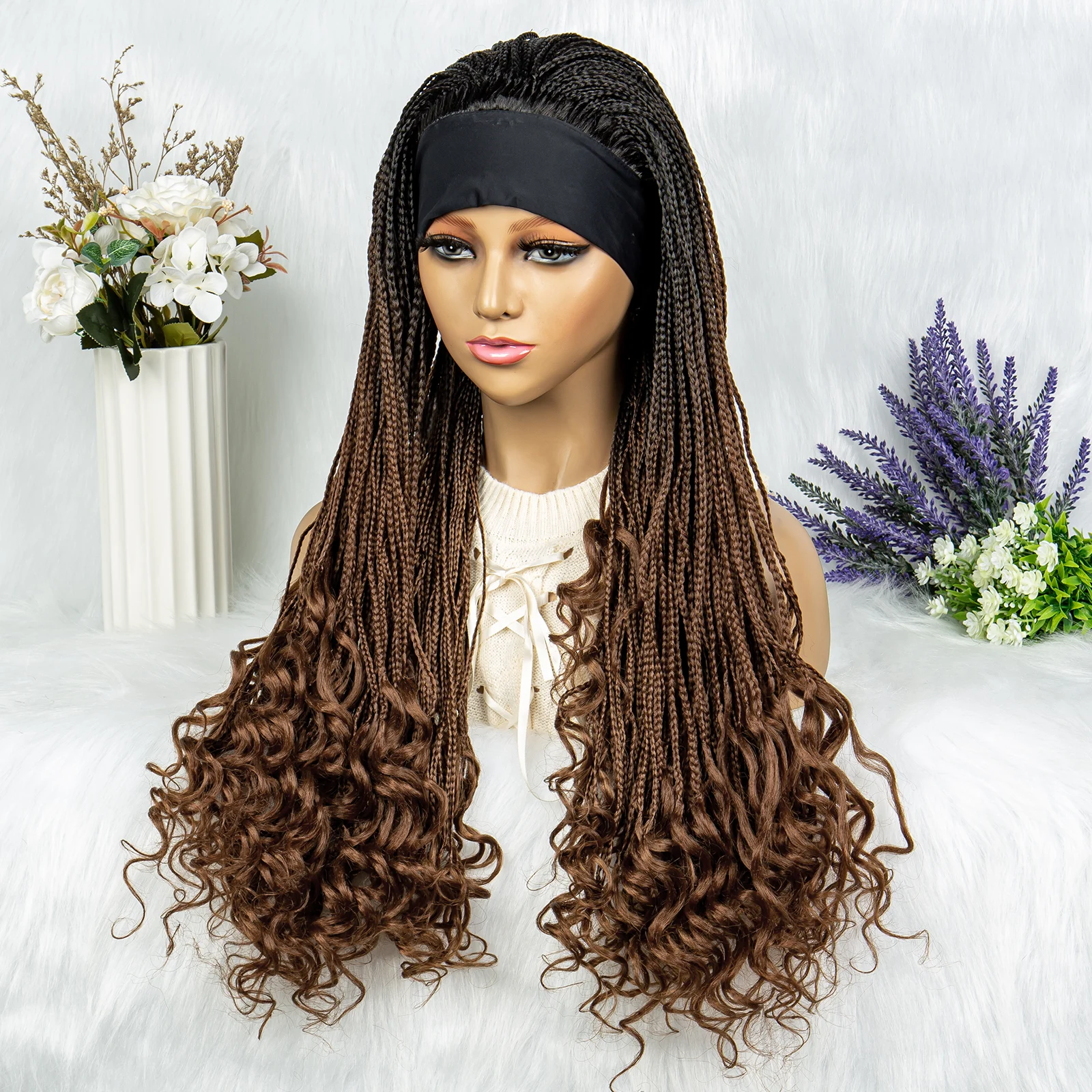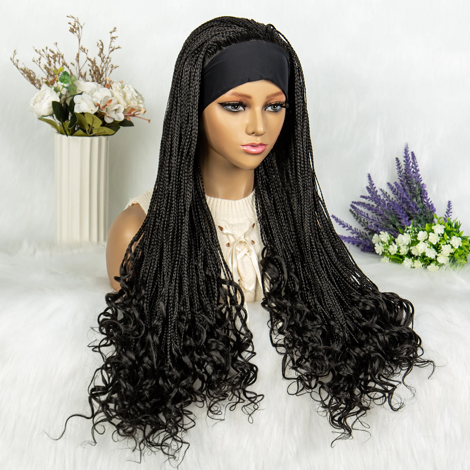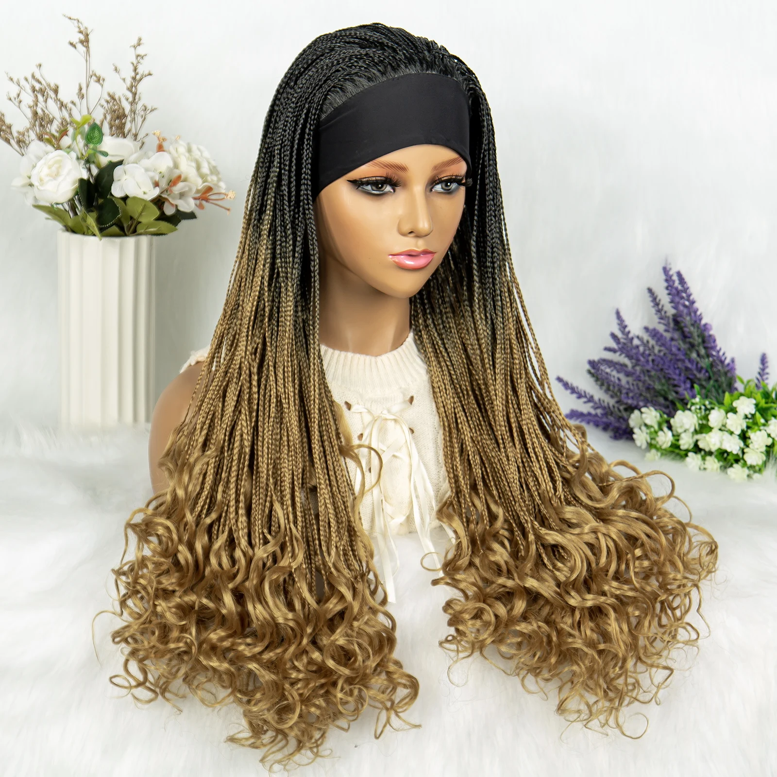 Headband wigs Synthetic Cornrow Braids Wig Braided Wig African American Braiding Water Wave Wavy Hair For Women