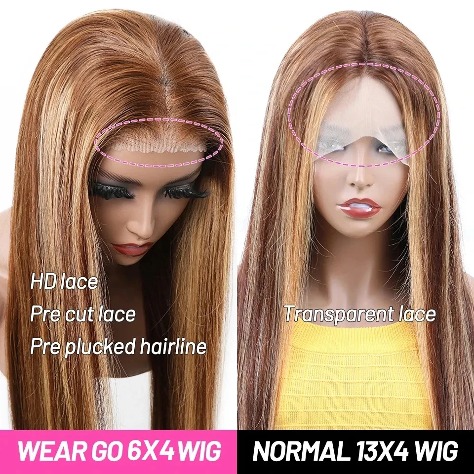 Highlight Glueless Wig Human Hair Ready To Wear And Go Preplucked Brazilian Straight HD Lace Colored Human Hair Wigs For Women
