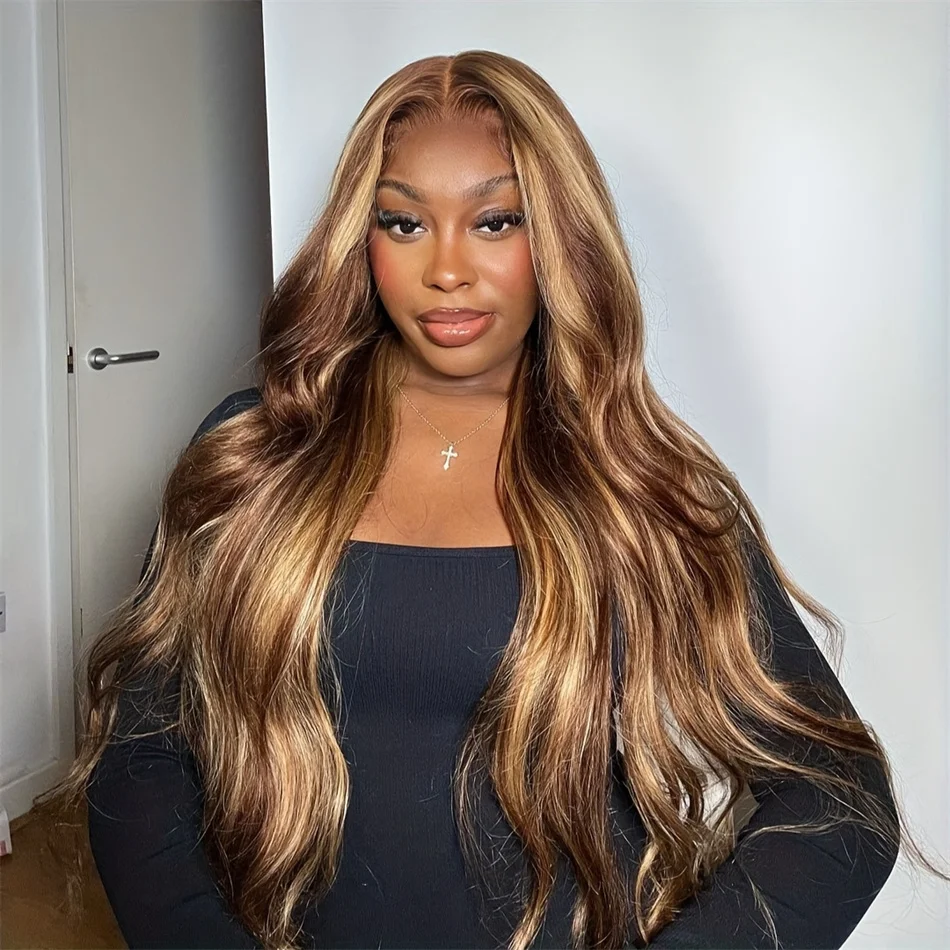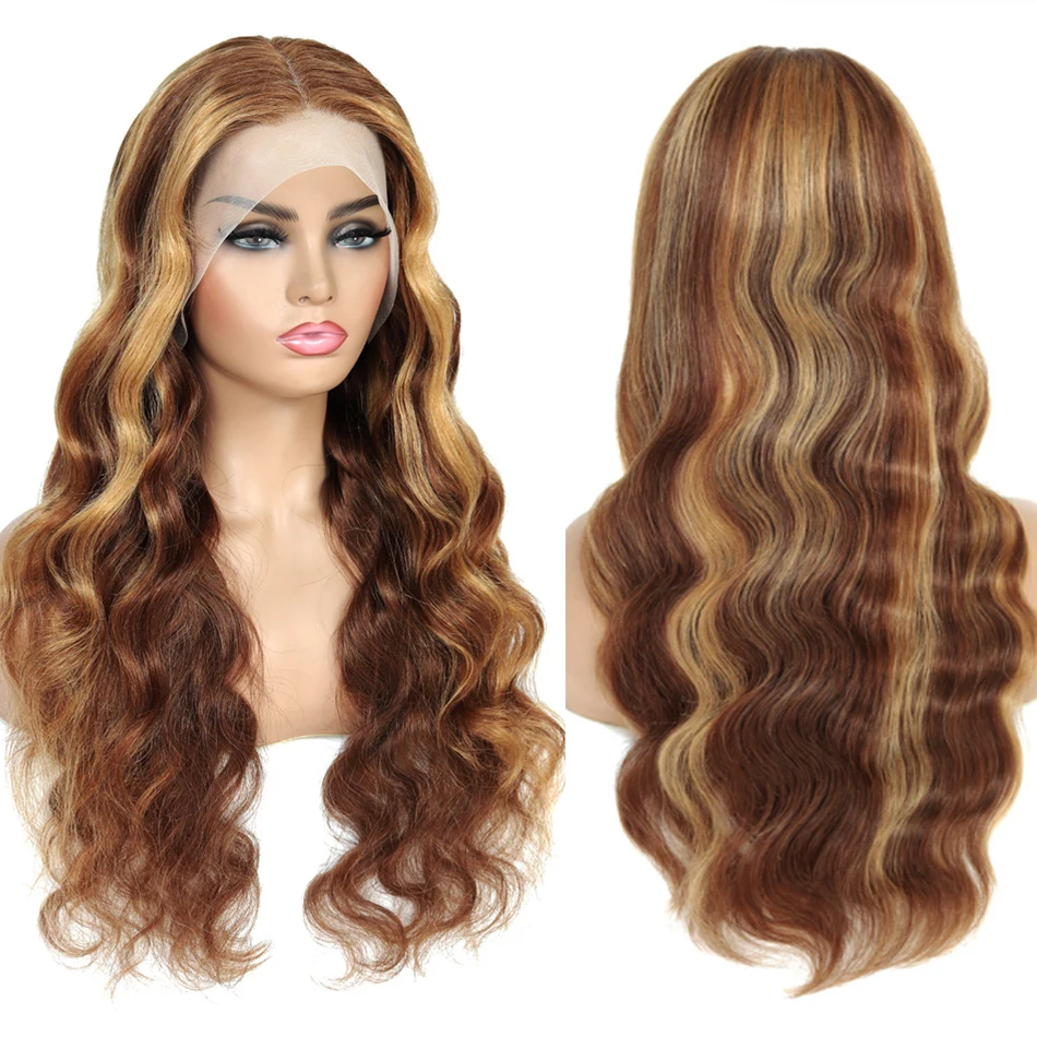 Highlight Wig Human Hair Ombre Brown Lace Front Wig Brazilian Hair Wigs For Women 32 Inch Honey Blonde Body Wave Lace Front Wig