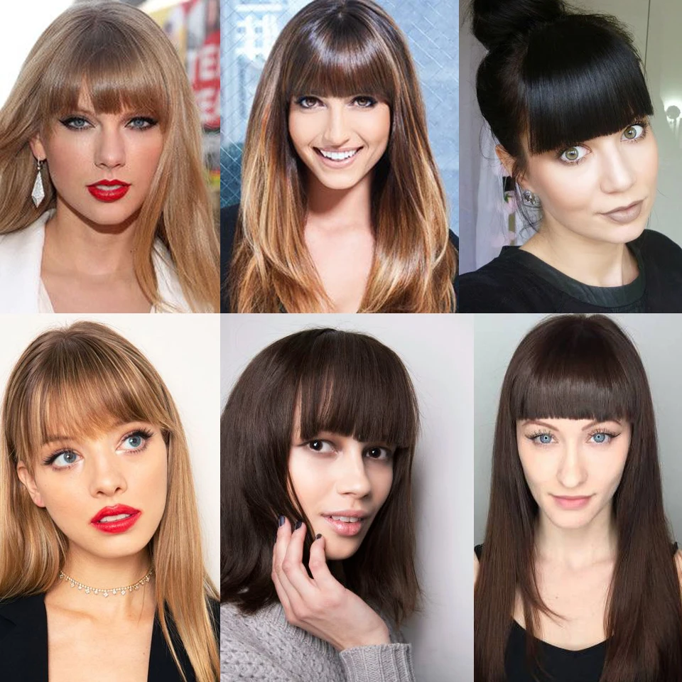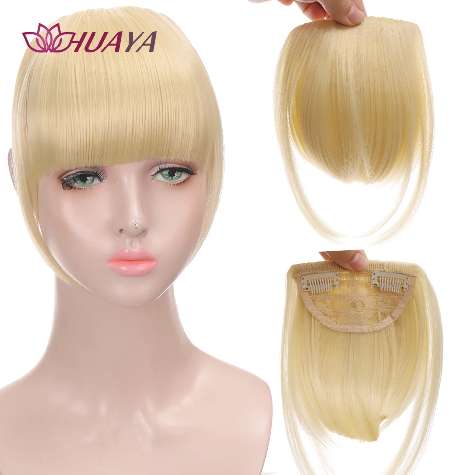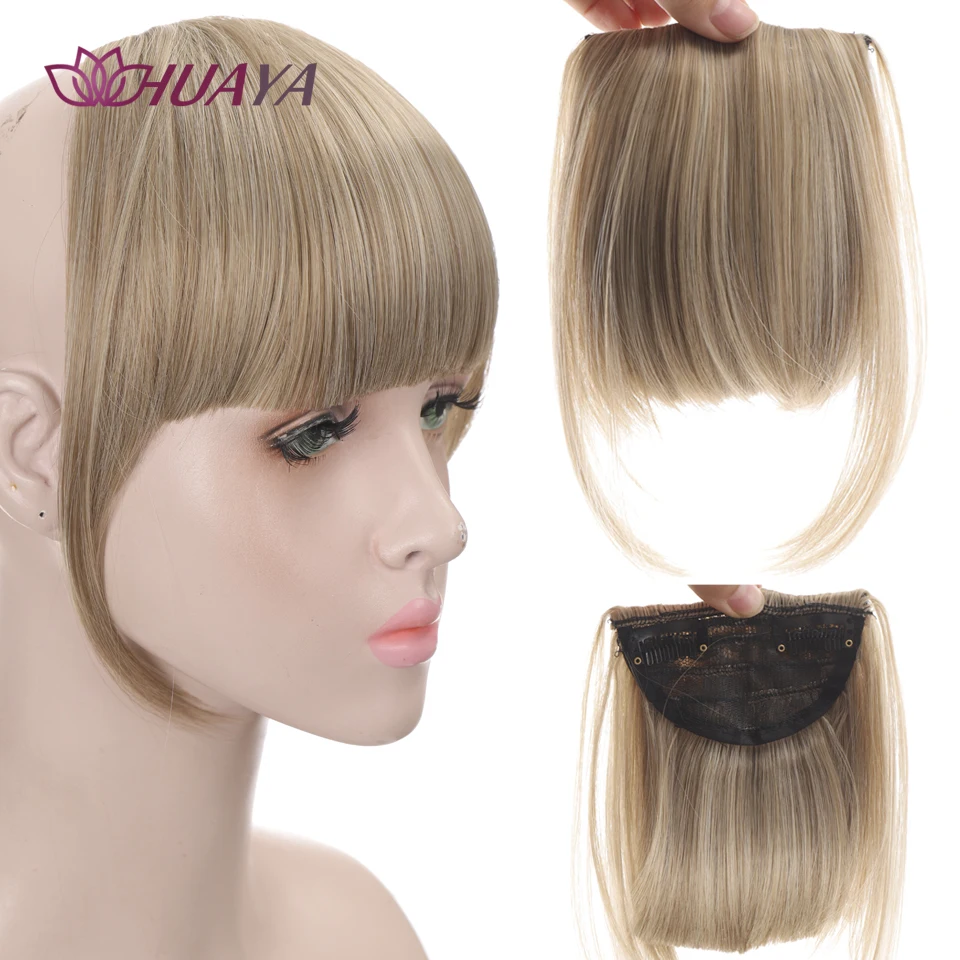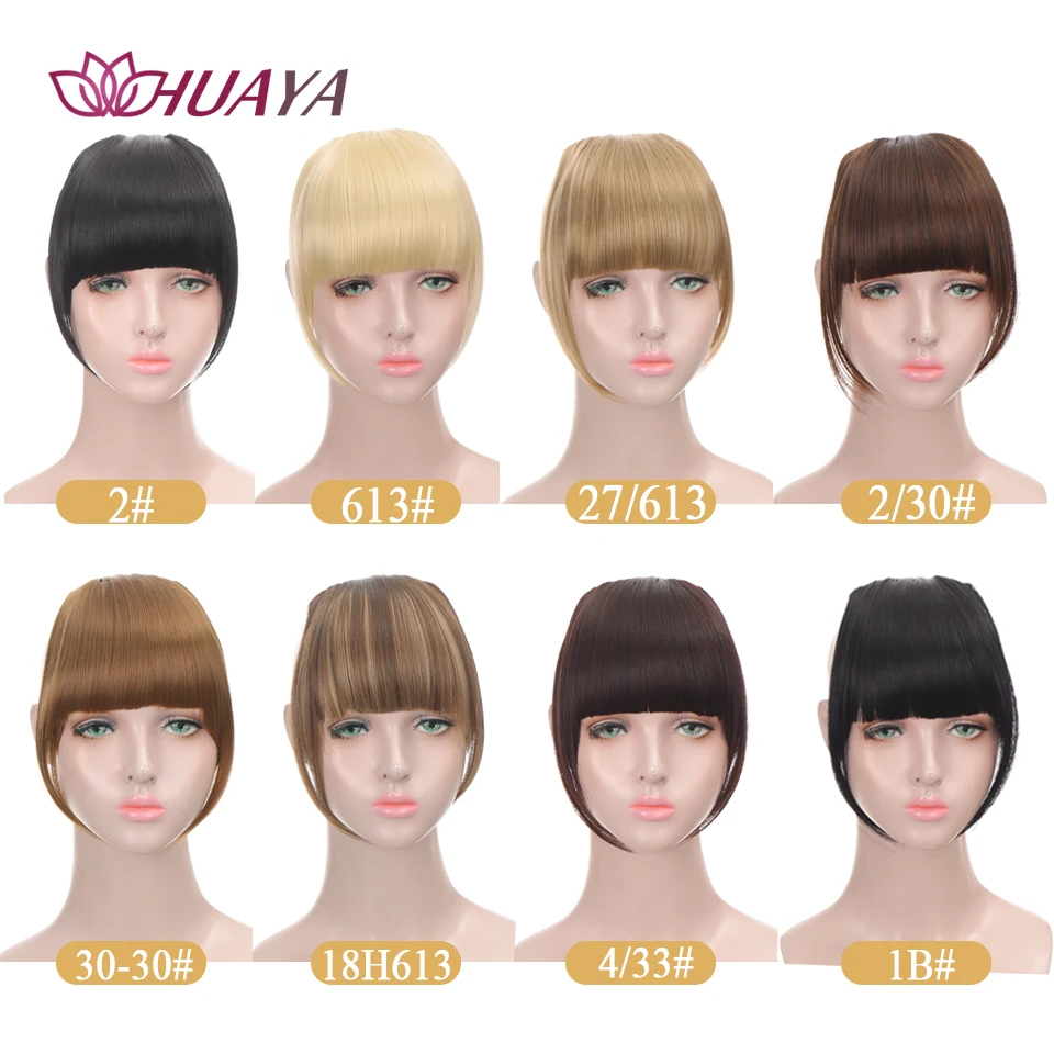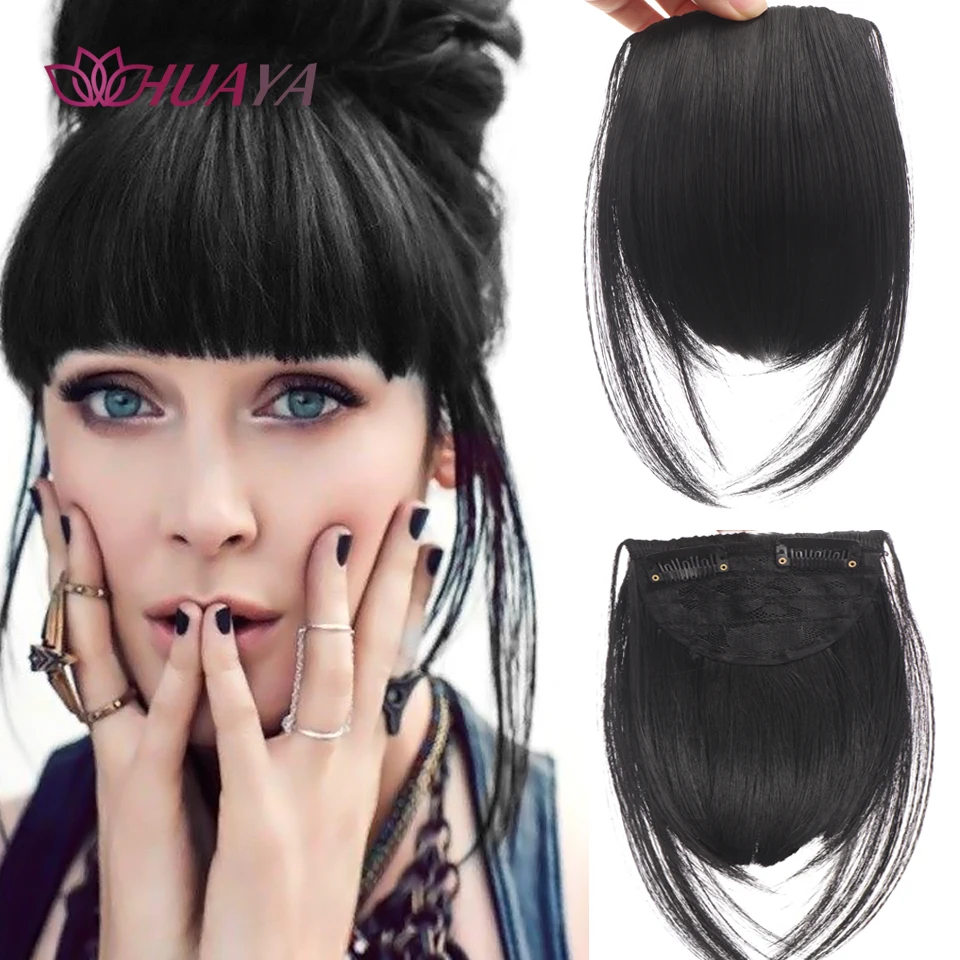 HUAYA Synthetic Bangs Hair Clip In Extensions Natural Fringe Bangs Clip In Front Neat Flat Bang Short Straight Hair piece Bangs