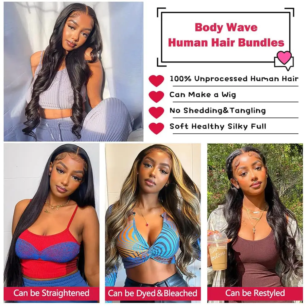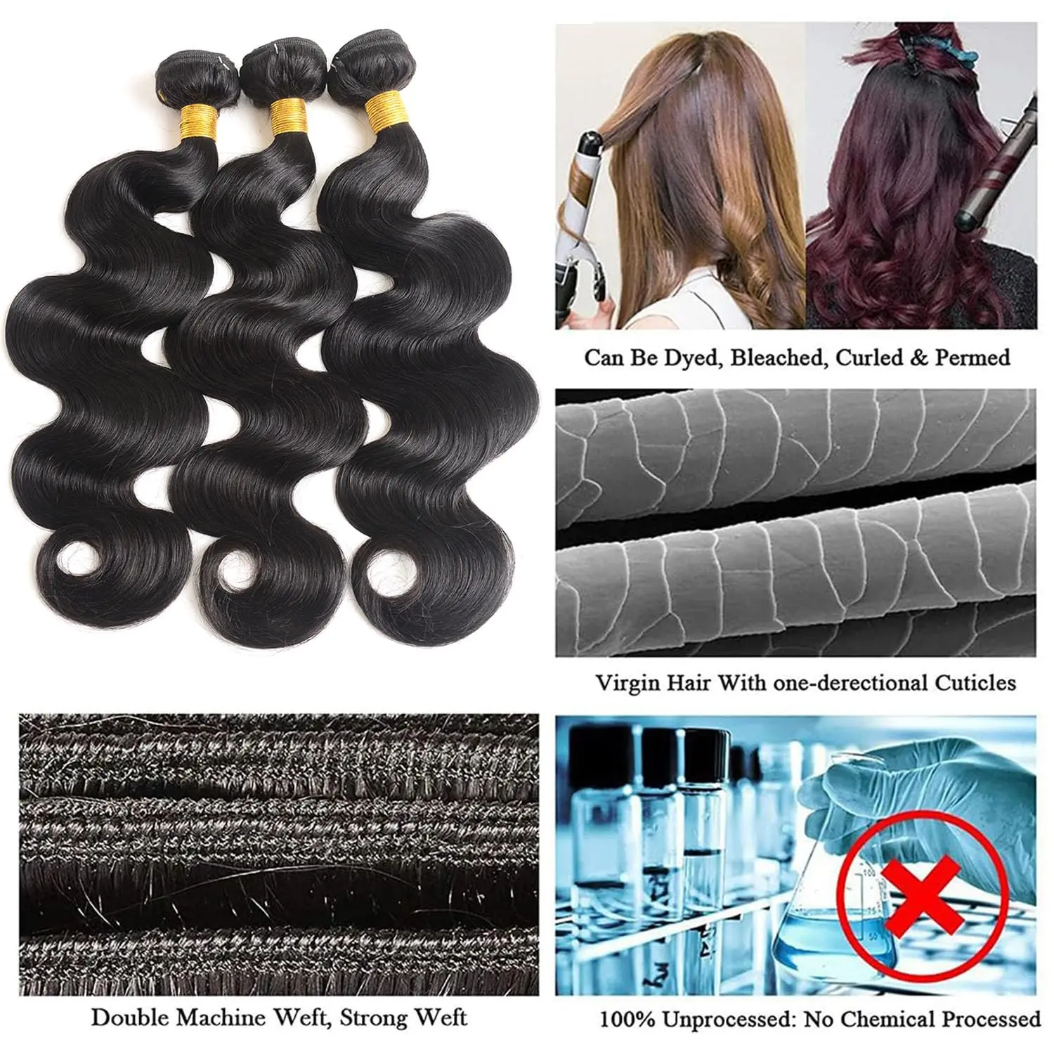 Human Hair Bundles with Closure Body Wave 100% Brazilian Virgin Remy Human Hair 3 Bundles with 13×4 Lace Closure Natural Color