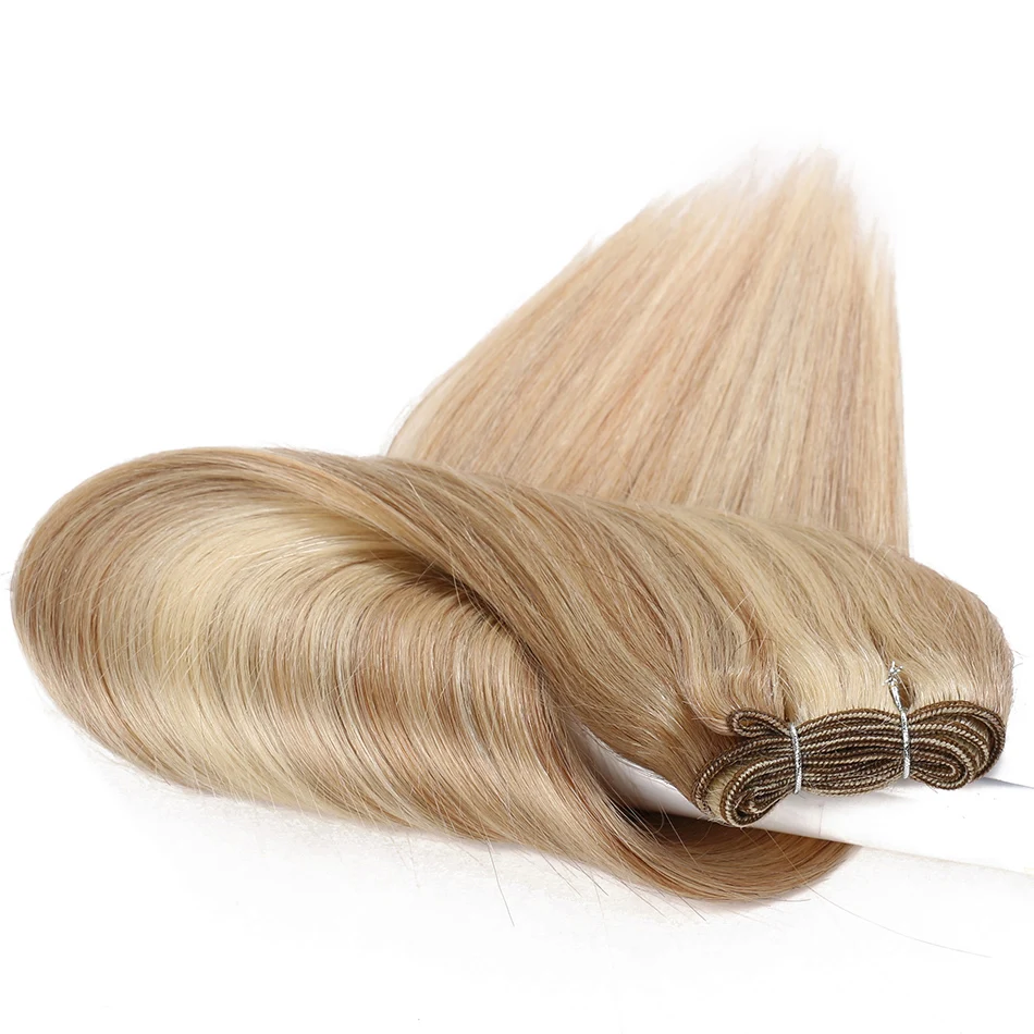 Straight Human Hair Weft Bundles Ombre Blonde Human Hair Extensions 100g/Pcs 16"-28" Straight Remy Skin Double Weft