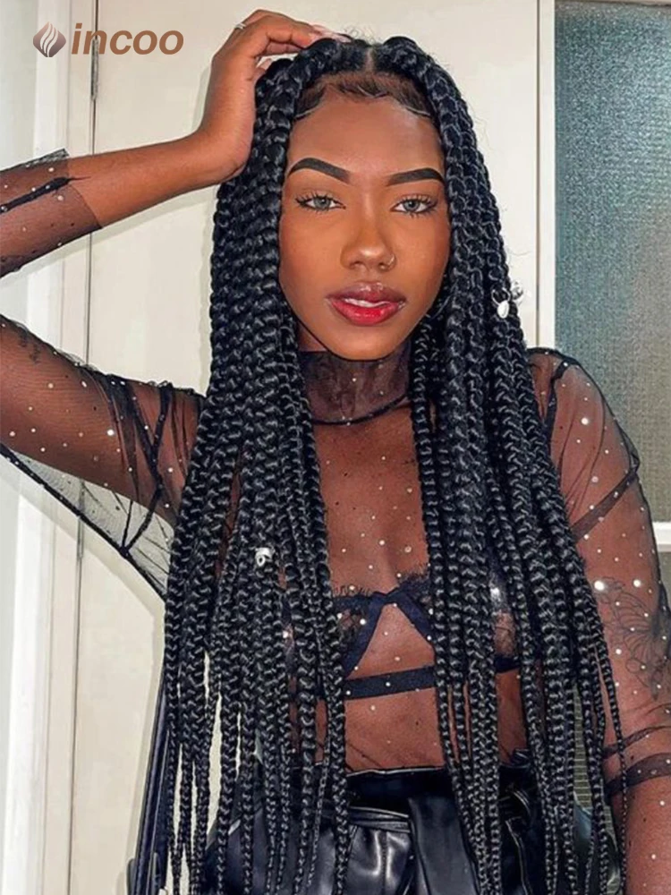 Incoo 36" Synthetic Braided Wigs Goddess Long Black Large Box Braid Hair Goddess Jumbo Braids Cheap Wigs On Clearance Sale