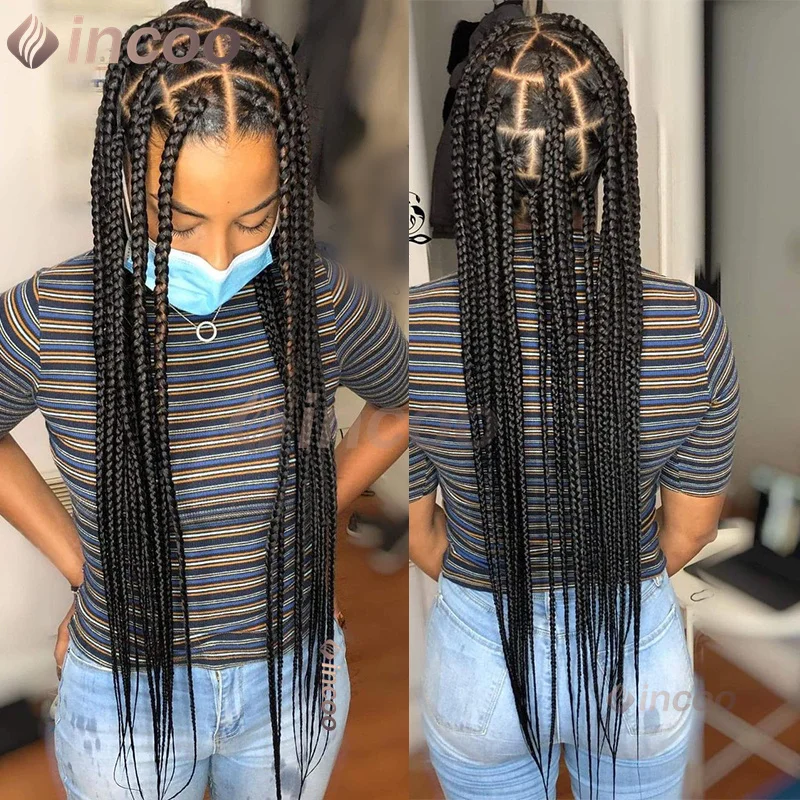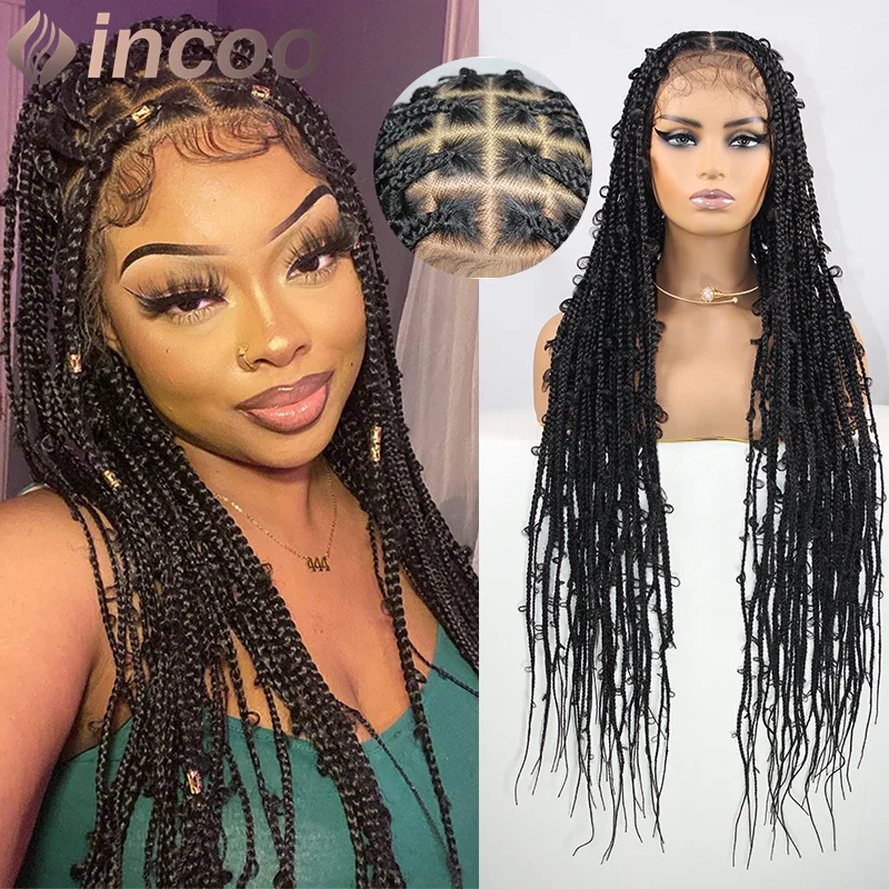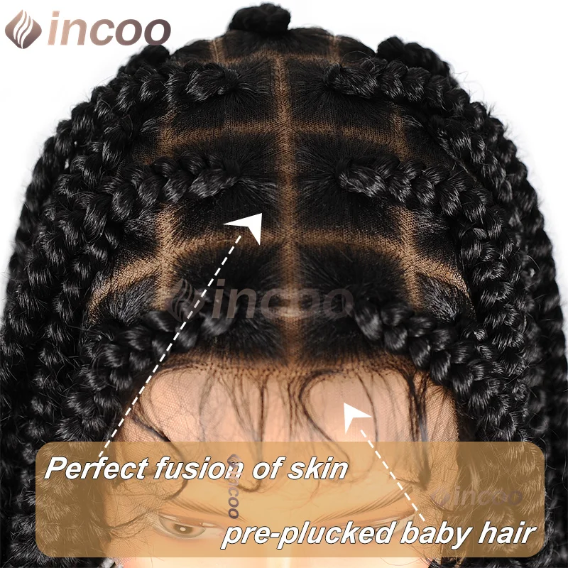Incoo Full Lace Frontal Synthetic Larger Box Braided Lace Wigs 36 Inch Prepluck Baby Hair New Arrival Afro Knotless Braid Wigs