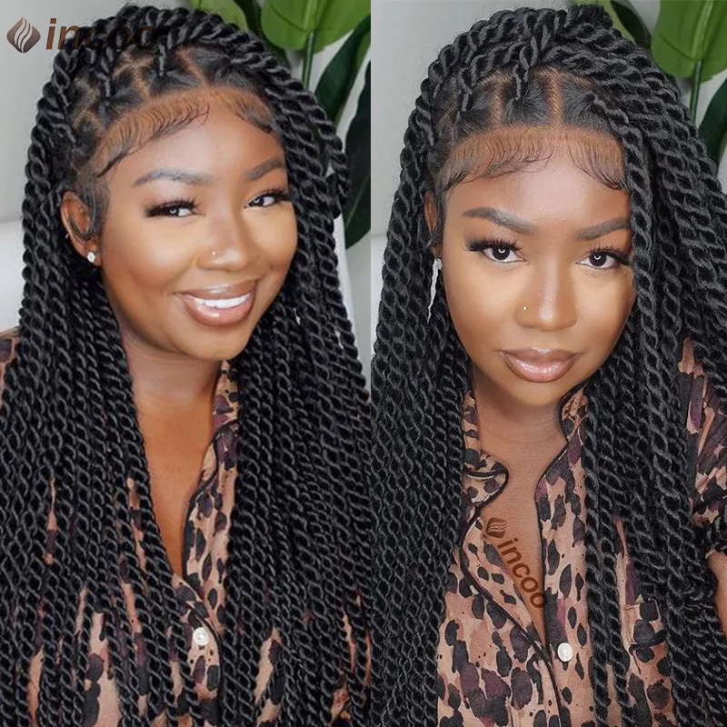 Incoo Long 36'' Senegalese Twist Braided Lace Front Wig Large Square Knotless Box Braids Wig With Baby Hair Synthetic Braids Wig