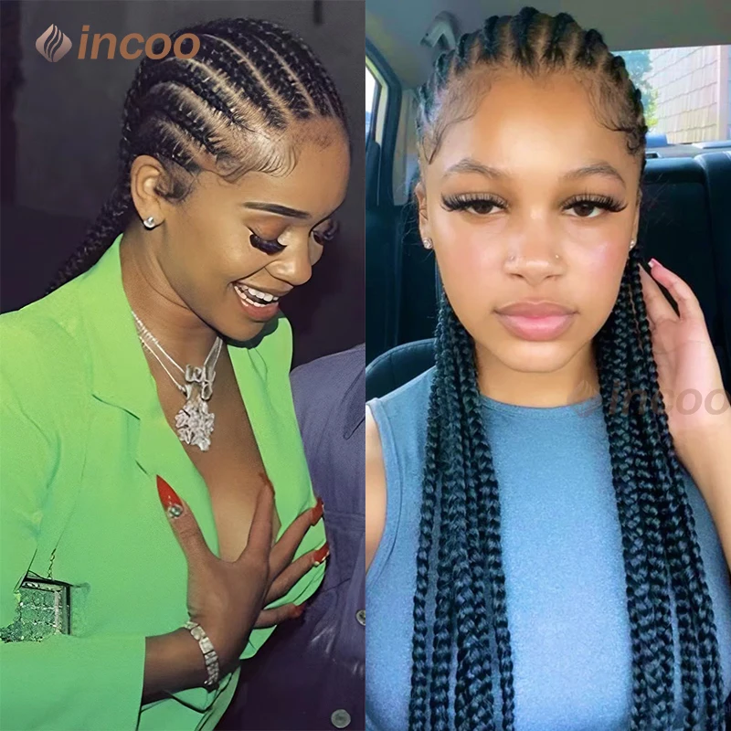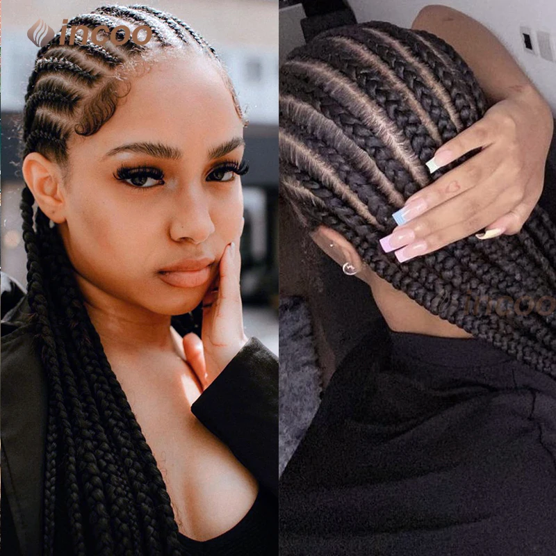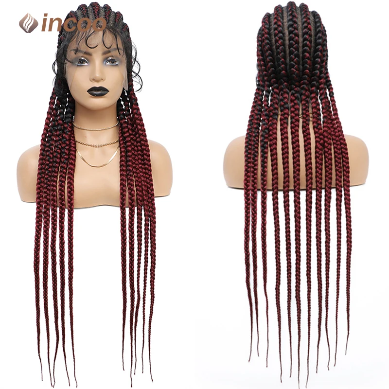 Incoo Synthetic Braided Wig Full Lace Front Wigs Knotless Braids Hair Wig Cornrow Braid Wig African Hair Durable Comfortable