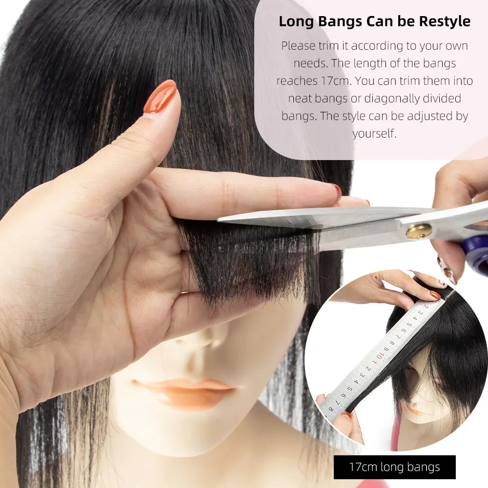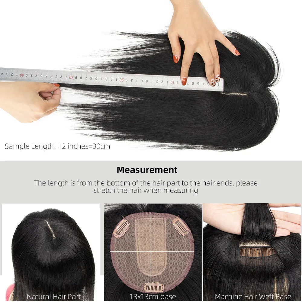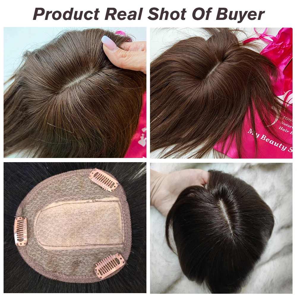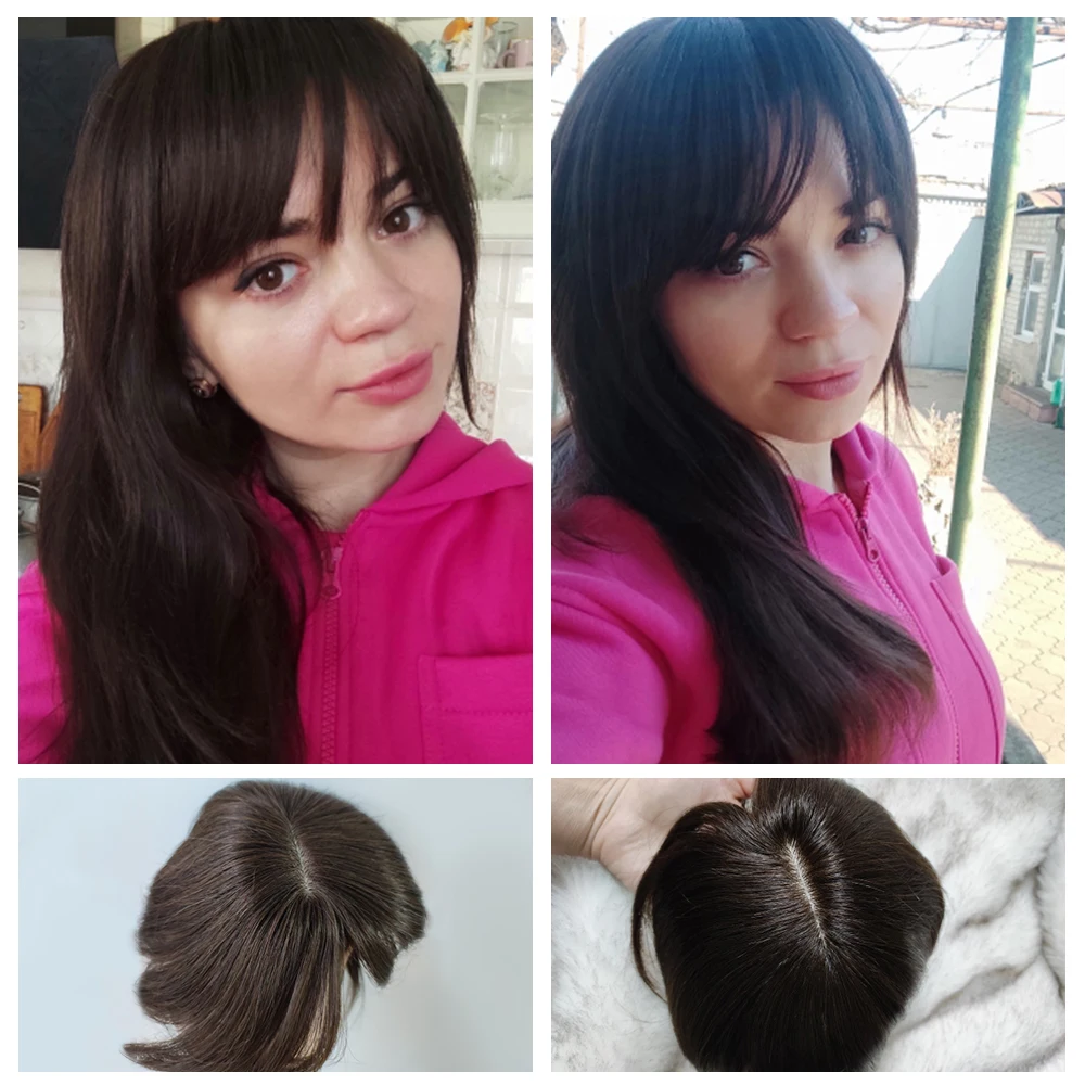Isheeny 8" 10" 12" 14" 18" Center Part Human Hair Pieces Brown Color Women Topper With Bangs 13x13cm Base 100% Human Hair