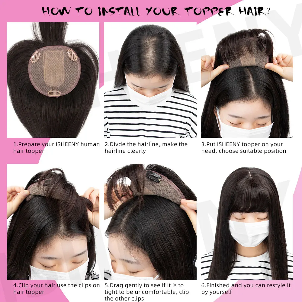 When you receive the hair piece/topper, it may be different from our picture. Because our website pictures was taken after heating or combing by stylist. After a long time transportation, the goods are squeezed and deformed in the package and the hair bangs and ends lost its original shape. What's more , the variability of the real human hair is relatively strong, Some curved shapes will not be obviousas time goes by, so straighten hair first before wearing.