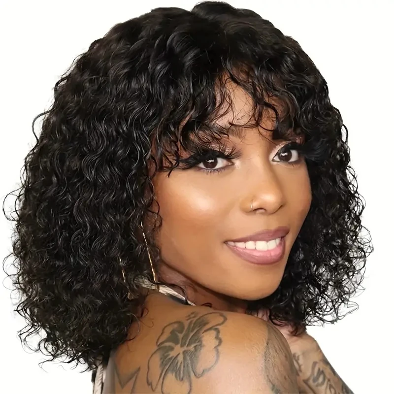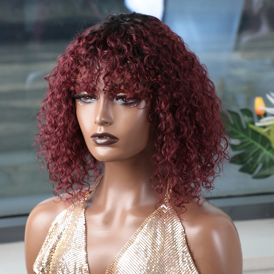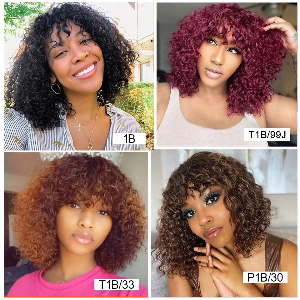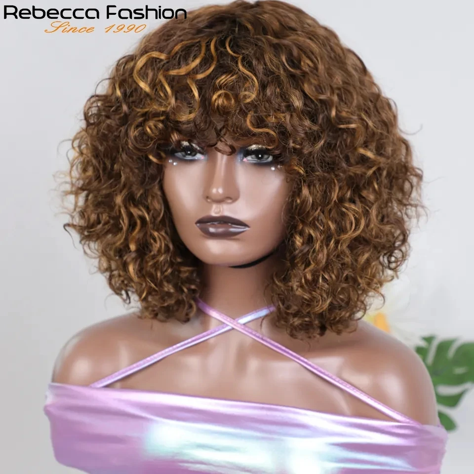 Jerry Curly Short Pixie Bob Cut Human Hair Wigs With Bangs Brazil Short Wigs For Women Highlight Blonde Colored Human Hair Wigs