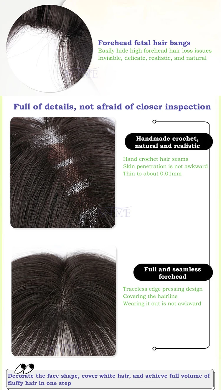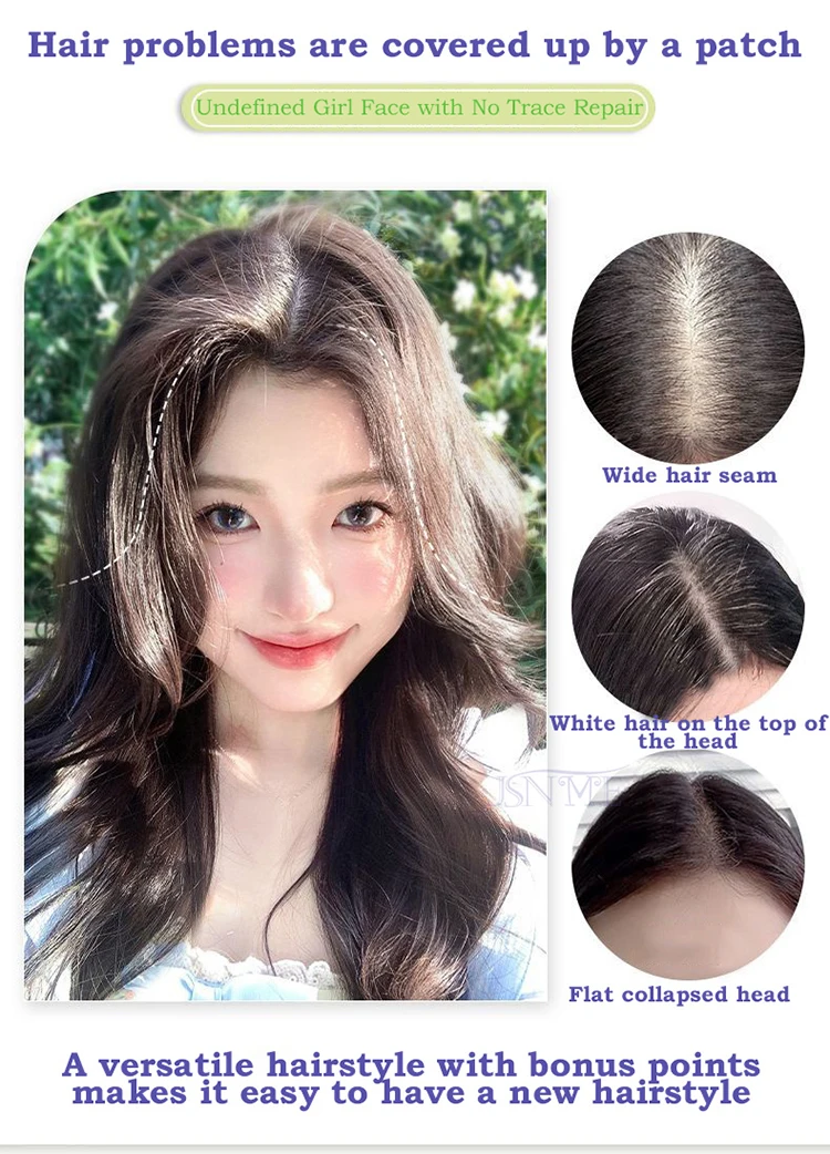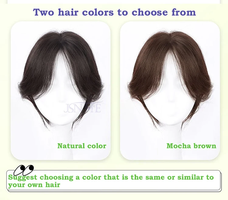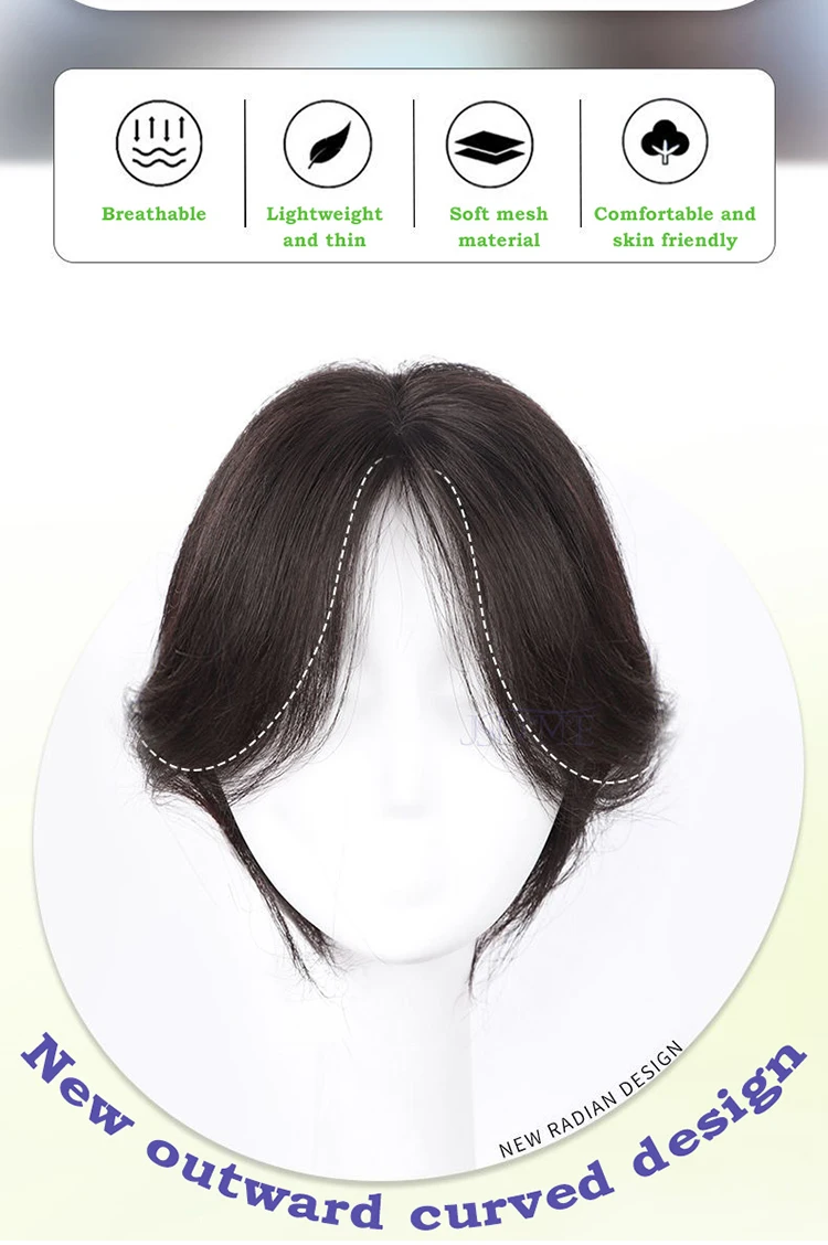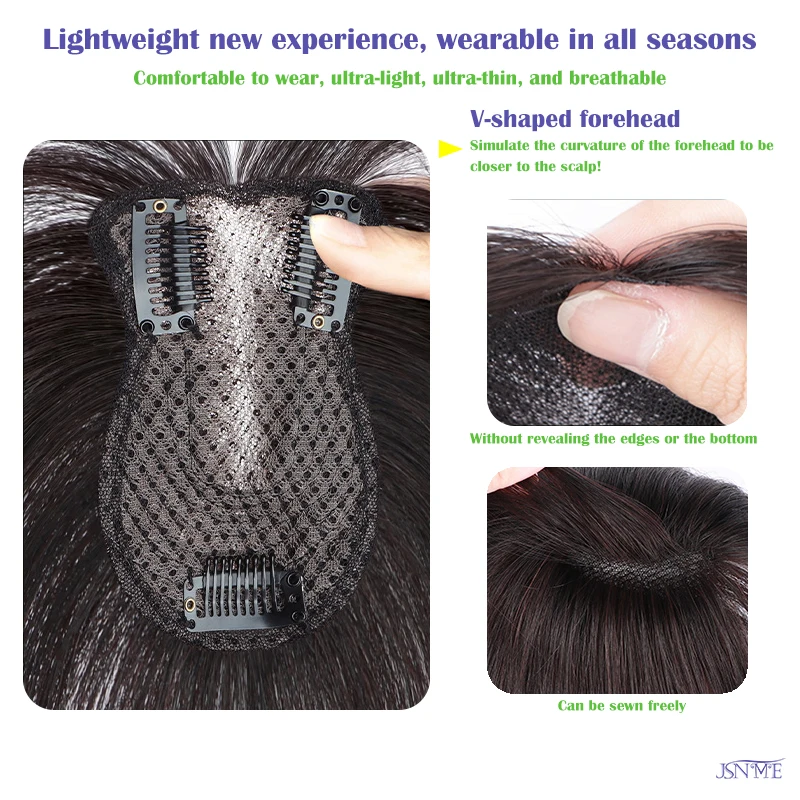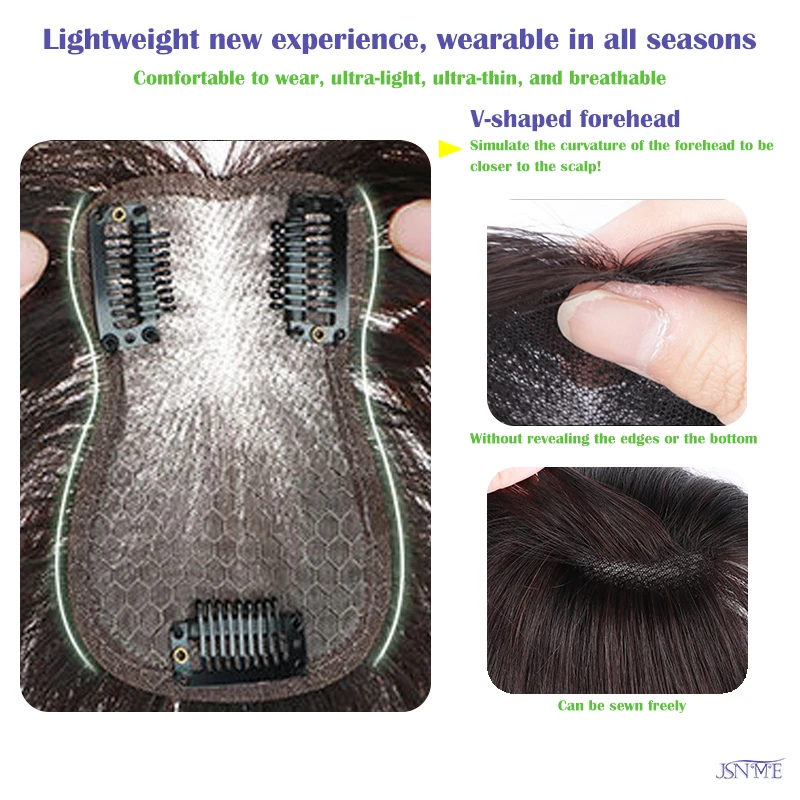 JSNME Natural Human Hair Topper With Bangs Invisible For Women Clip in Toppers Hand Tied Remy Real Hair Pieces Hairs Extension