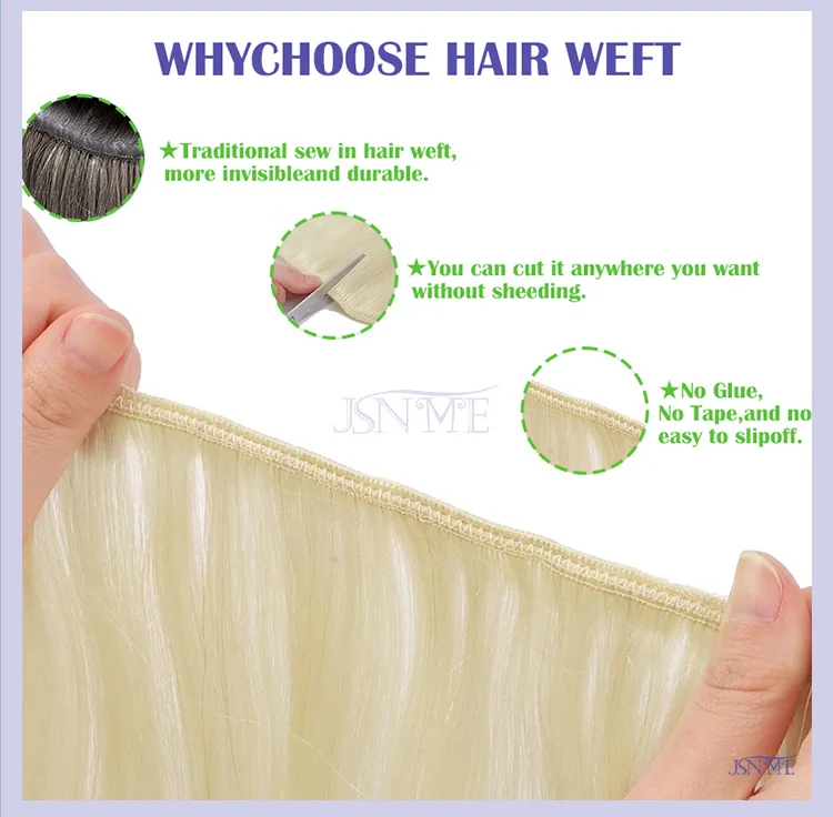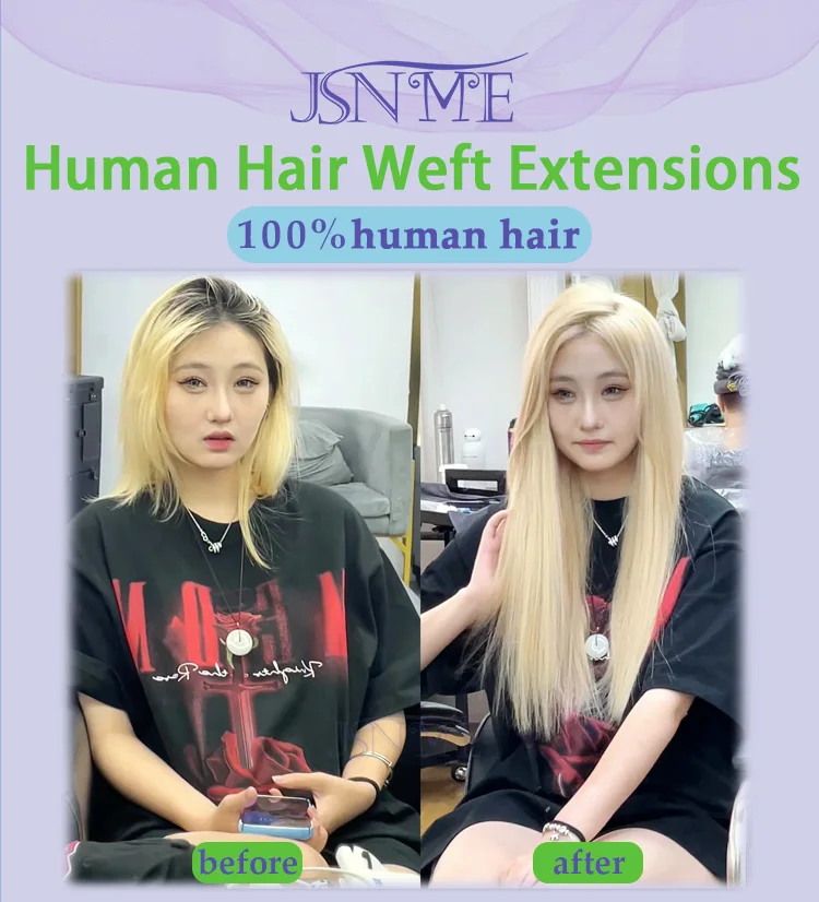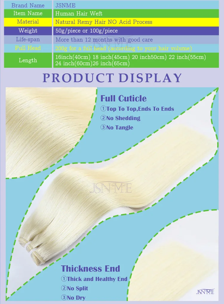 JSNME Straight Human Hair Weaves European Remy Human Hair Weft Bundles Sew In Weft Extensions Blonde 14"-24" Natural Hair women
