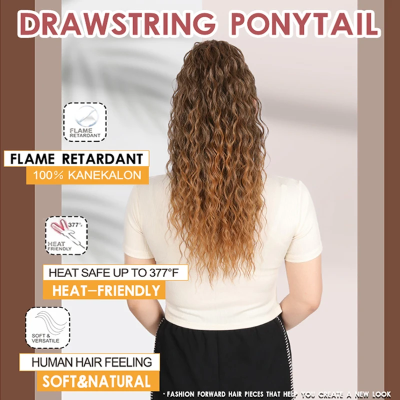 Kanekalon 20Inch Smooth Heat Resistant Draw String Hairpiece Water Wave Afro Curly Synthetic Drawstring Hair Ponytail Extensions