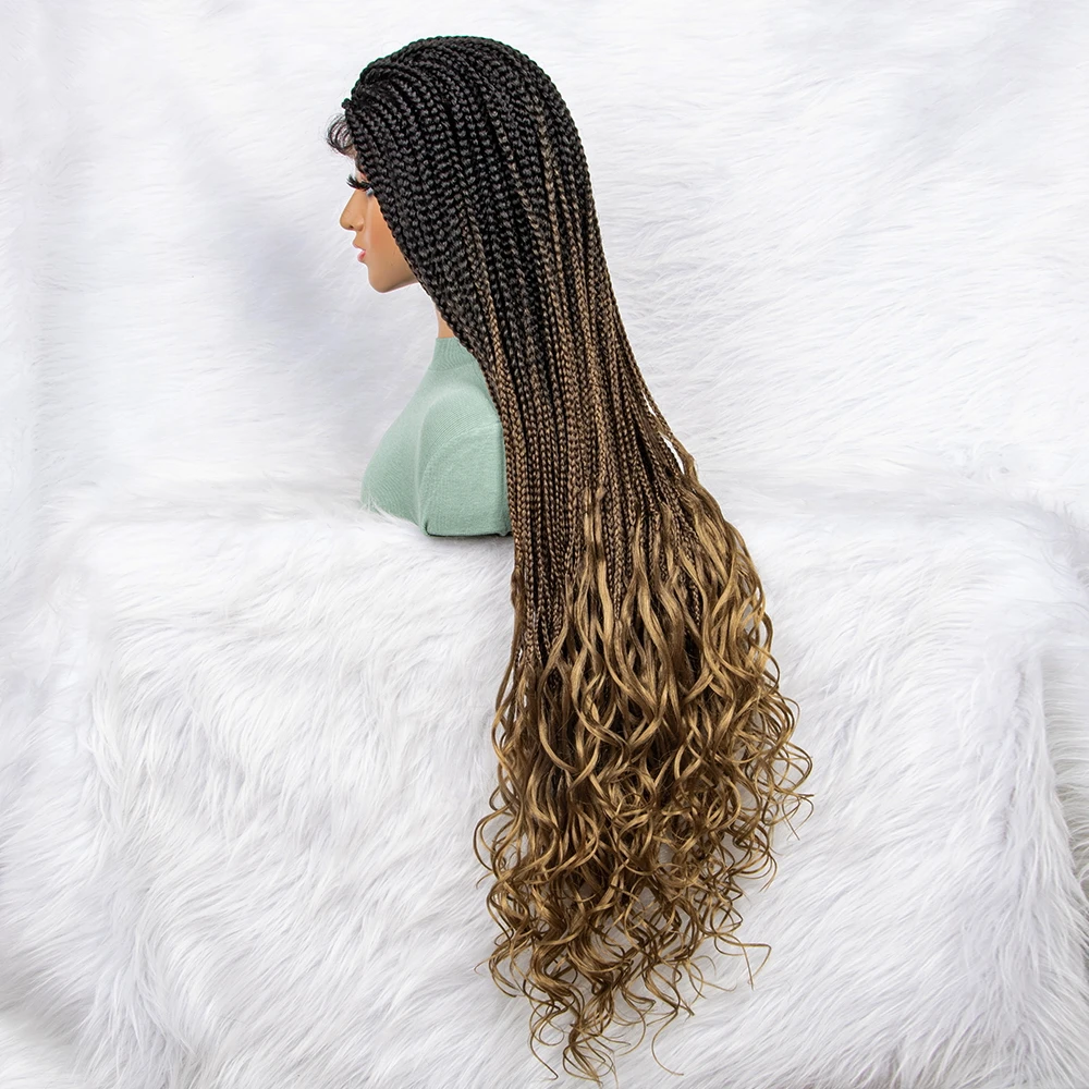 KIMA Braided Wigs Synthetic Lace Front Wig Braid African With Baby Hair Braided Lace Front Wigs Water Wavy Wigs