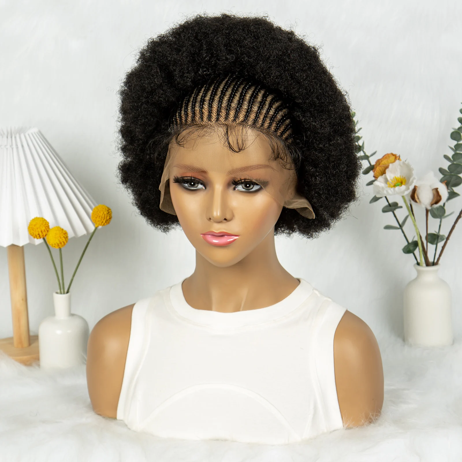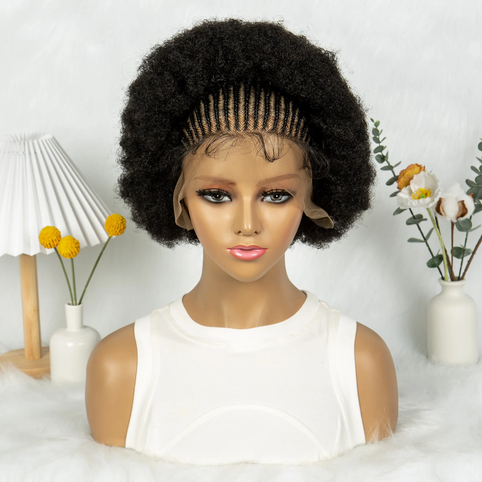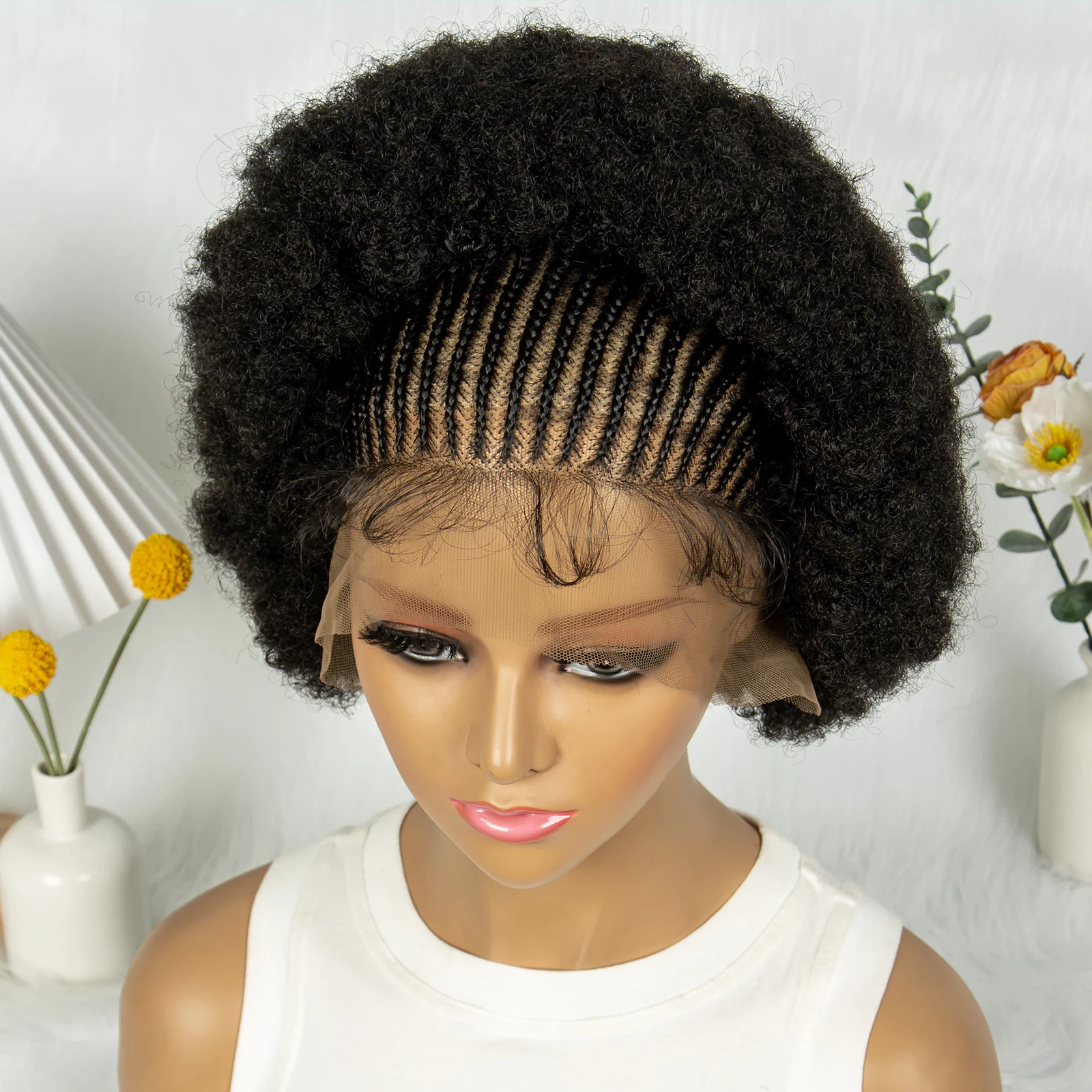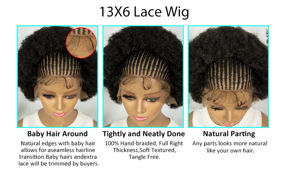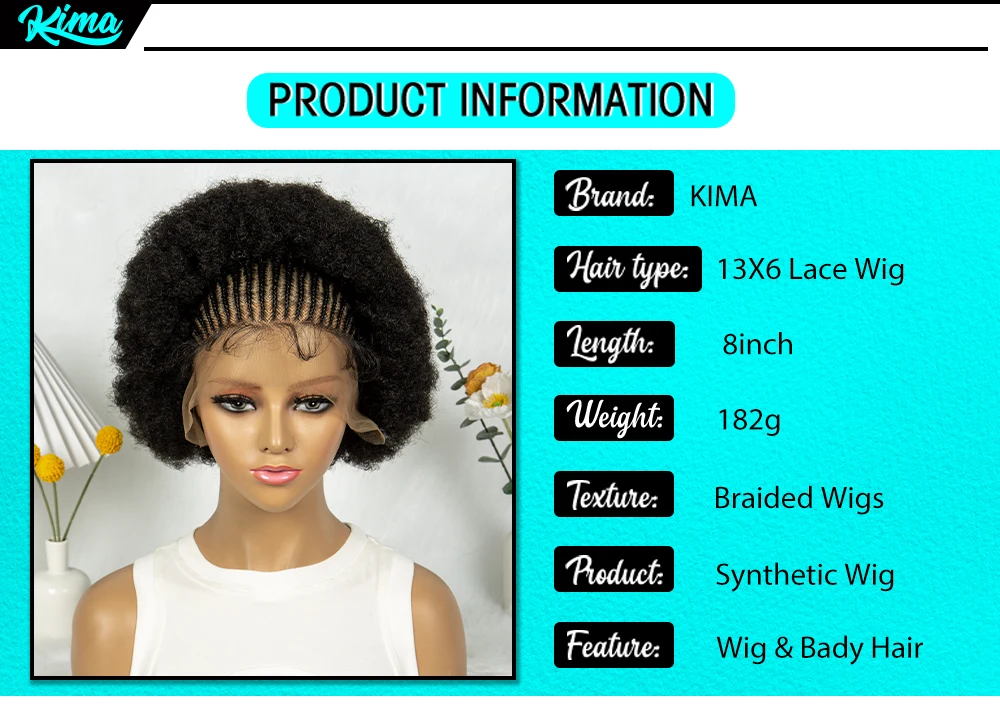 Kima Cornrow Braided Lace Wigs 13x6 Lace Frontal Wig Knotless Puffy Stitch Braids Kinky Hair Wigs for Black Women