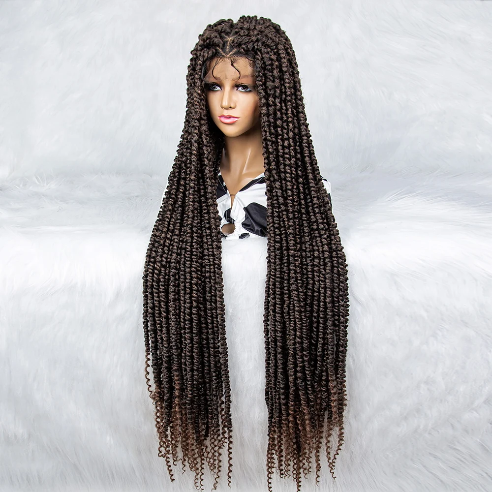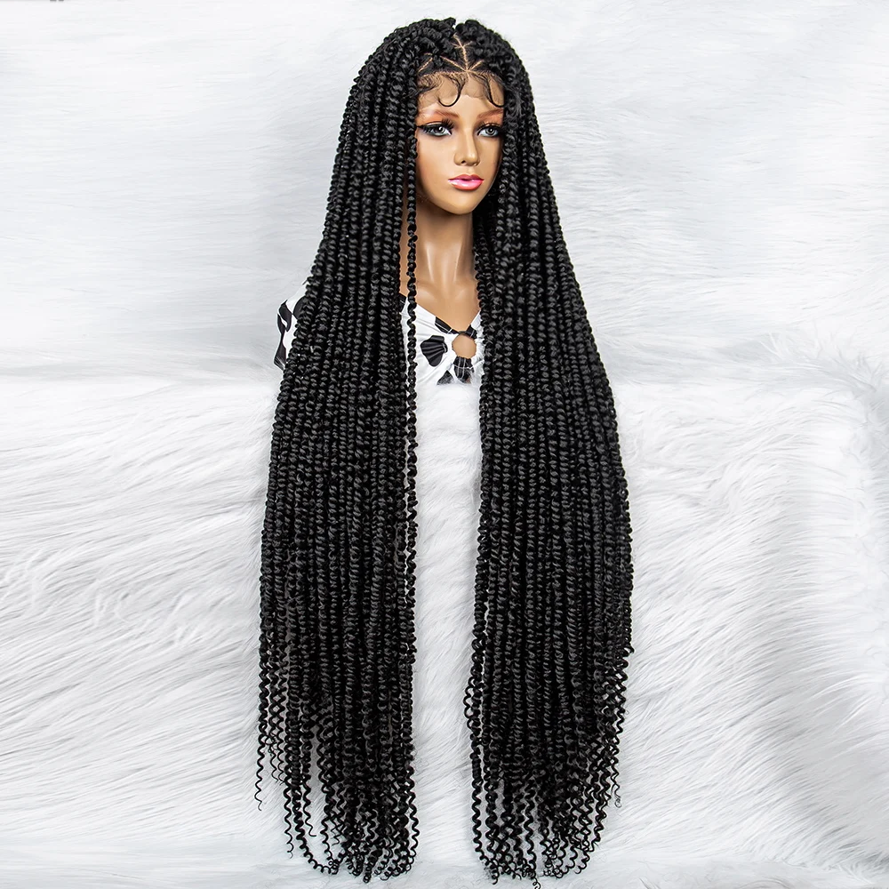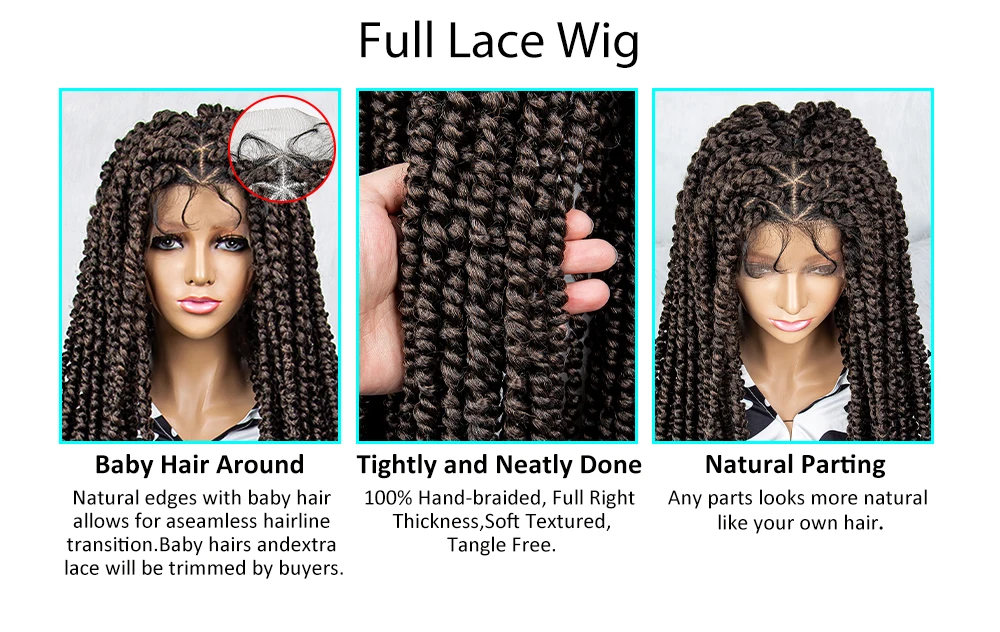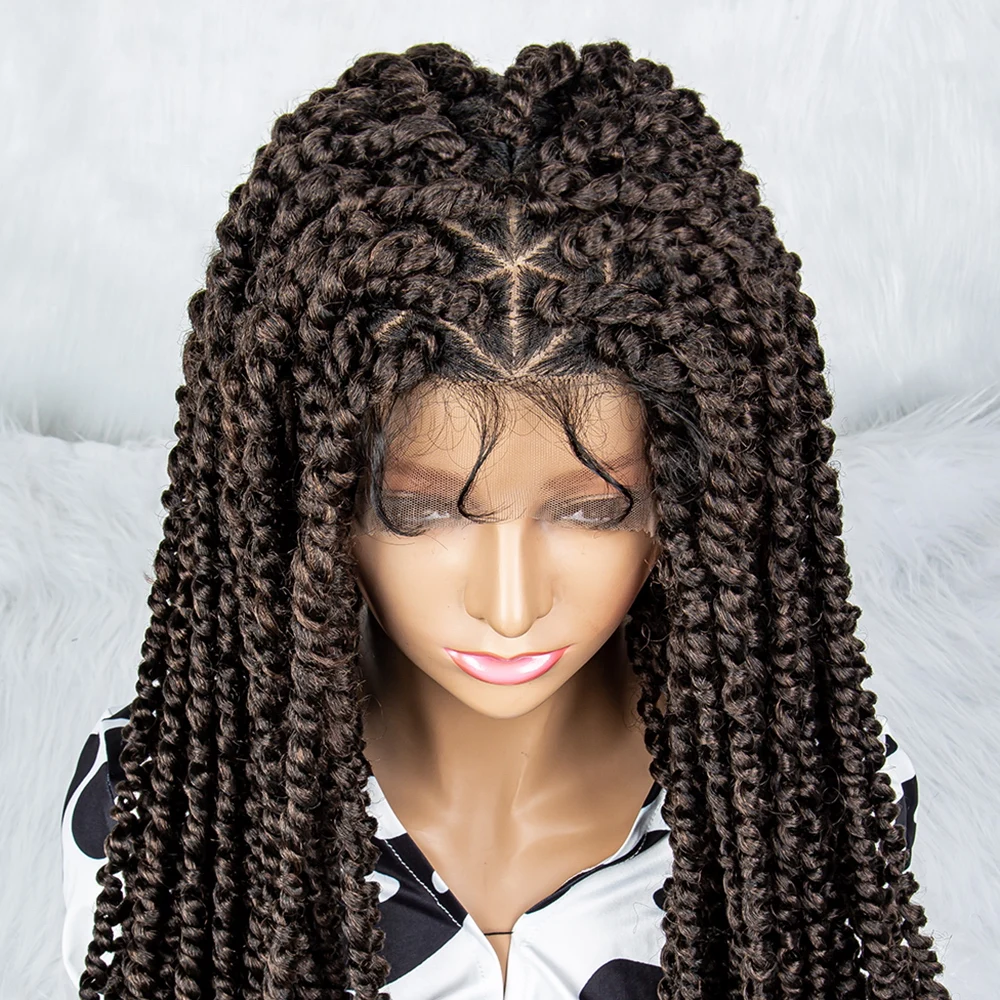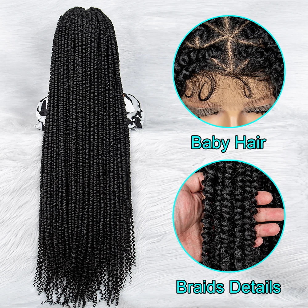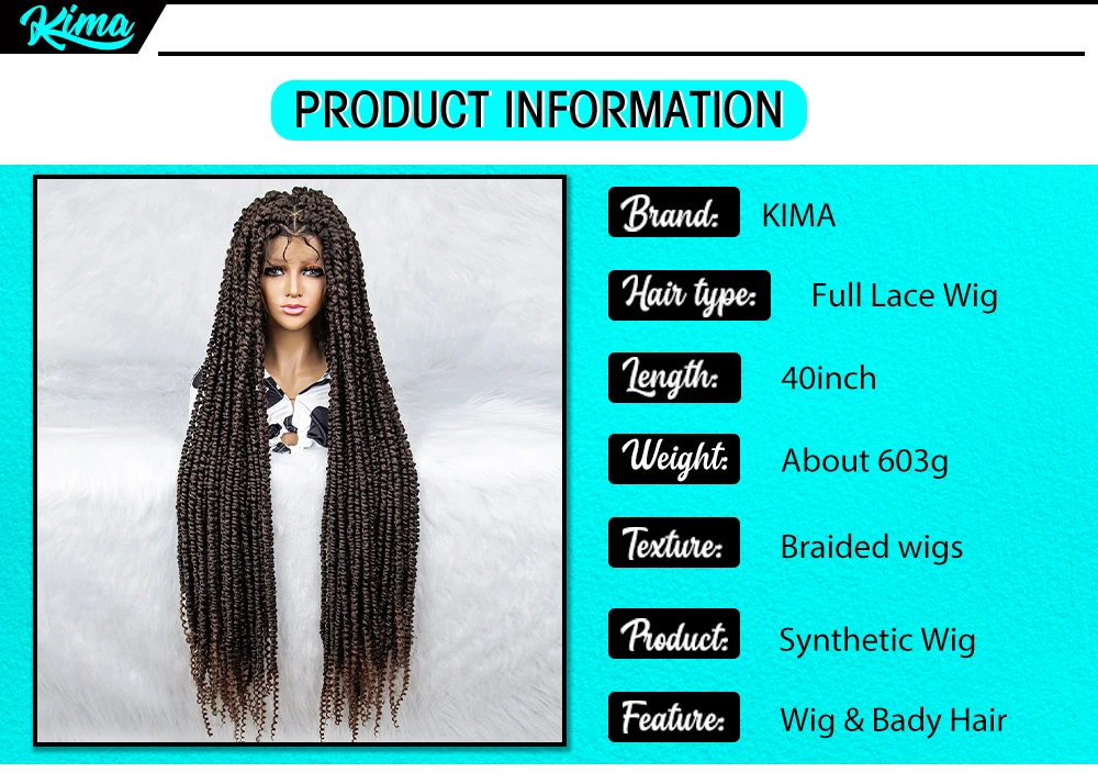 KIMA Full Lace Knotless Box Braided Wigs Faus Locs Wig Synthetic Lace Front Wigs Braids with Baby Hair Handmade Braided Wigs 40"