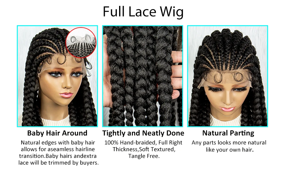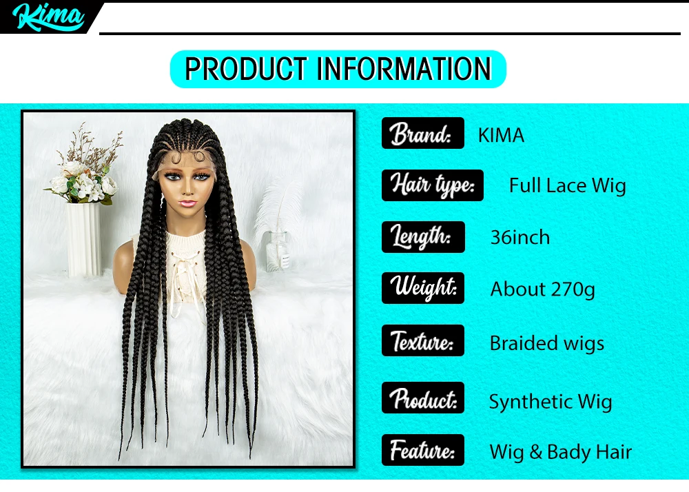 KIMA Lightweight Full Lace Braided Wigs Synthetic Lace Front Wig Braid African Braided Wigs With Baby Hair Faux Locs Wigs