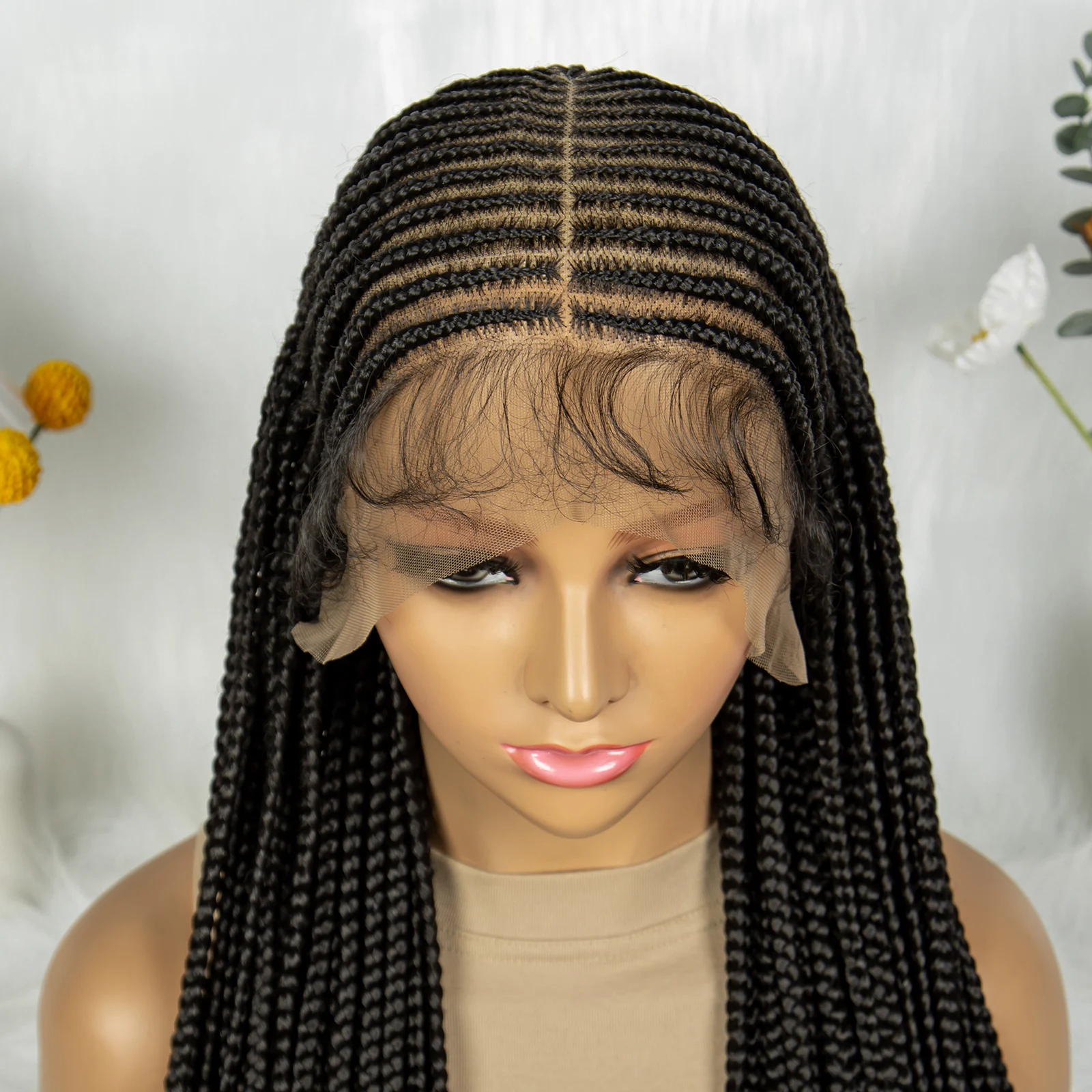 KIMA Synthetic 36 inch Cornrow Braided Wigs Transparent Full Lace Wig Fulani Stitch Box Braids With Baby Hair for Black Women