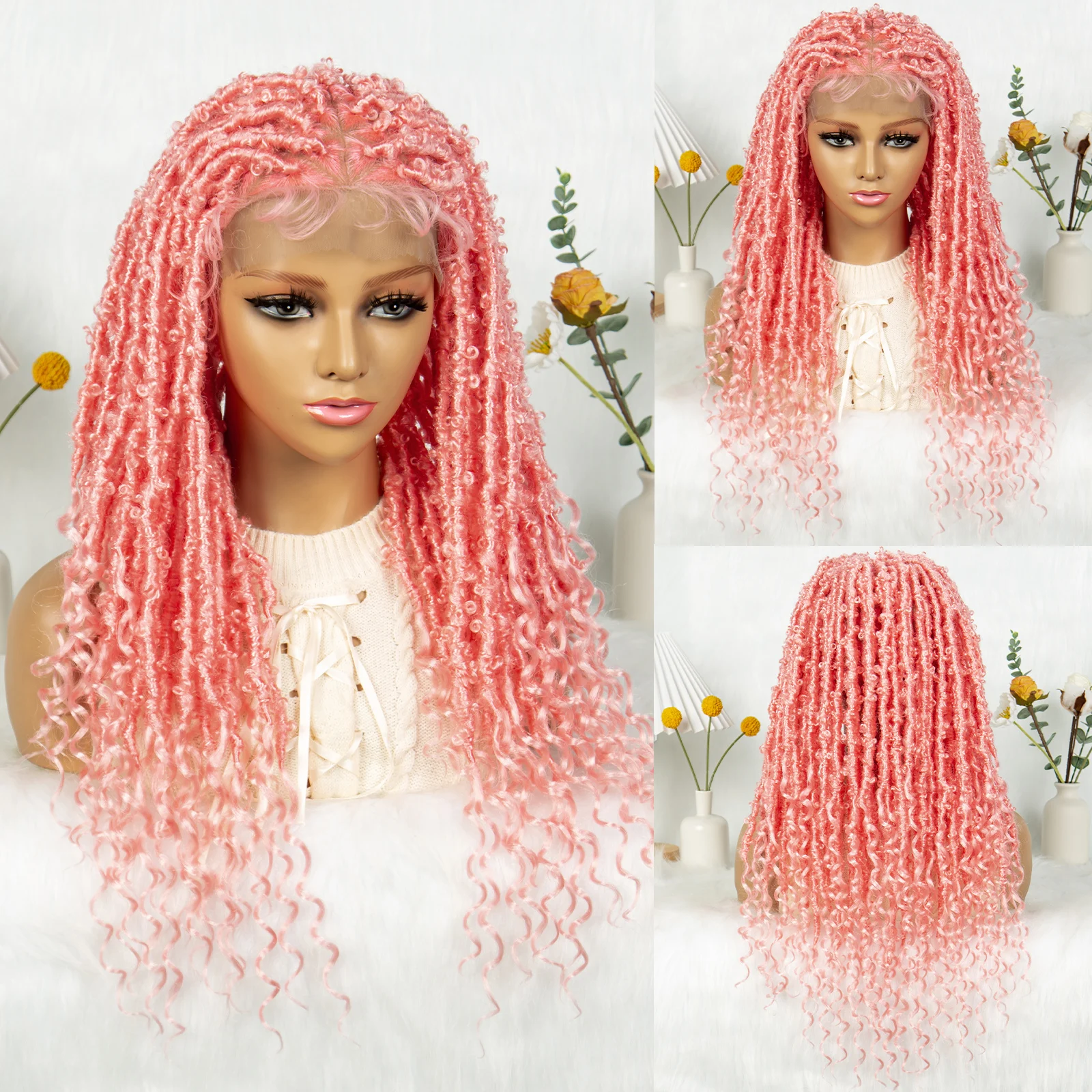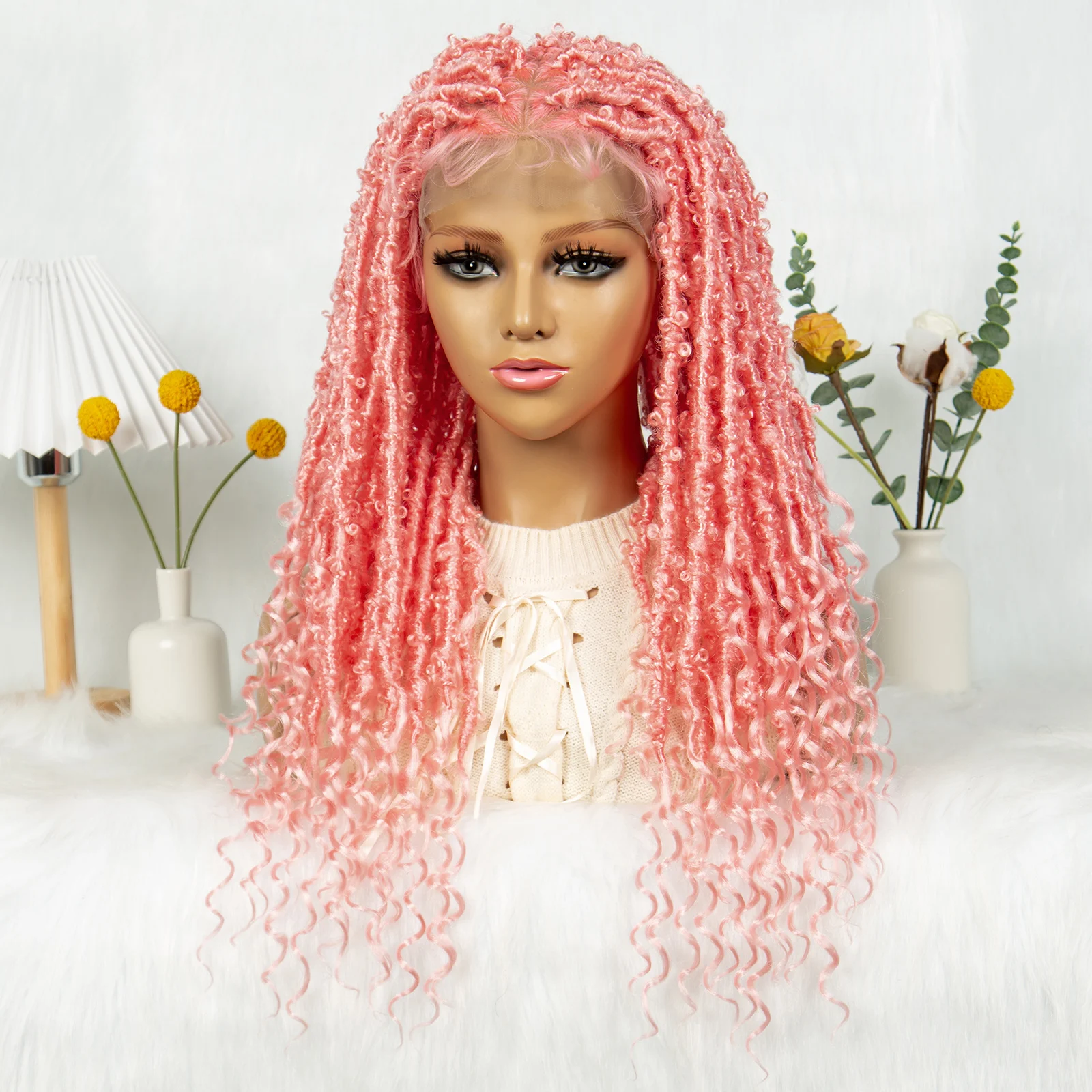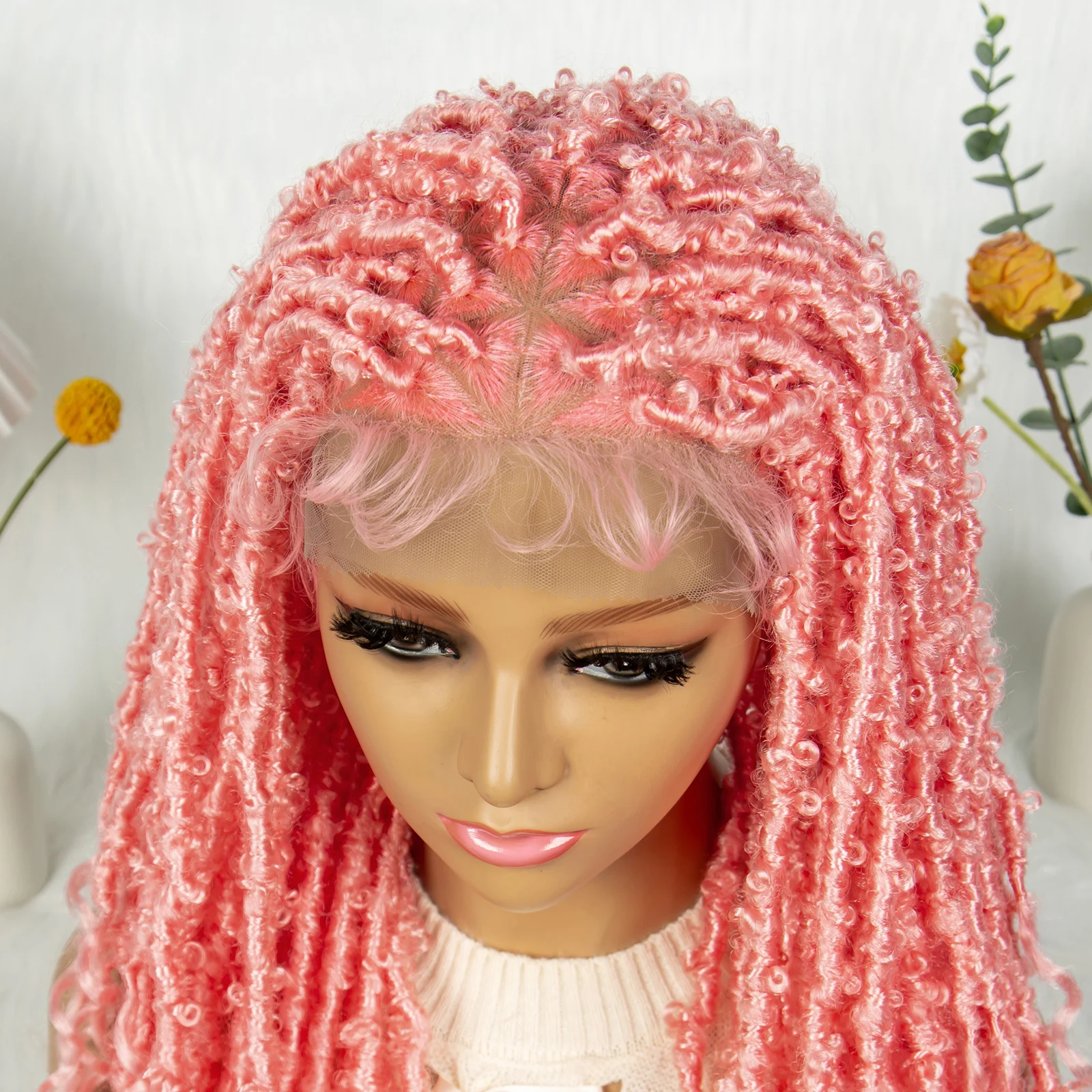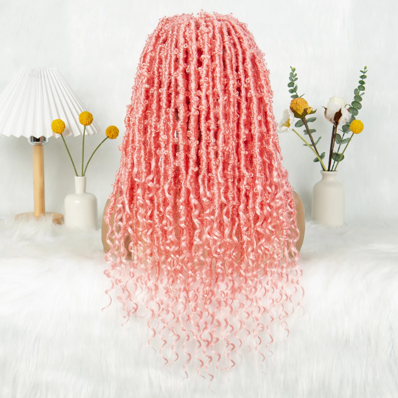 KIMA Synthetic Butterfly Twist Box Braided Wig Swiss Full Lace Wig Pink Locs Cosplay Wigs with Baby Hair for Black Women