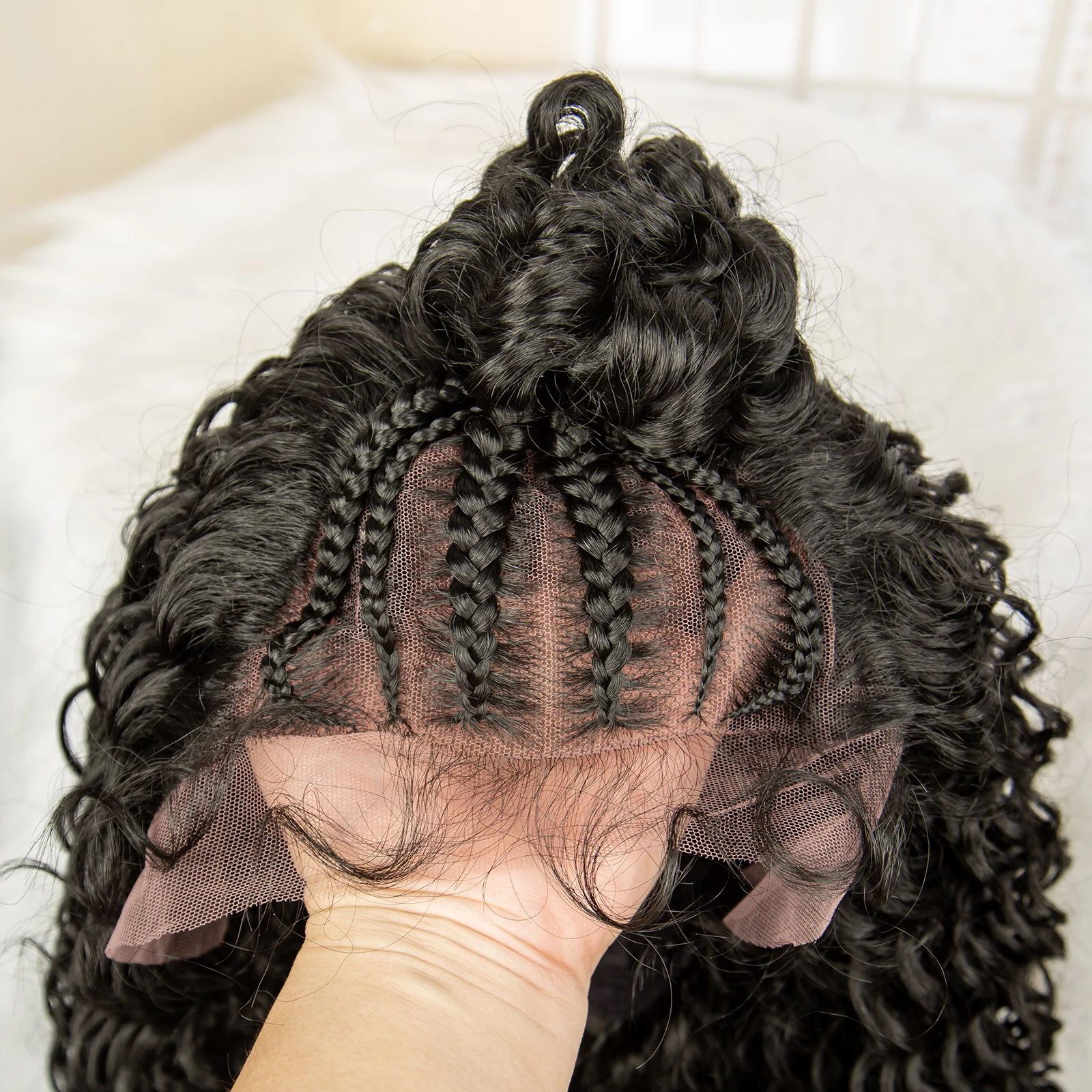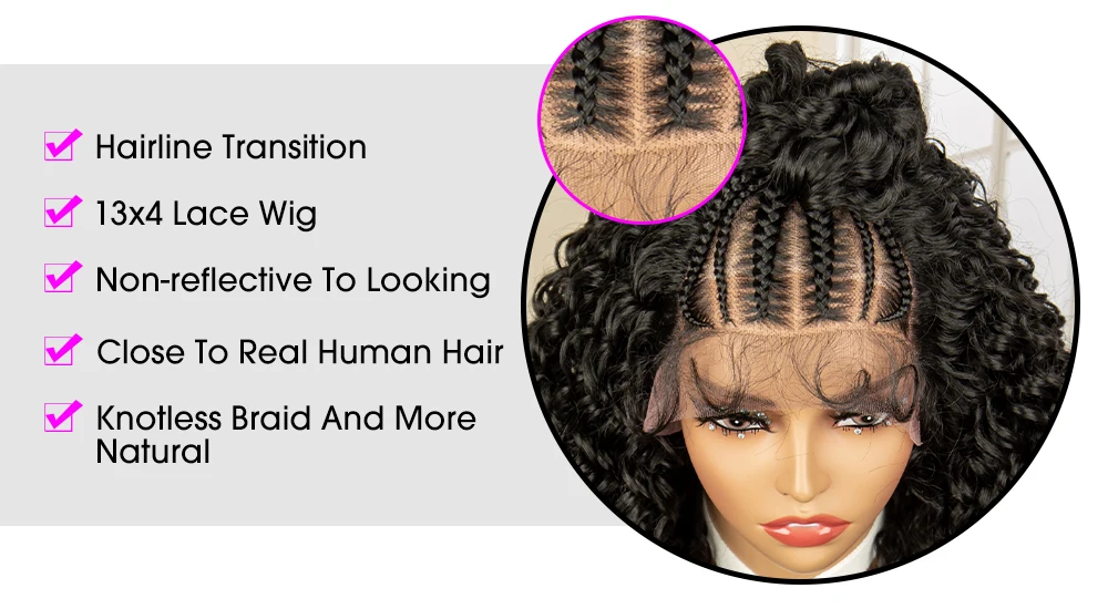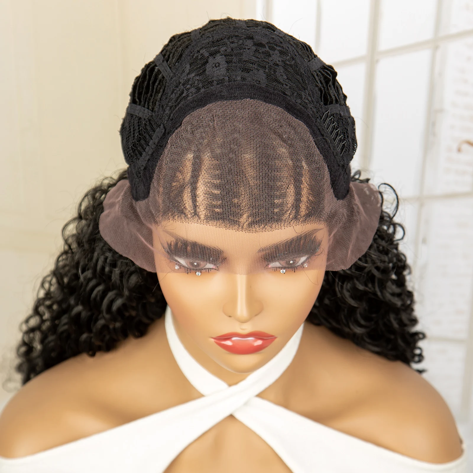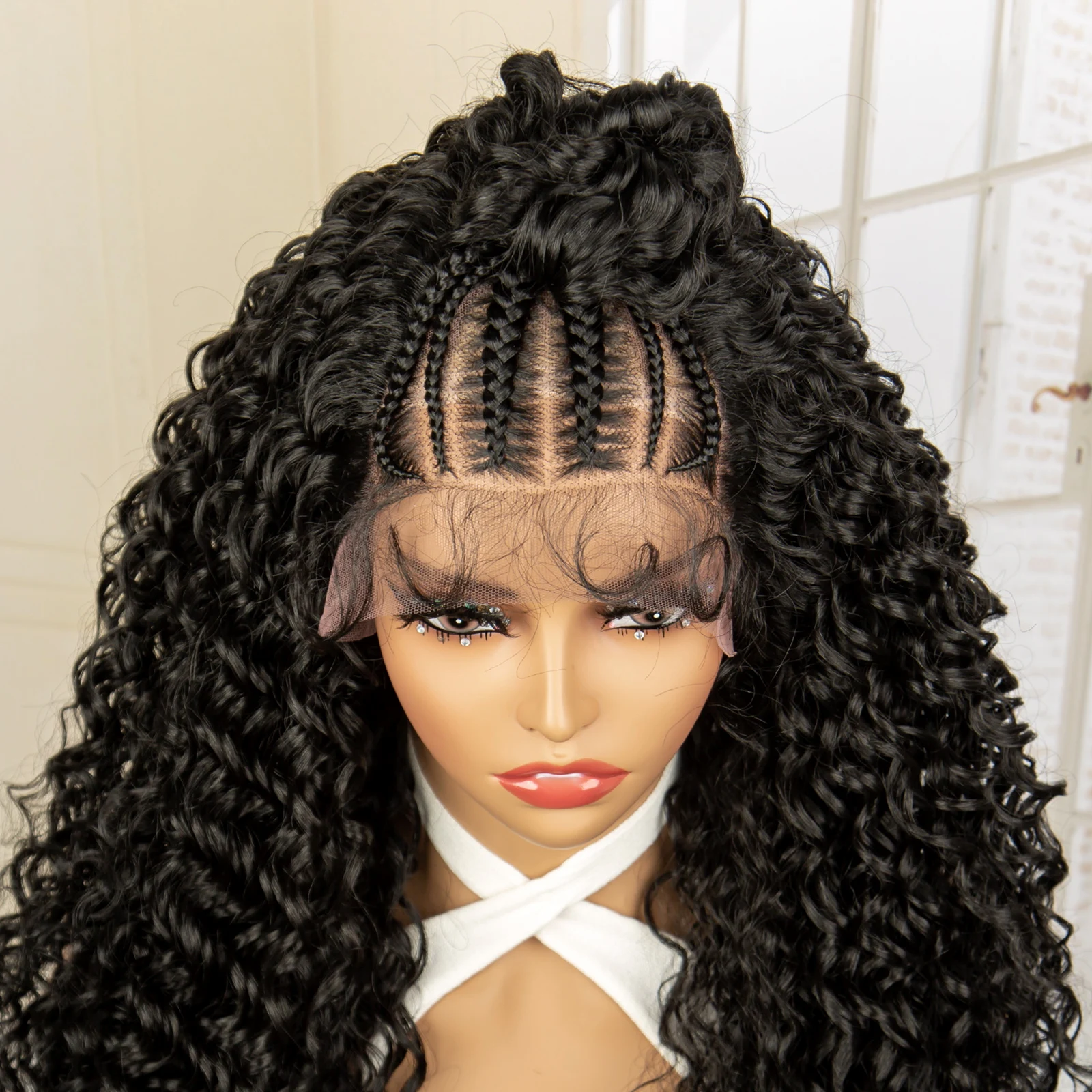 Kinky Curly Braided Wigs Synthetic Lace Front Wig Braided Wigs with Bun for Black Women Wig 24 Inch Hair Wigs Natural Daily Use