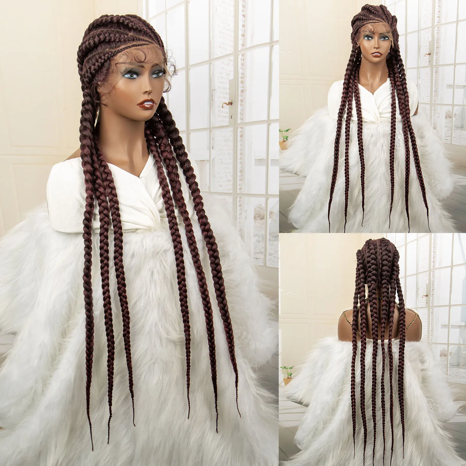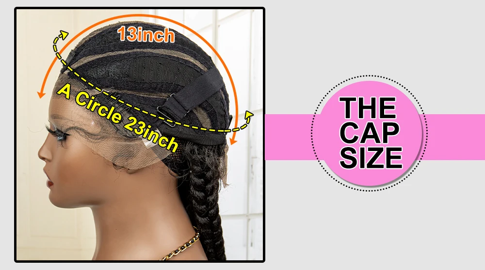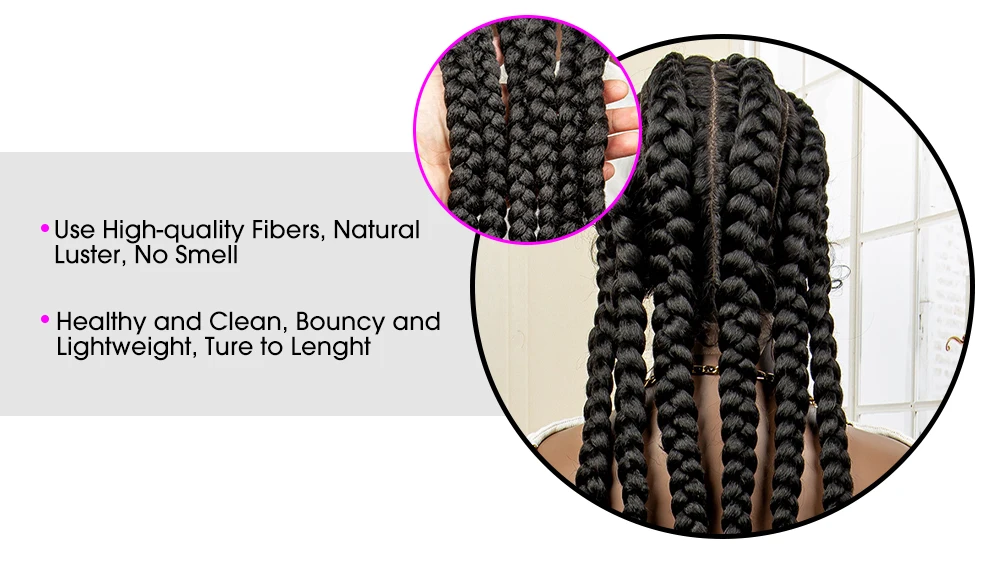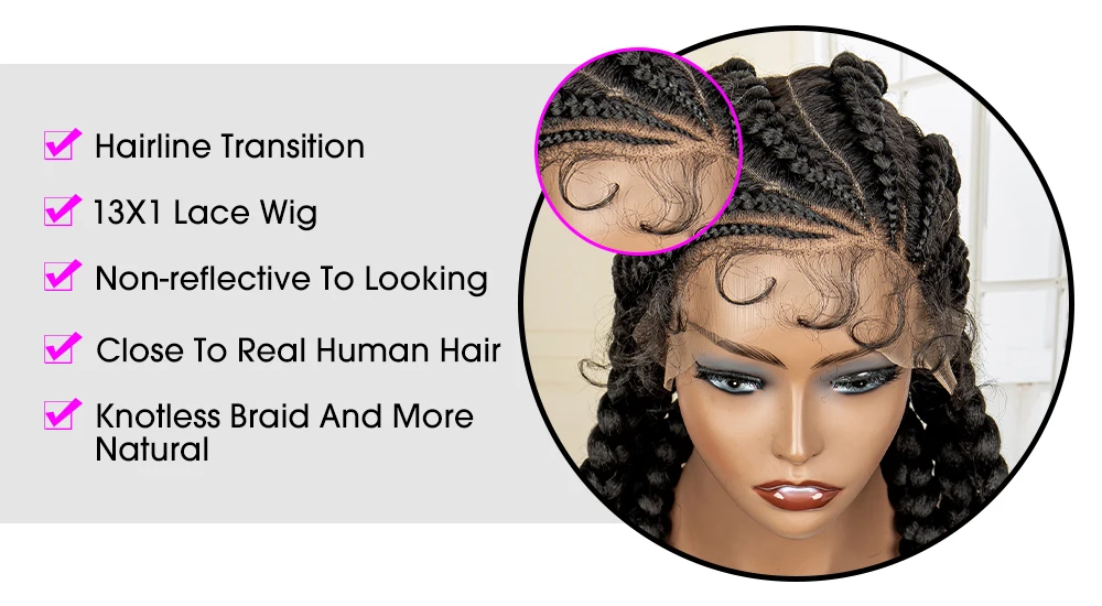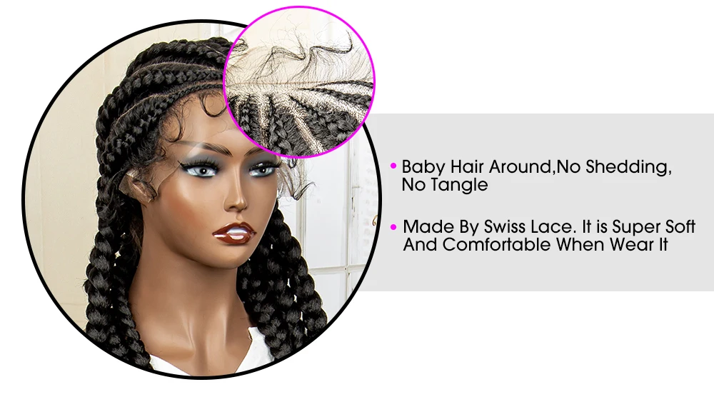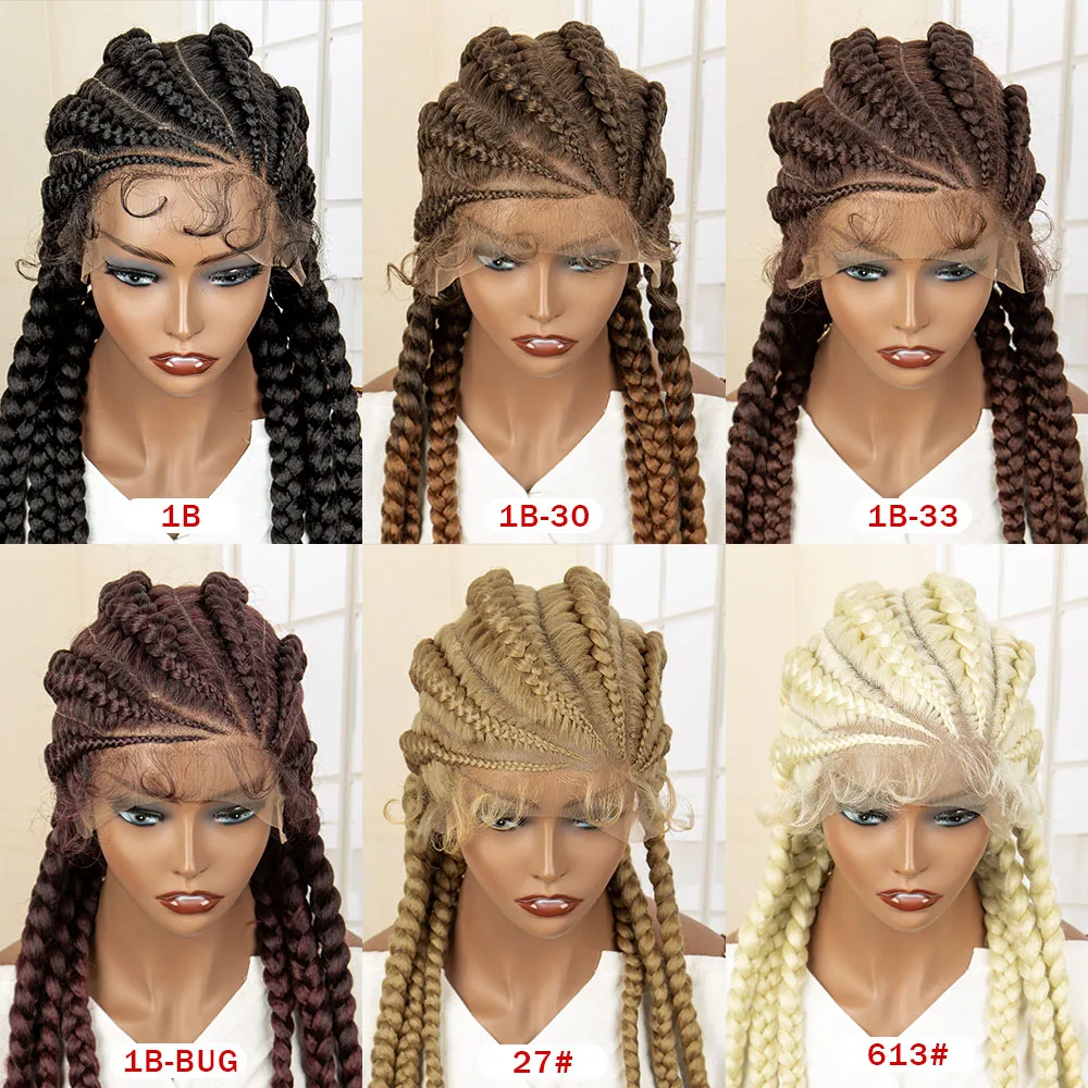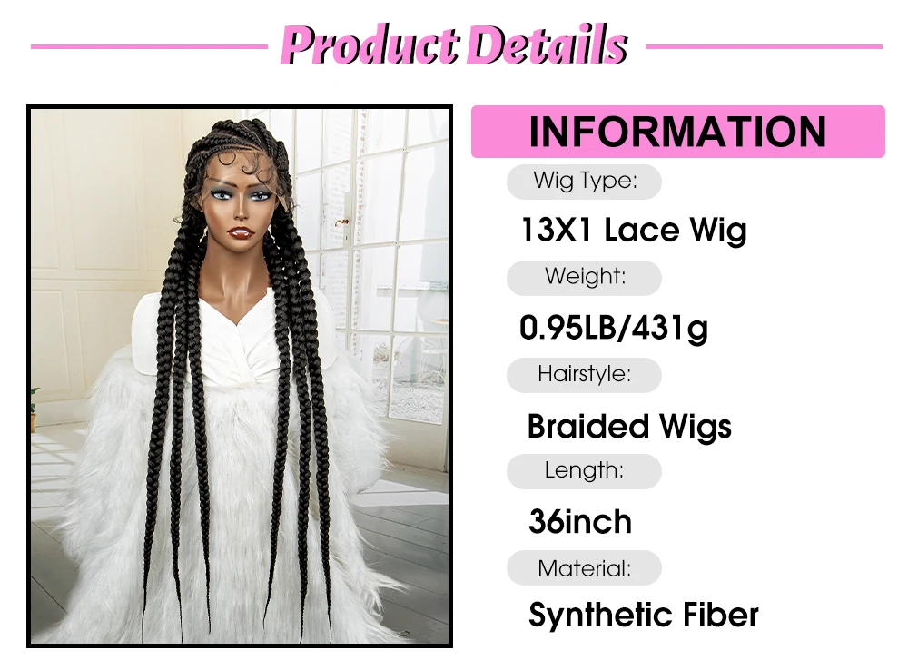 Knotless Box Braided Wig 36 Inches African American Braiding Hair for Black Women Synthetic Lace Frontal Cornrow Braids Wig