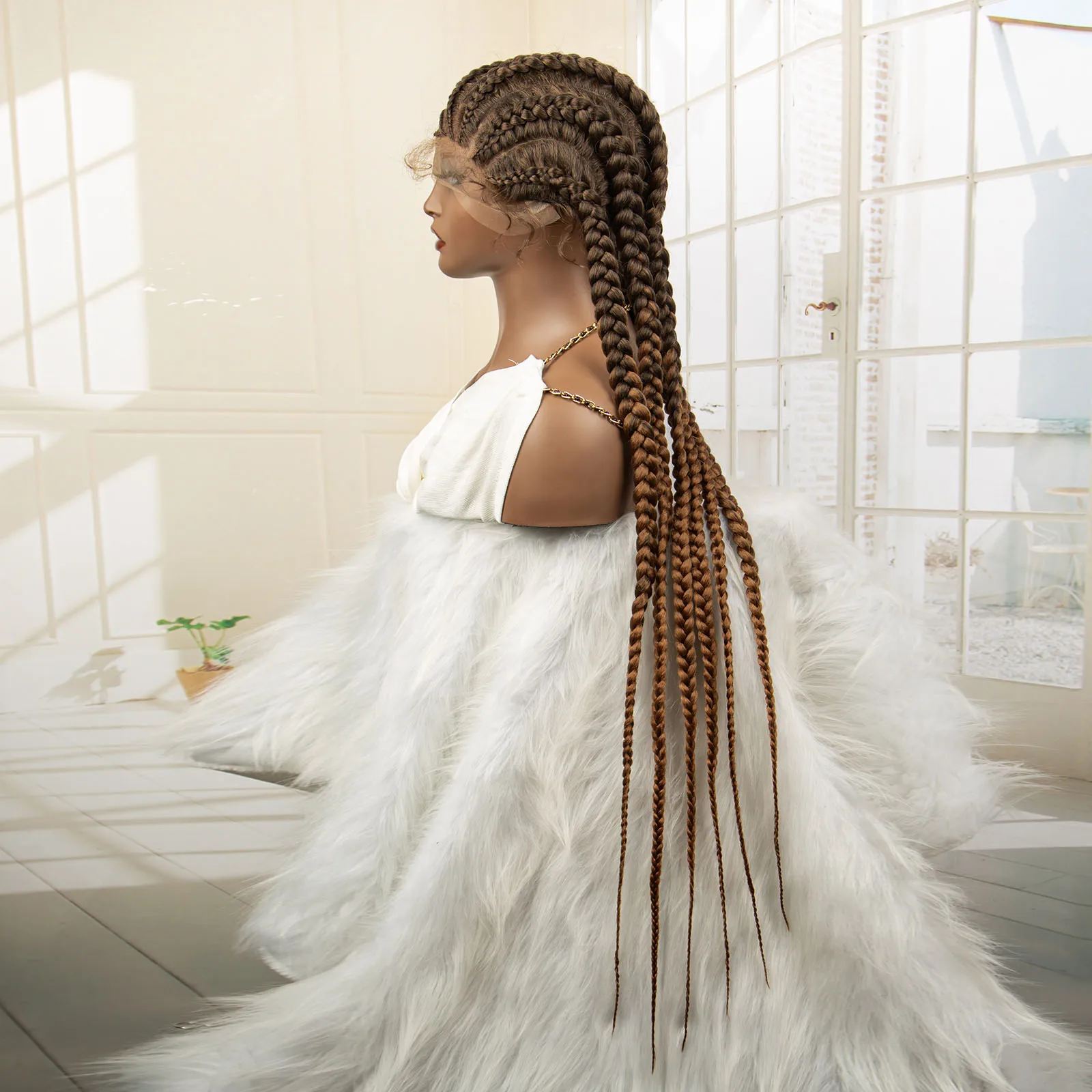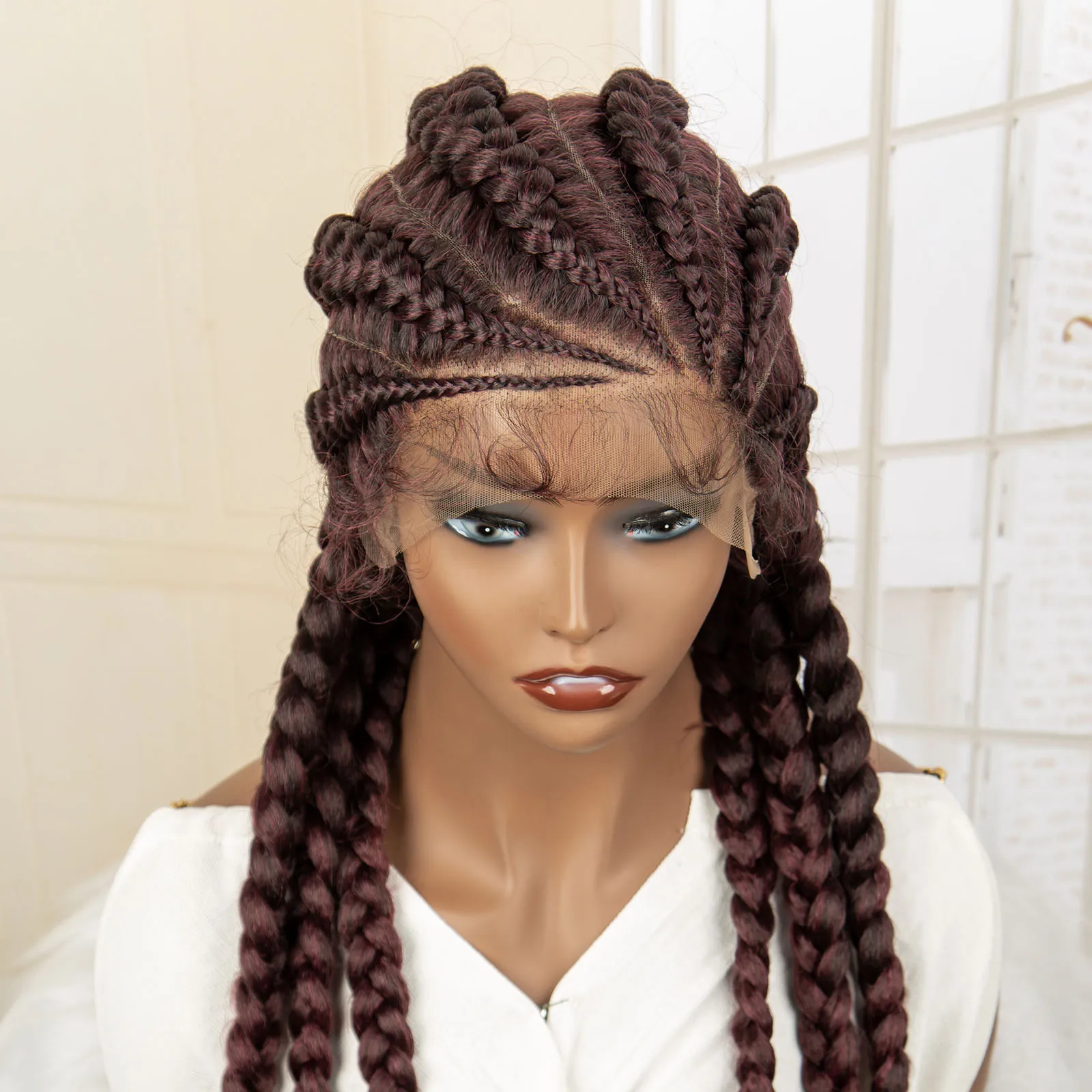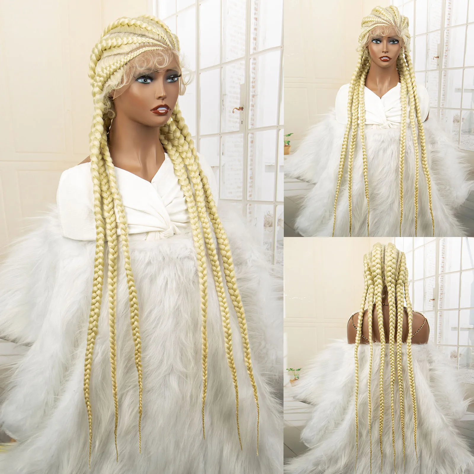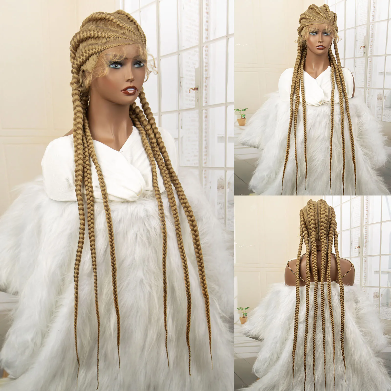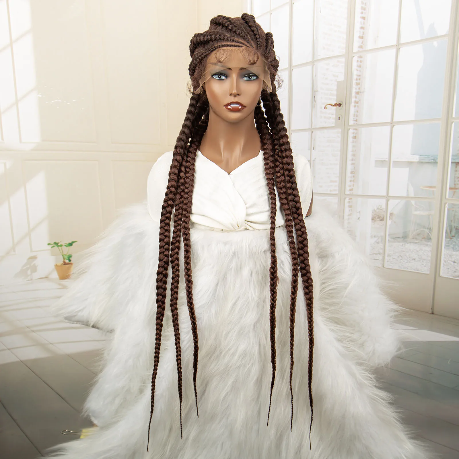 Knotless Box Braided Wig 36 Inches African American Braiding Hair for Black Women Synthetic Lace Frontal Cornrow Braids Wig