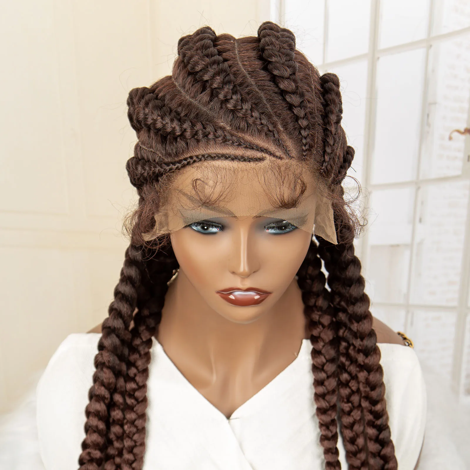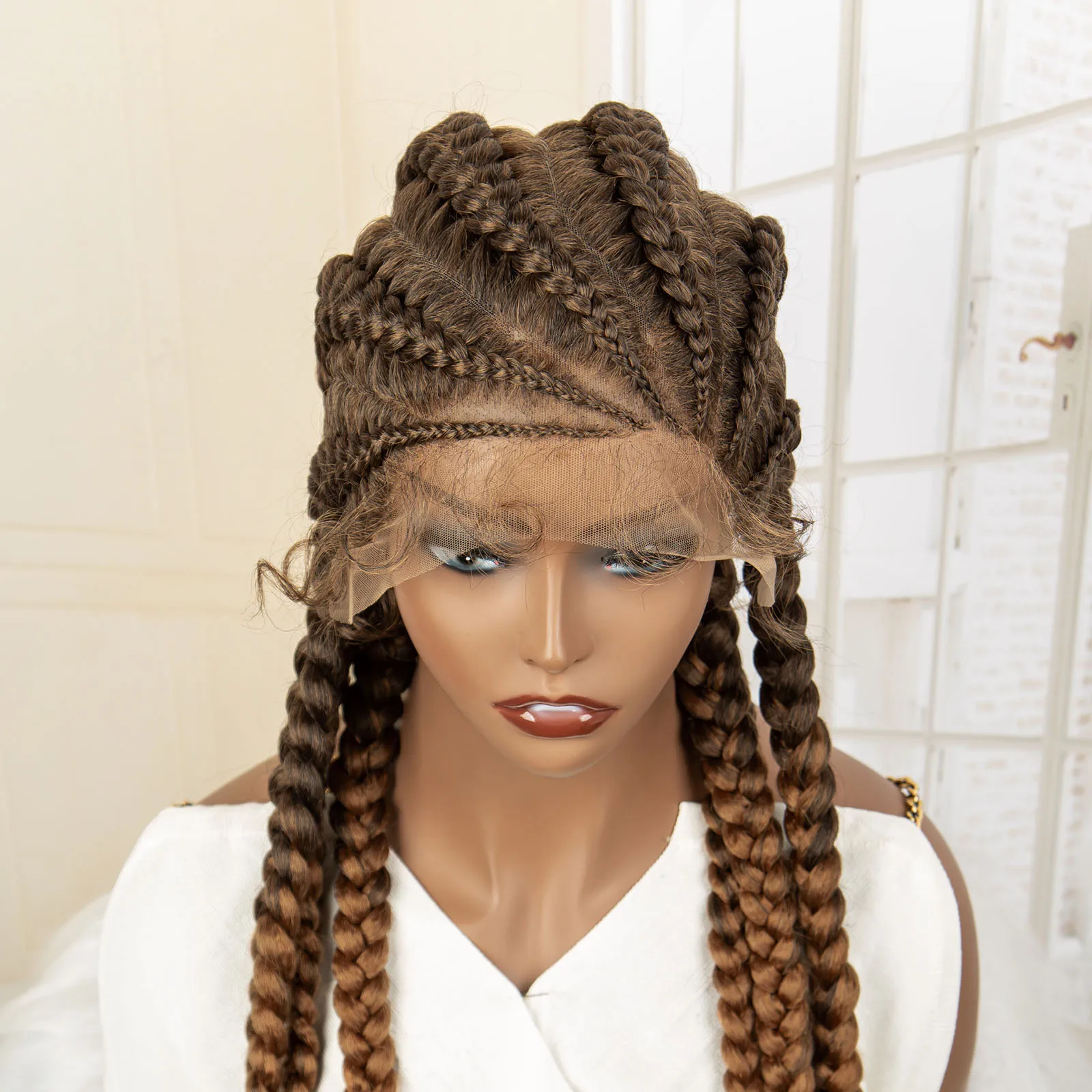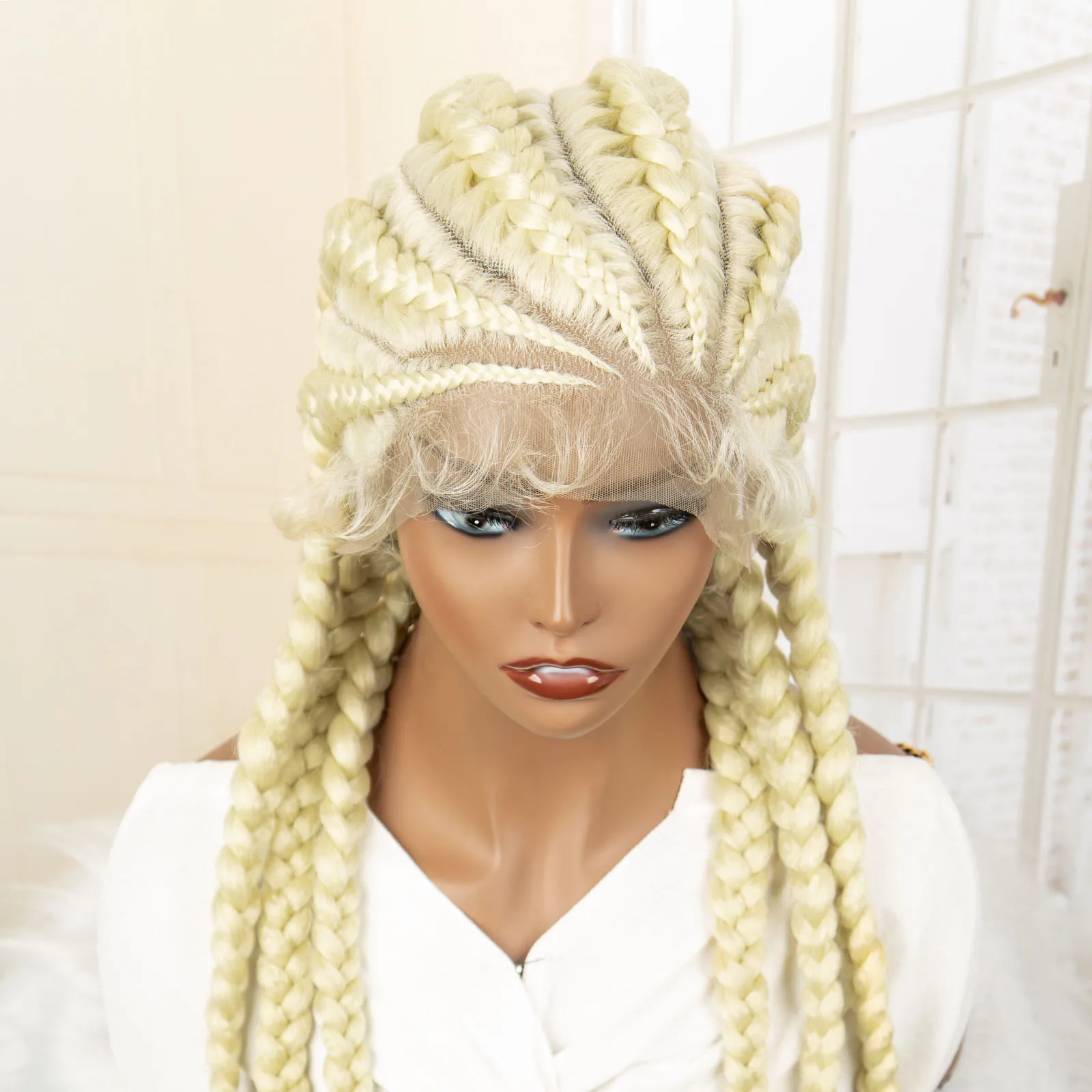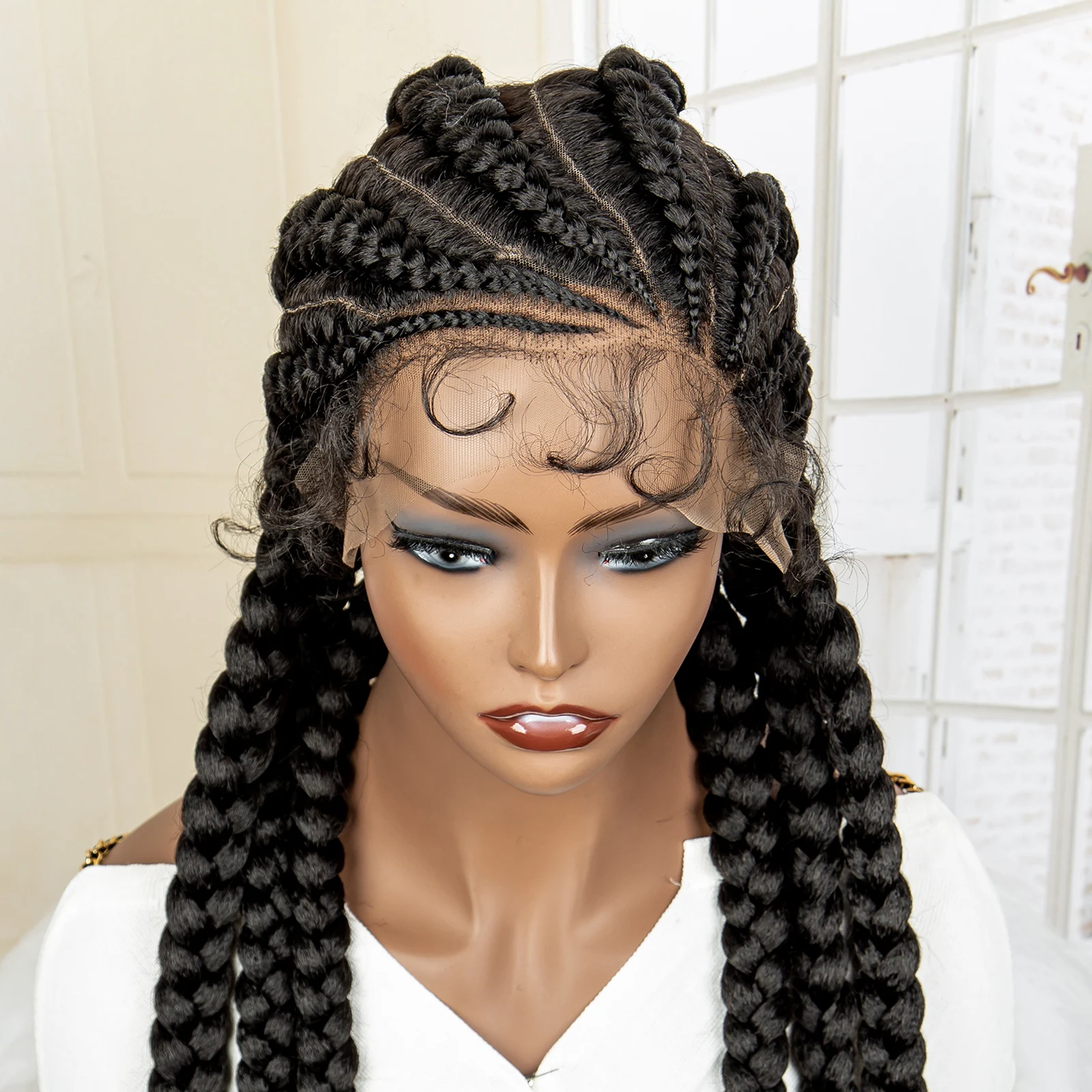 Knotless Box Braided Wig 36 Inches African American Braiding Hair for Black Women Synthetic Lace Frontal Cornrow Braids Wig