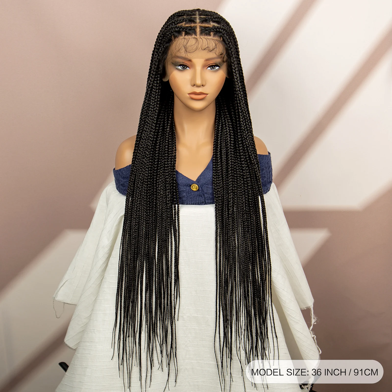 Knotless Box Braided Wigs 36 Inches Synthetic Full Lace Braids Wig for Black Women Straight Braiding Hair Wigs With Baby Hair