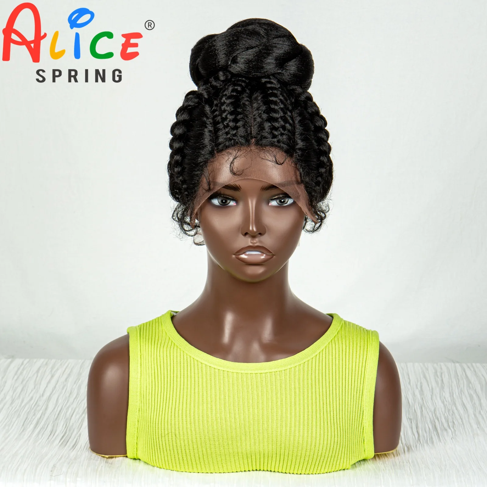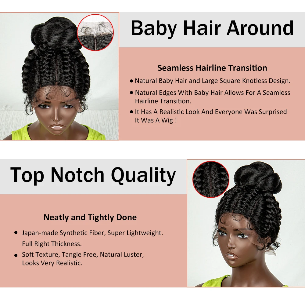 Knotless Box Lace Front Wigs Synthetic Bun Updo Braided Wigs for Women Cornrow Ponytail Lace Braiding Hair Wig with Baby Hair