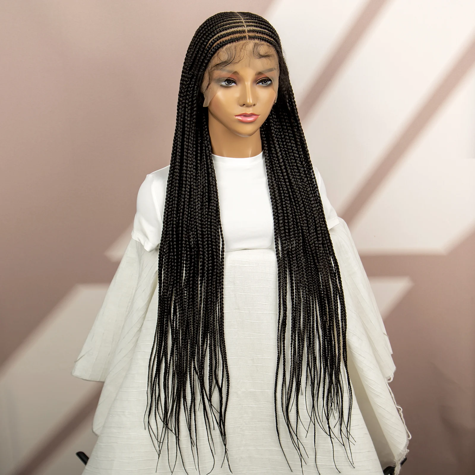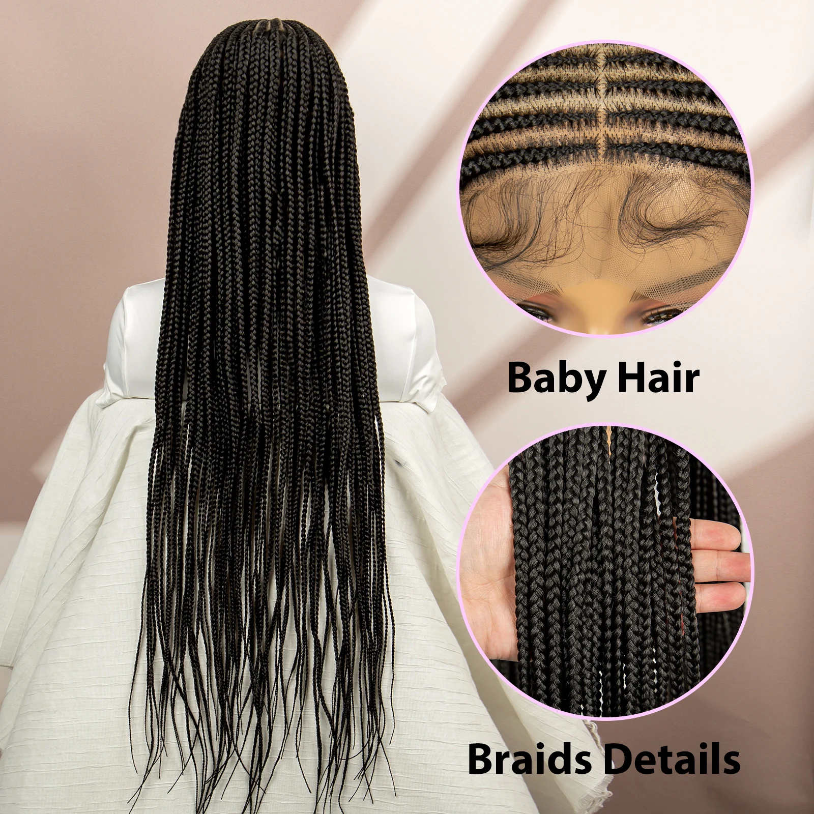 Knotless Cornrow Braided Wigs Synthetic Full Lace Braids Wig for Black Women Straight 36 Inch Braiding Hair Wigs With Baby Hair