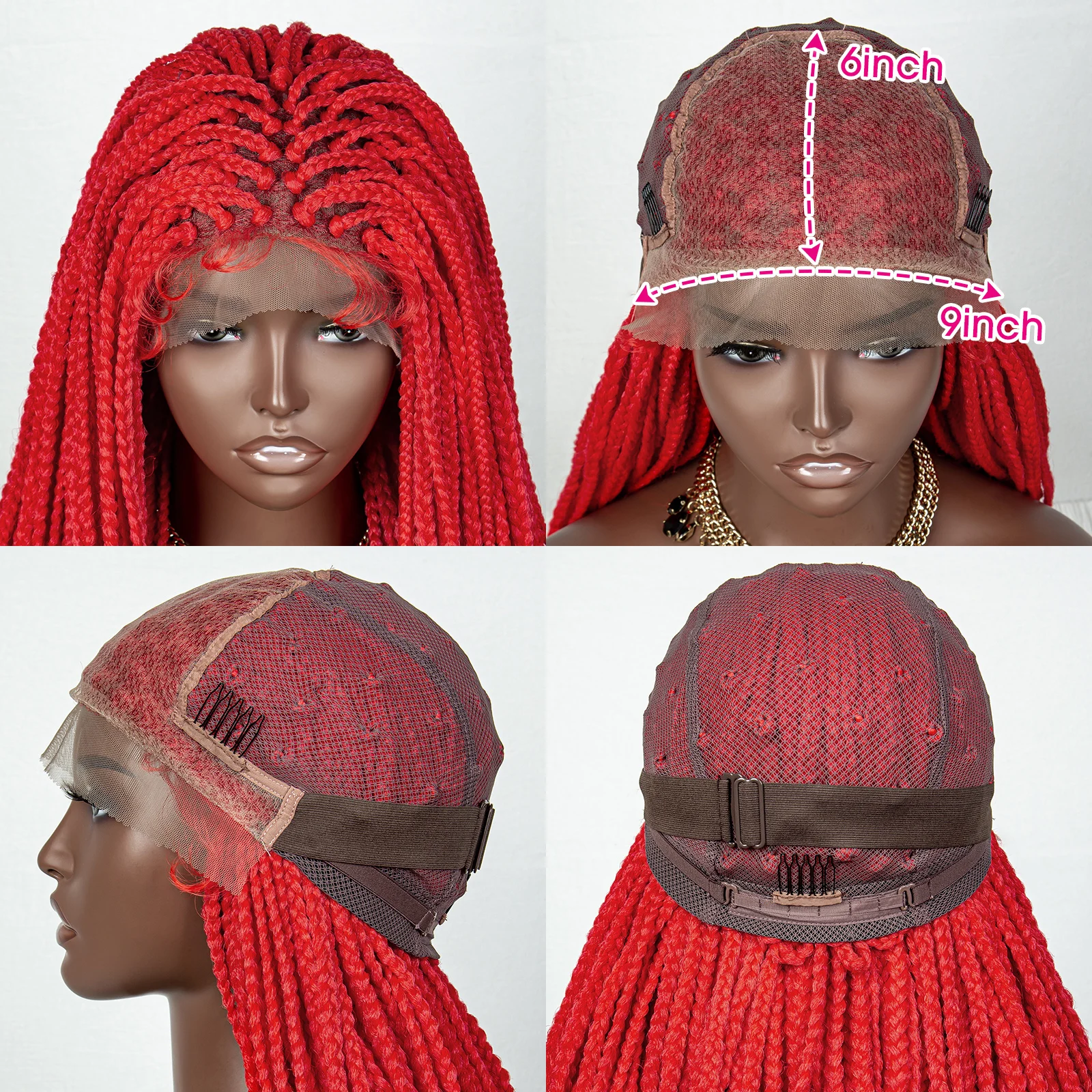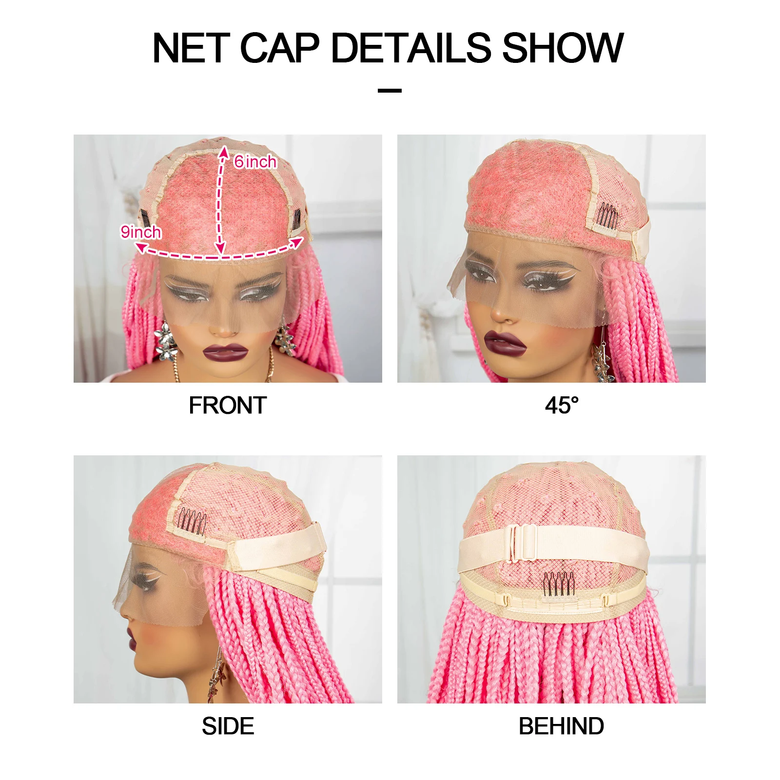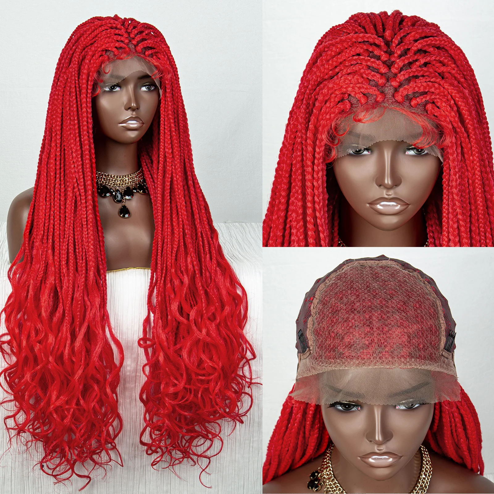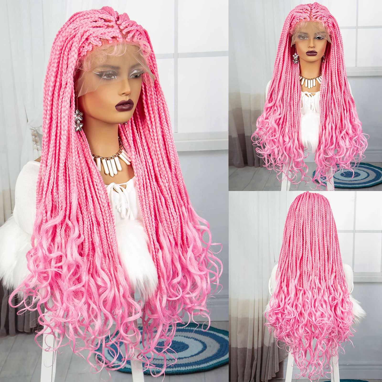 Lace Front Blue Synthetic Braided Wigs Baby Hair Box Braided Wigs for Black Women Pink Braids Wigs End Curly Brazilian Frontal