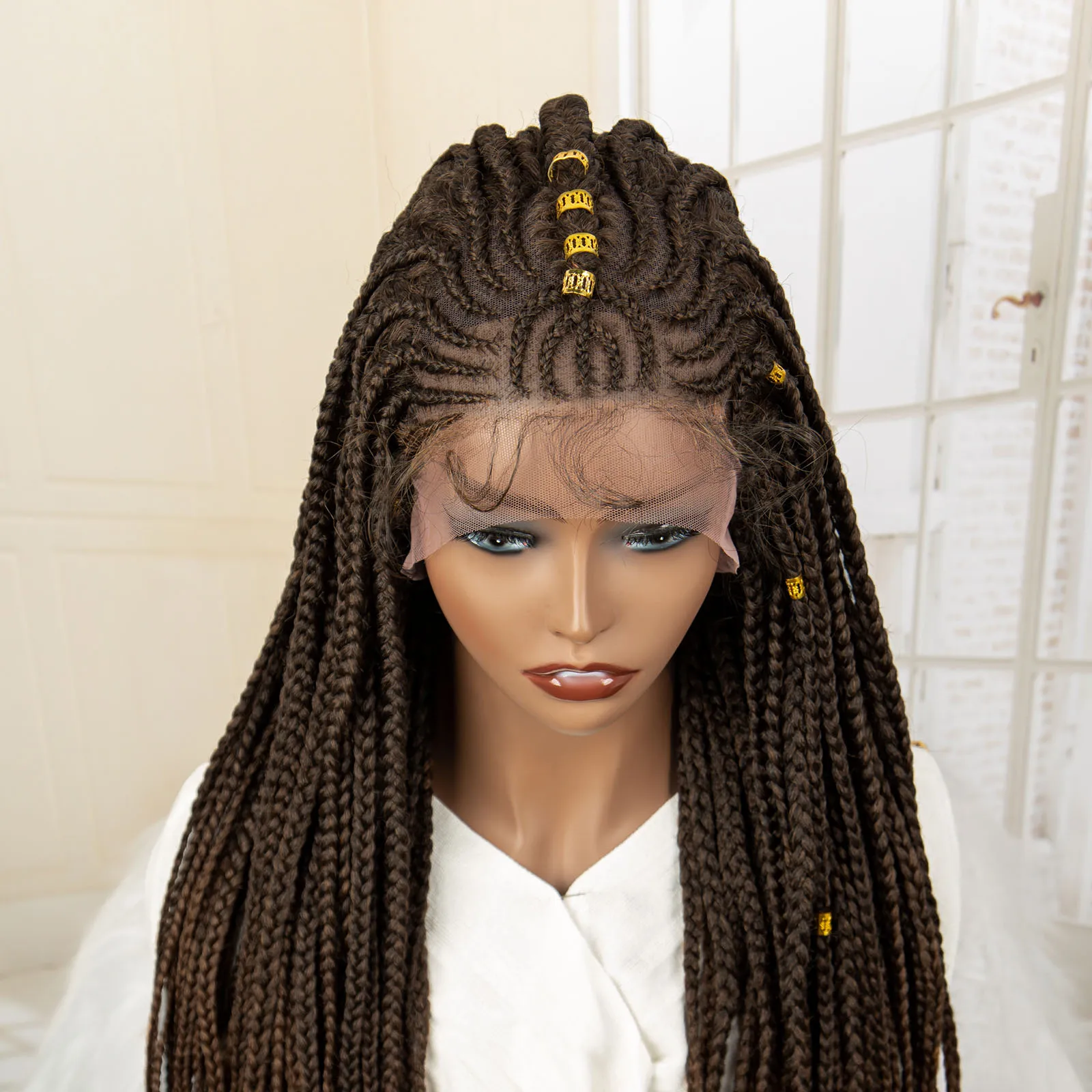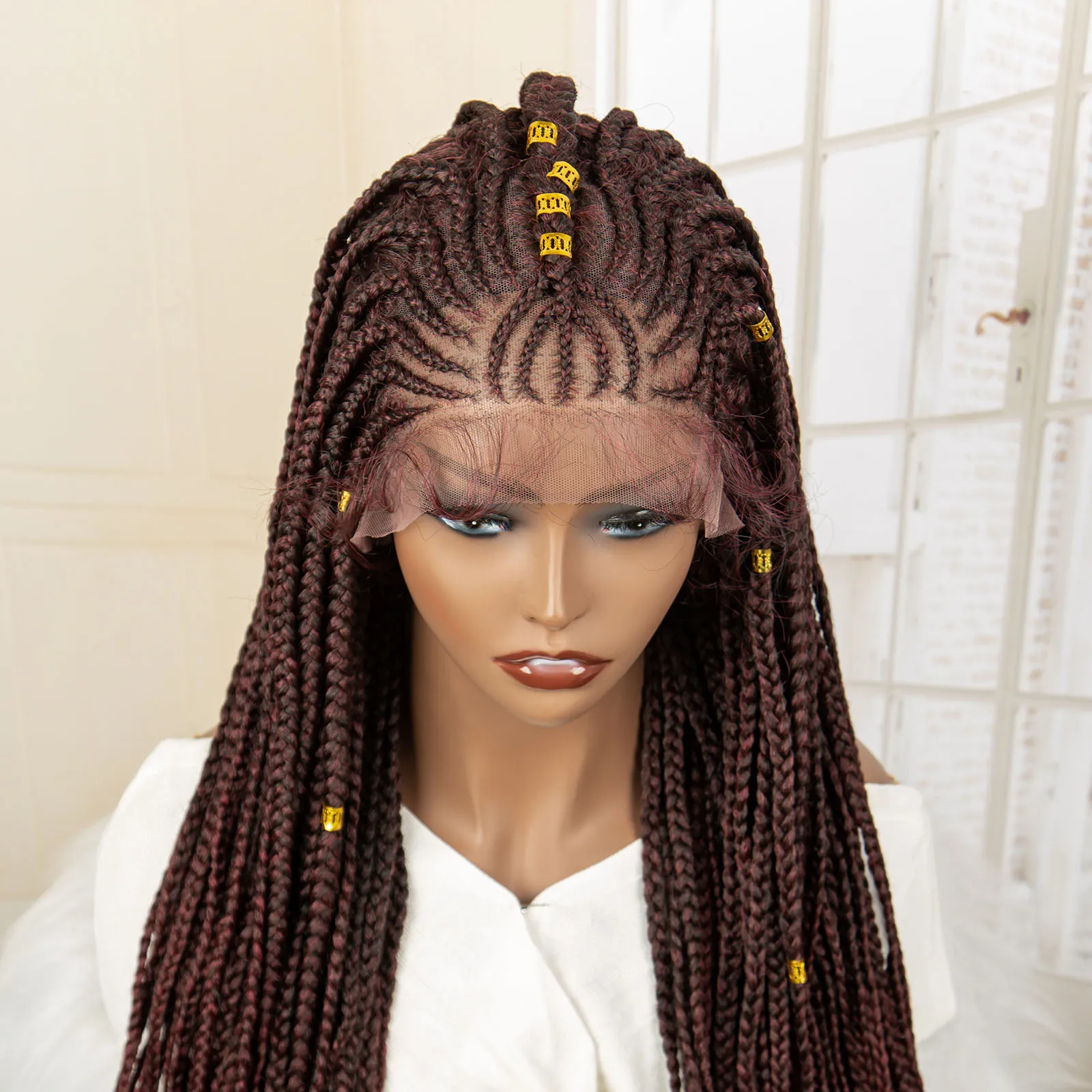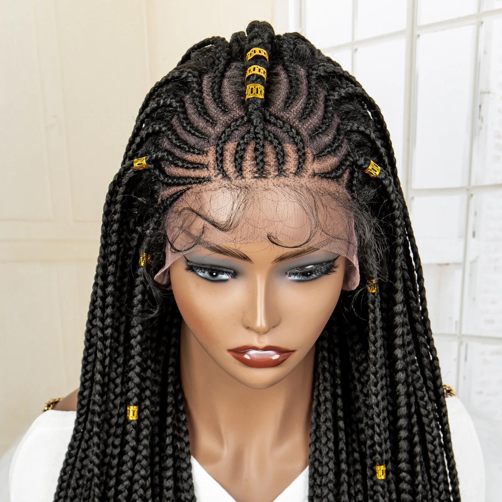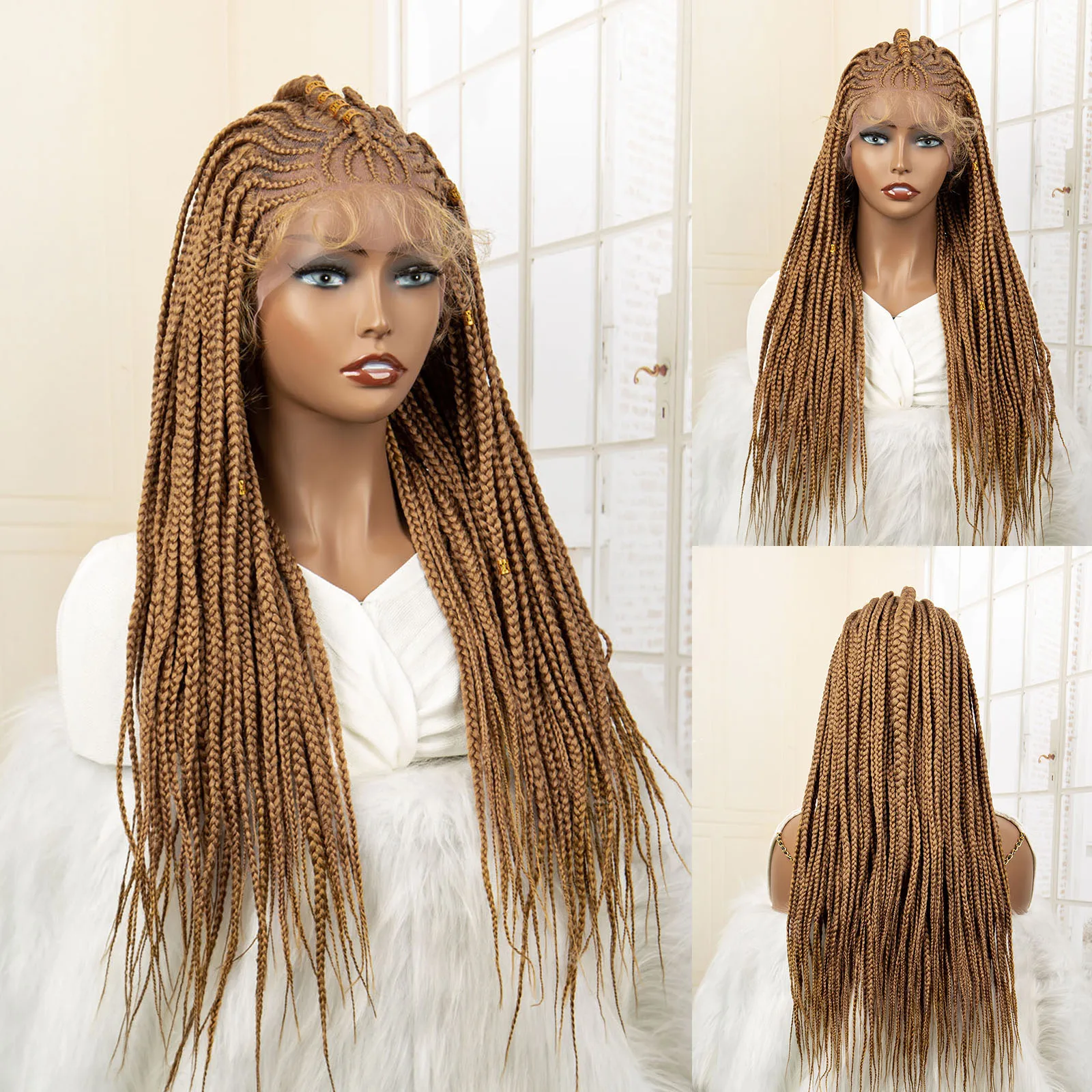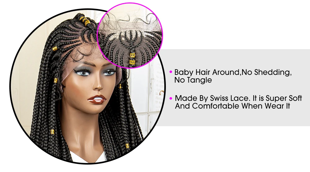 Lace Front Braided Wigs Cornrow Box Braided Wigs with Baby Hair Box Braids Wig for Women Lace Frontal Braiding Wigs