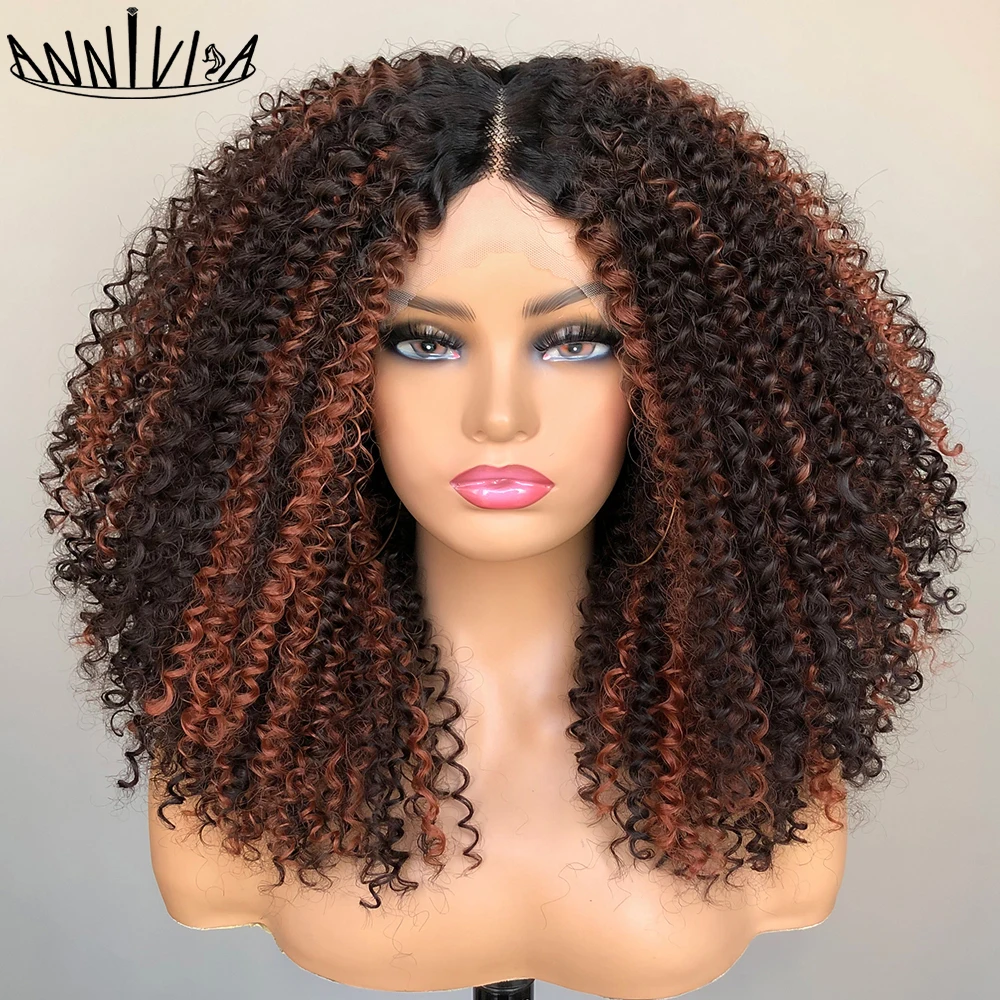 Lace Front Wig Afro Kinky Curly Wigs For Women Synthetic Hair Wig Preplucked Heat Resistant Fiber Hair Glueless Lace Frontal Wig