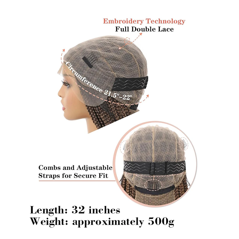 Lace Front Wigs for Women Synthetic 32 Inch Knotless Box Braid Wig With Baby Hair Black Hand Full double lace Braid Wig