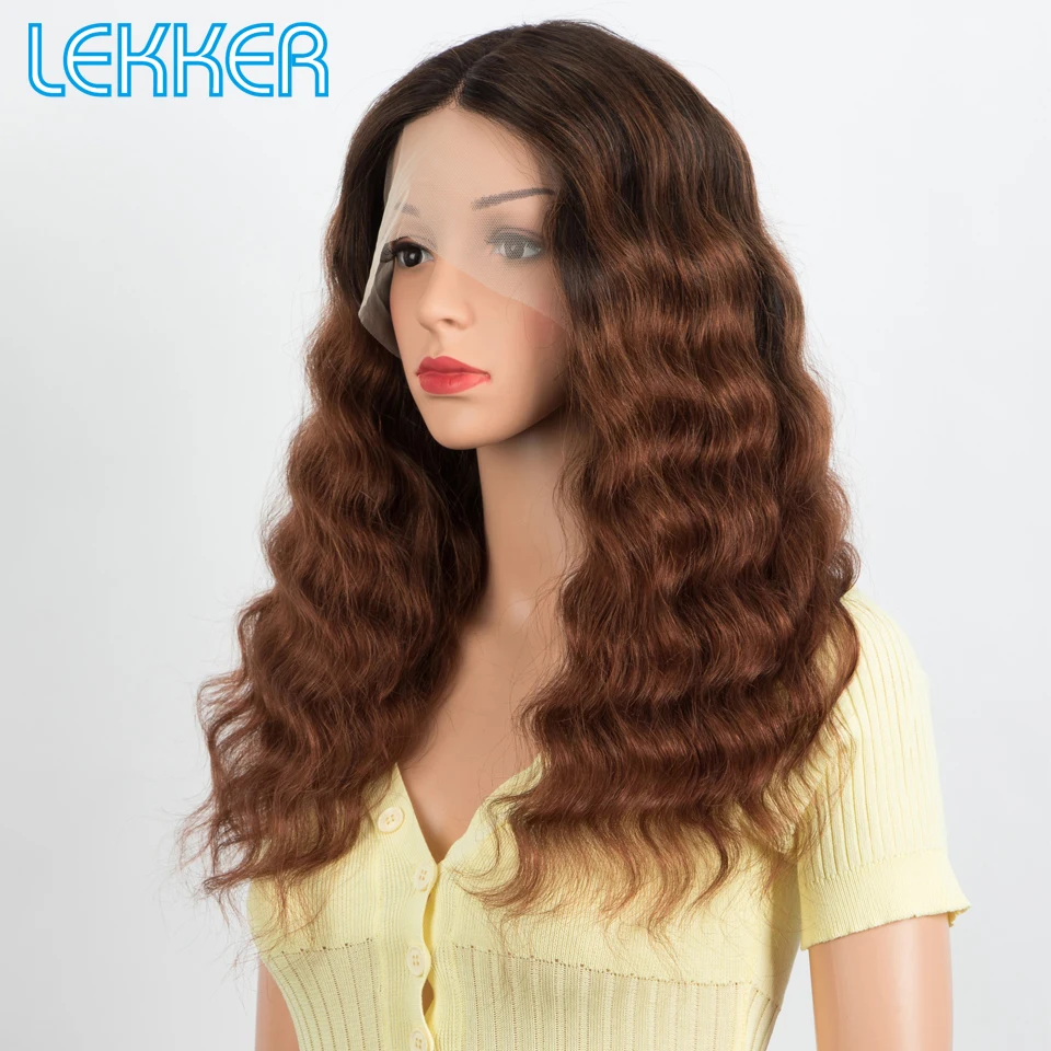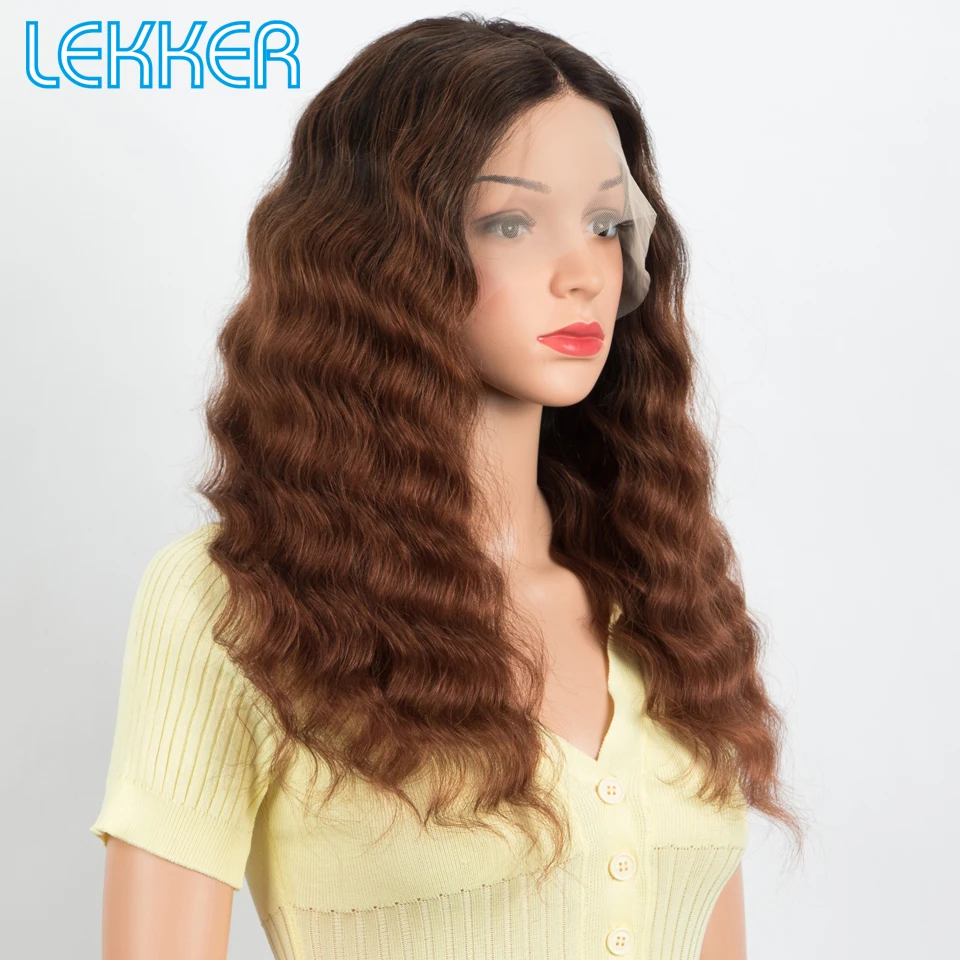 Lekker Ombre Brown Deep Wavy 13x6x1 Lace Front Human Hair Wigs For Women Glueless Brazilian Remy Hair 250% Body Wave Colored Wig