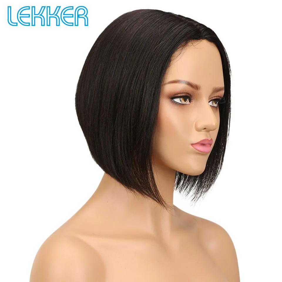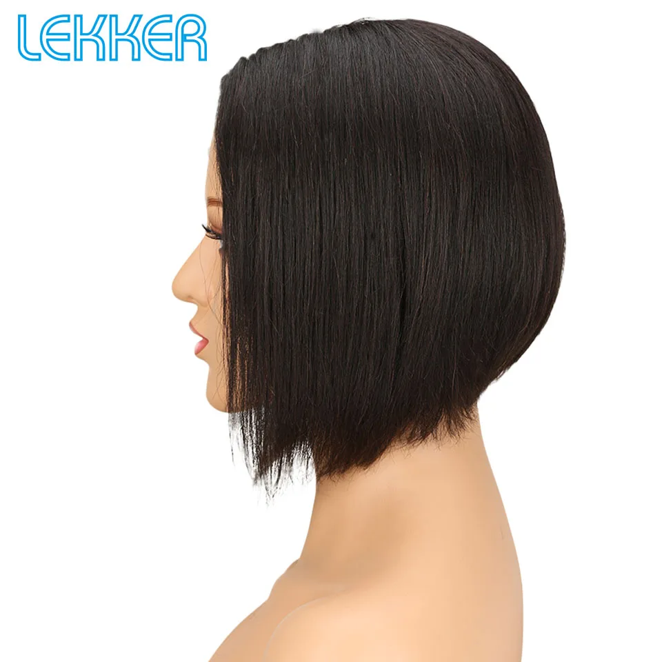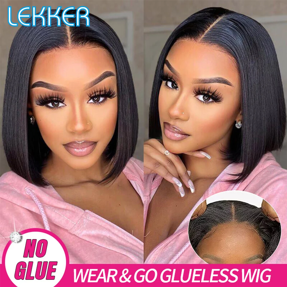 Lekker Wear and Go Short Straight Bob Human Hair Lace Wig For Women Brazilian Remy Hair Glueless Pixie Middle Part Lace Easy Wig