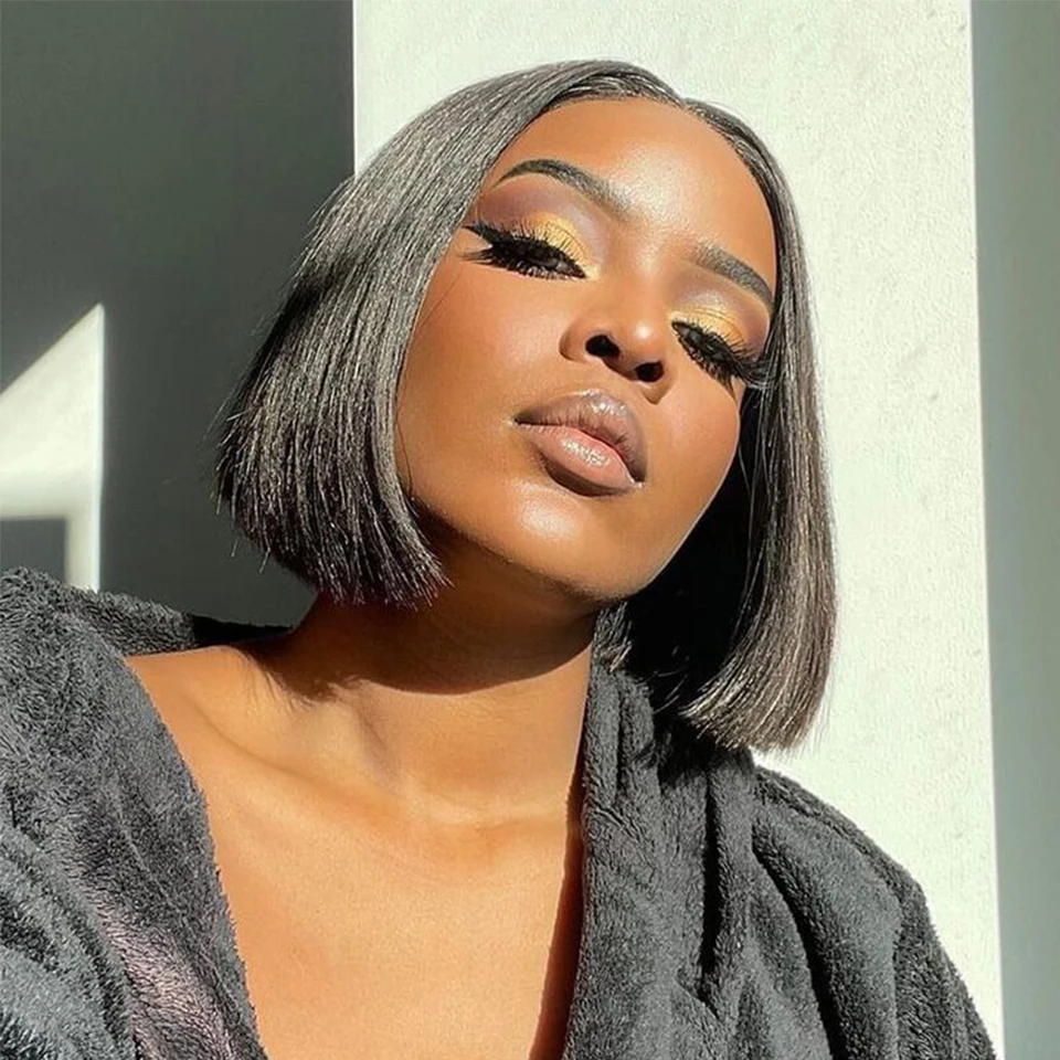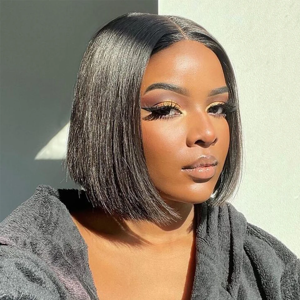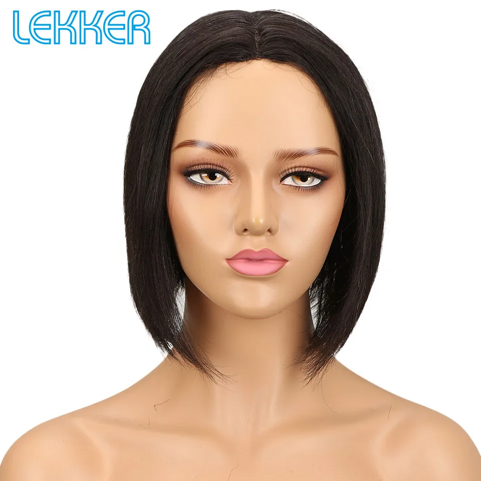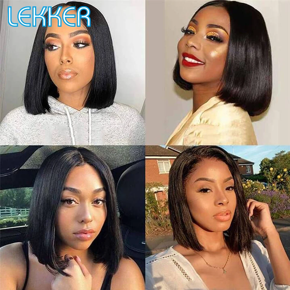 Lekker Wear and Go Short Straight Bob Human Hair Lace Wig For Women Brazilian Remy Hair Glueless Pixie Middle Part Lace Easy Wig
