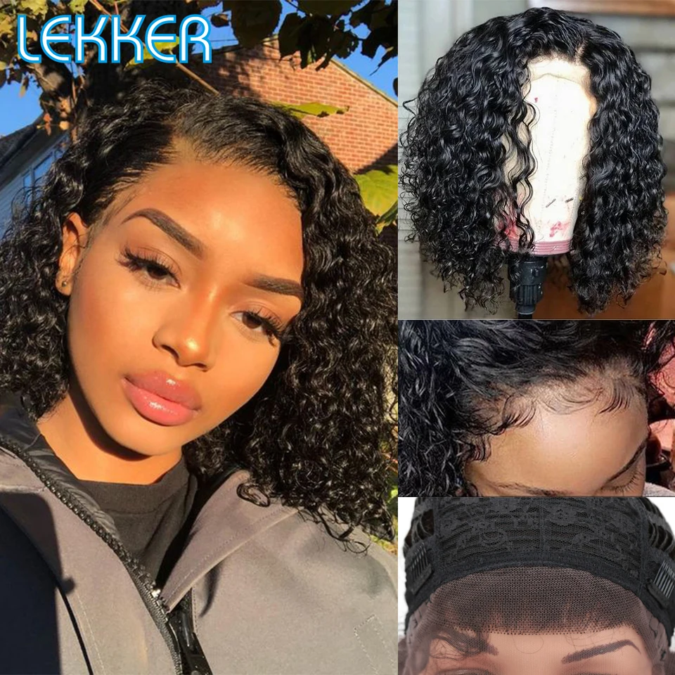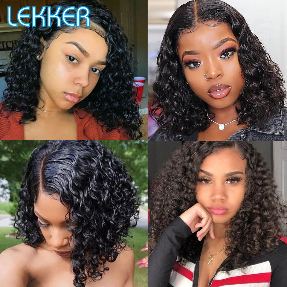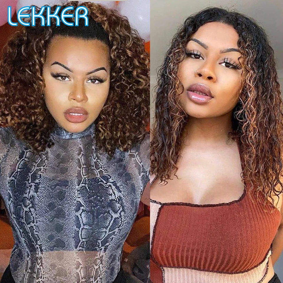 Lekker Wet Wavy Wigs Highlight Brown Kinky Curly Bob Lace Front Human Hair Wigs For Women Brazilian Remy baby Hair Pre plucked